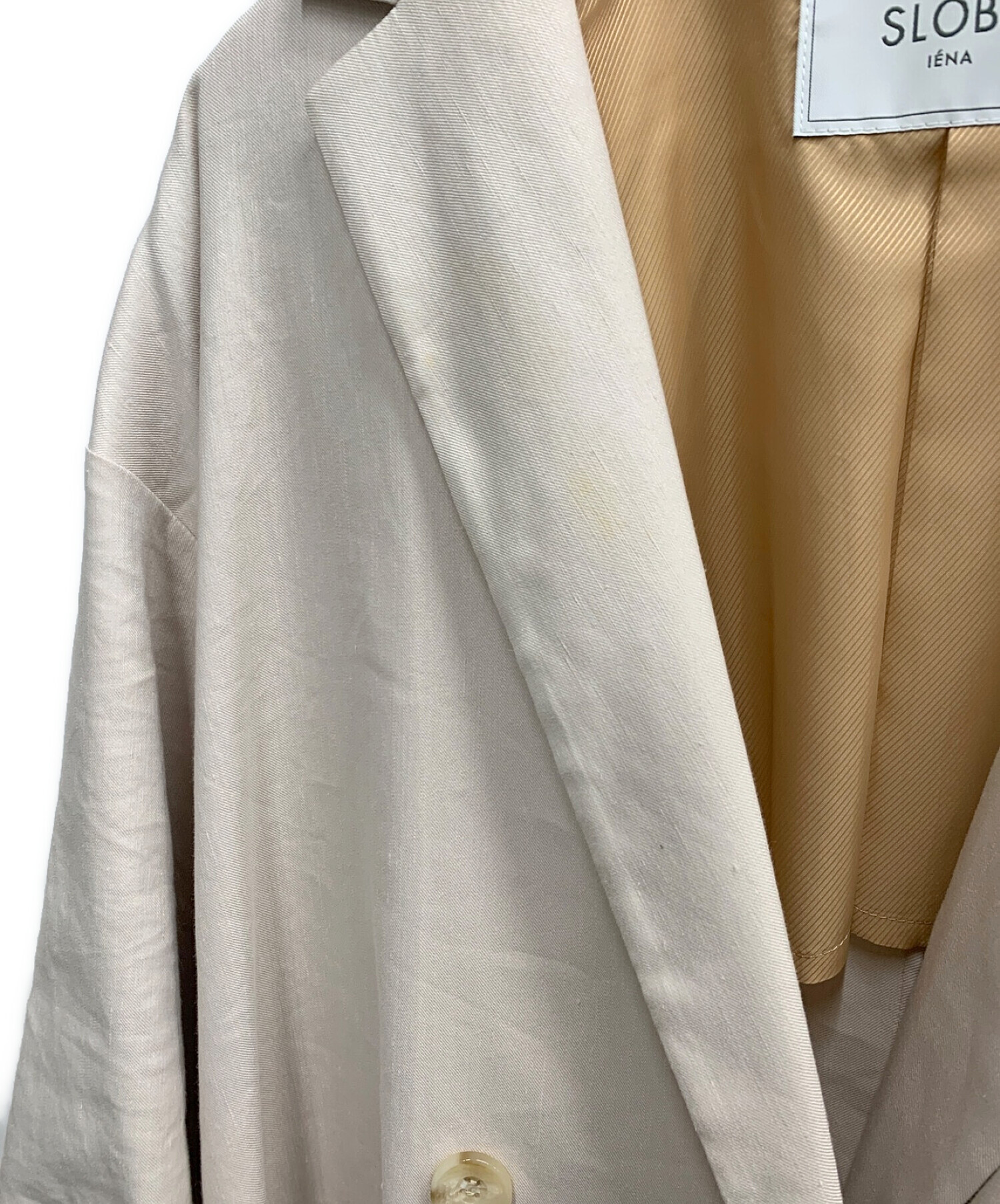 • SLOBE IENA(スローブ イエナ)SLOBE IENA (スローブ イエナ) 麻ツイルチェスターコート ベージュ サイズ:表記無しの古着・服飾アイテム 襟シミ有