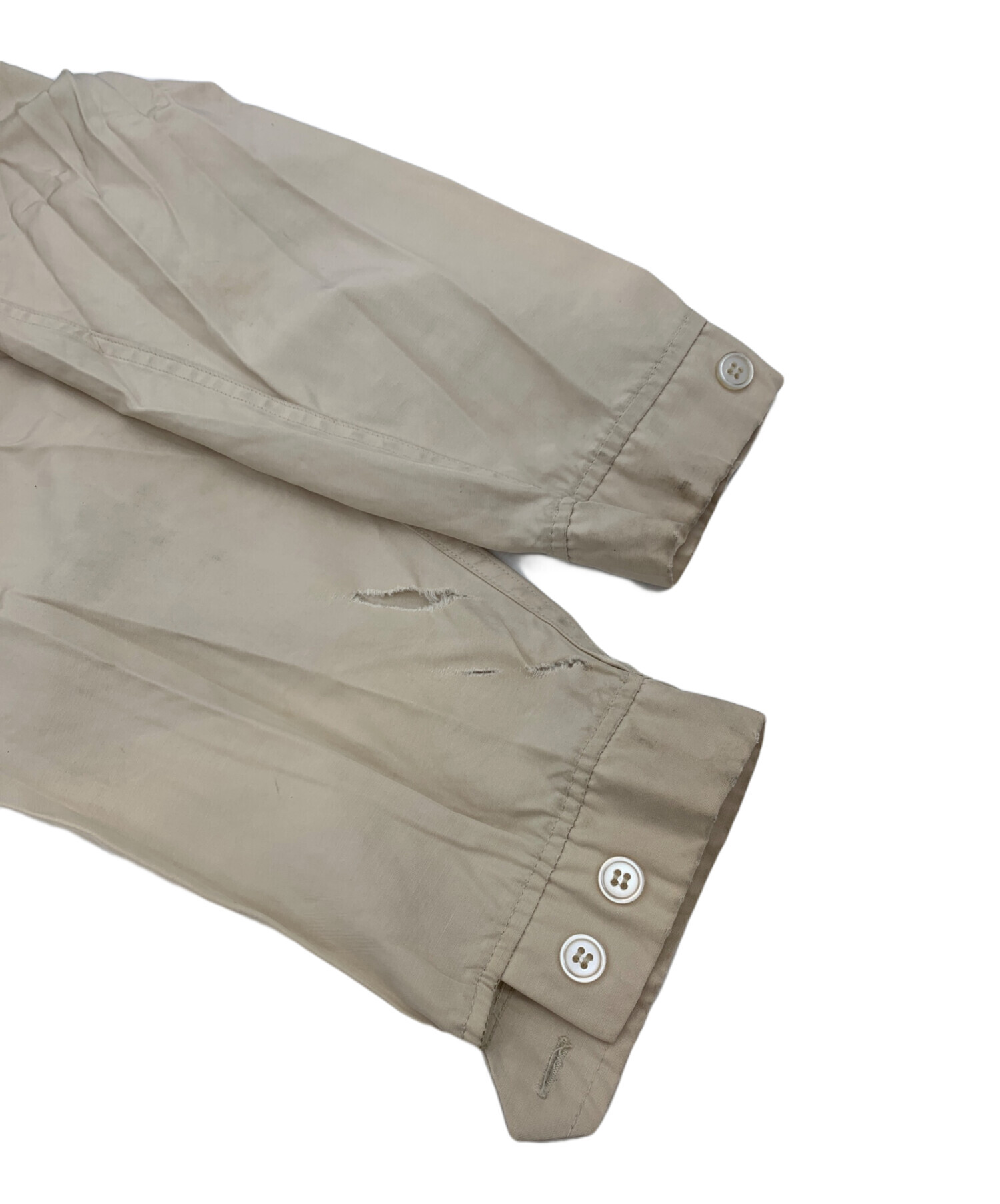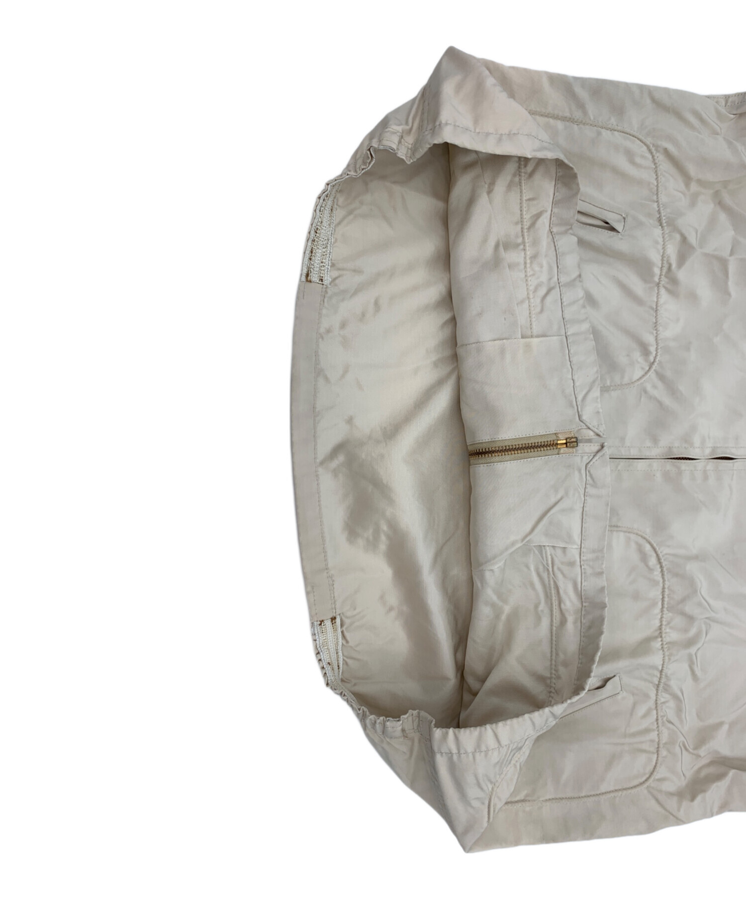 目立つシミや汚れ、におい等がある場合は商品画像や説明文にて極力表記させていただいておりますが、中古品という商品の特性上、全ての瑕疵や不備、洋服直し箇所を撮影・記載をすることは難しくなっております。また、ほとんどのアイテムは店頭と併売しておりますため、出品掲載時からコンディションが変動している場合もございます。あらかじめご了承くださいませ。