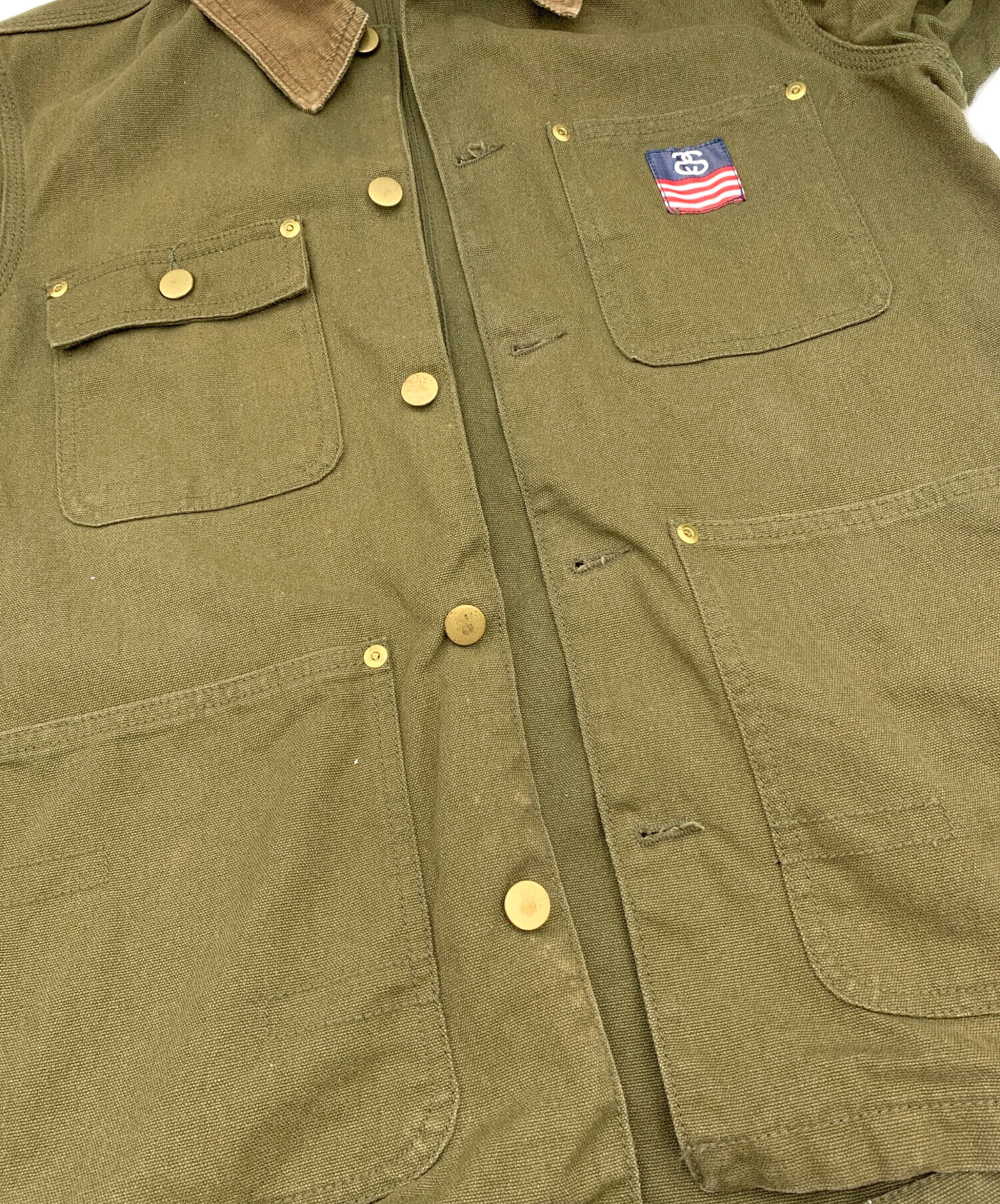 • stussy(ステューシー)stussy (ステューシー) ダックジャケット カーキ サイズ:Mの古着・服飾アイテム 襟 擦れ有