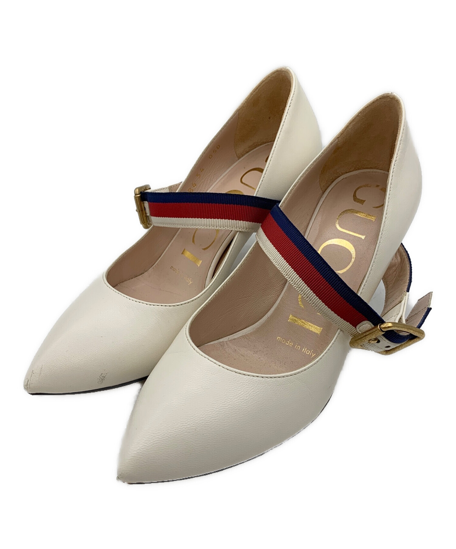• GUCCI(グッチ)GUCCI (グッチ) ウェブラインヒールパンプス ホワイト サイズ:34の古着・服飾アイテム 内側 擦れ有