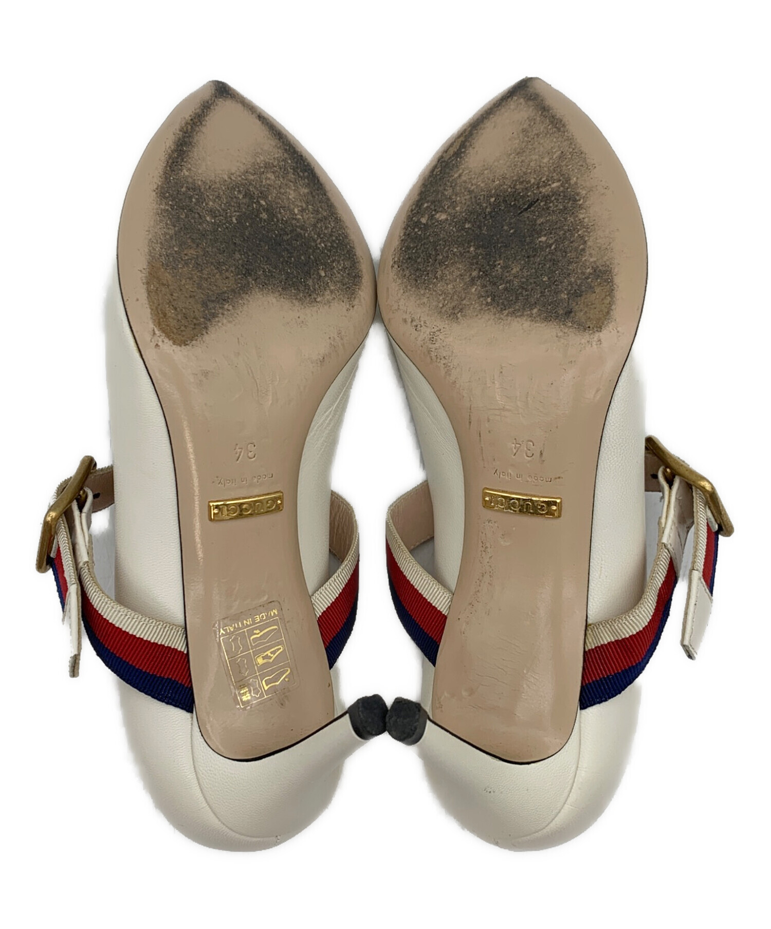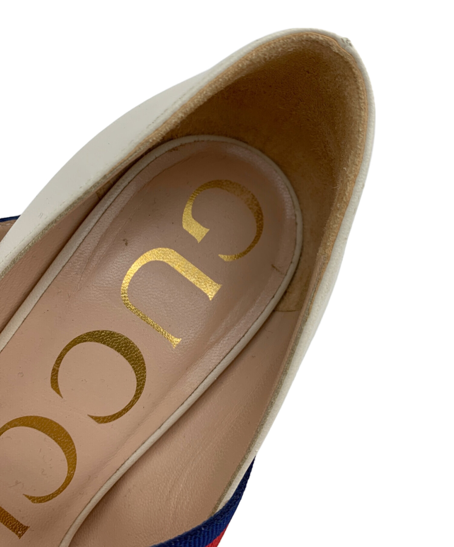 • GUCCI(グッチ)GUCCI (グッチ) ウェブラインヒールパンプス ホワイト サイズ:34の古着・服飾アイテム 内側 汚れ有