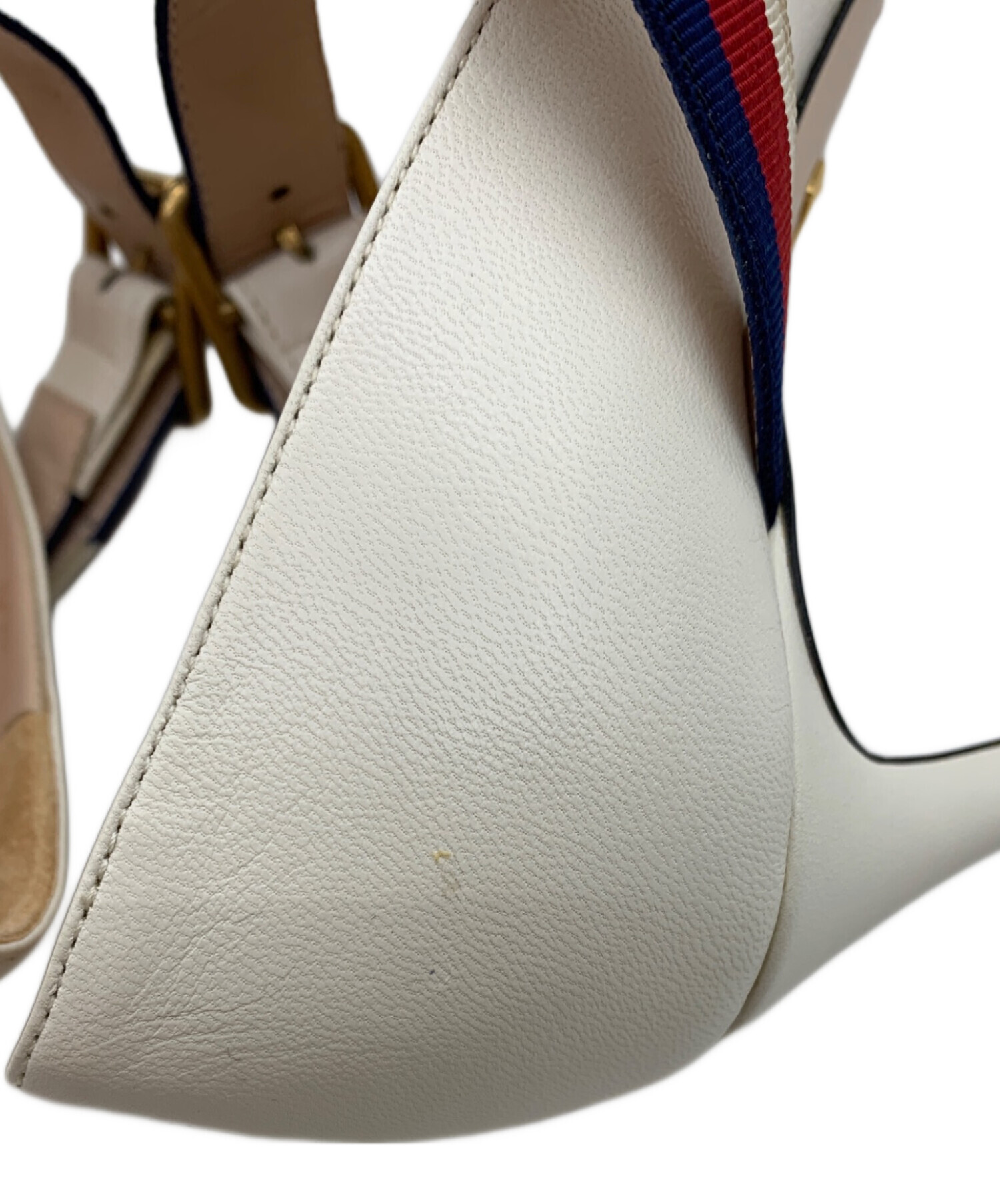 • GUCCI(グッチ)GUCCI (グッチ) ウェブラインヒールパンプス ホワイト サイズ:34の古着・服飾アイテム つま先 傷・汚れ有