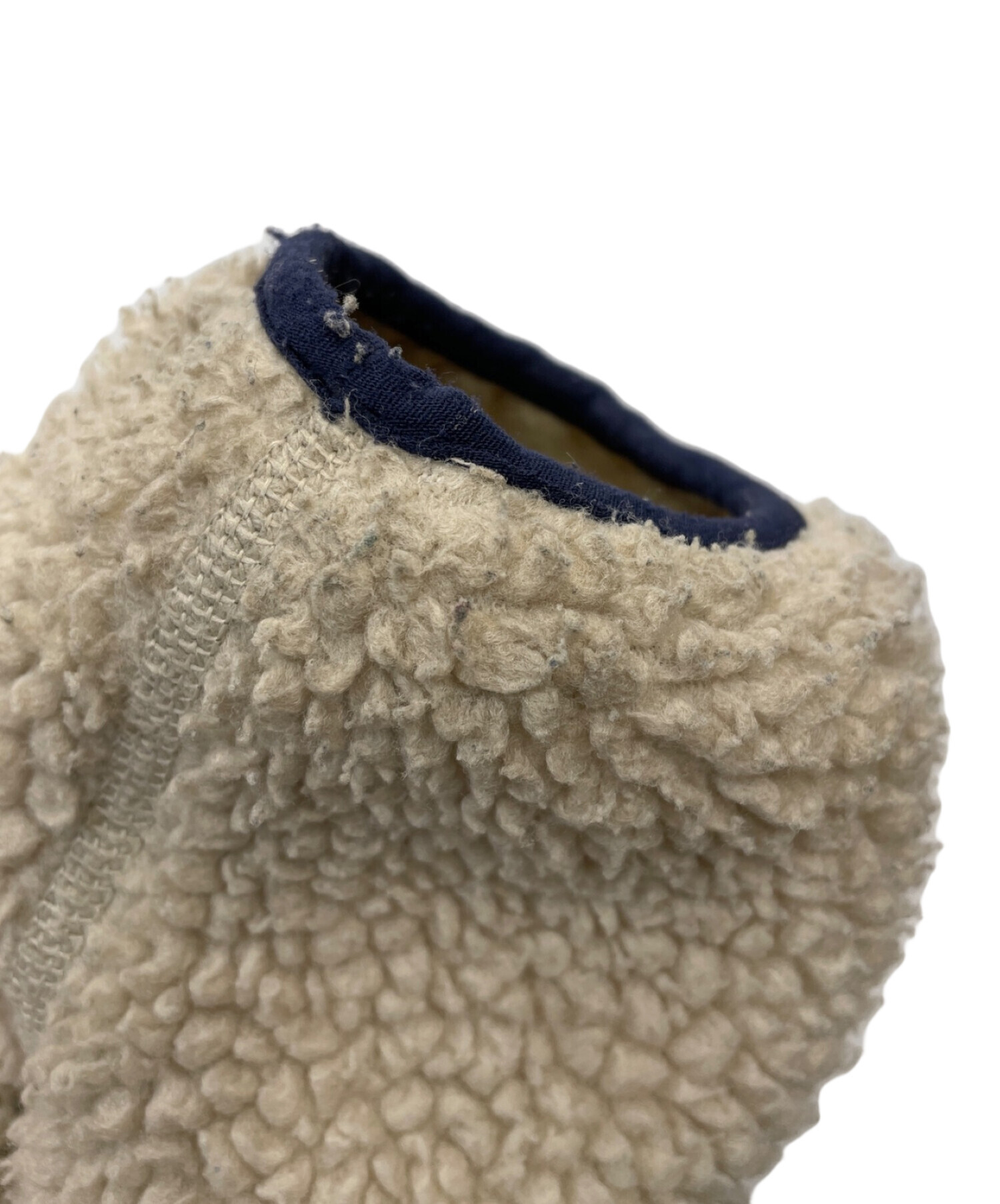 | スタッフコメント | 優しいクリームカラーのボアに、ブルーとネイビーカラーが映えるフリースジャケットです。寒い季節には大活躍する定番のアイテムです。 |