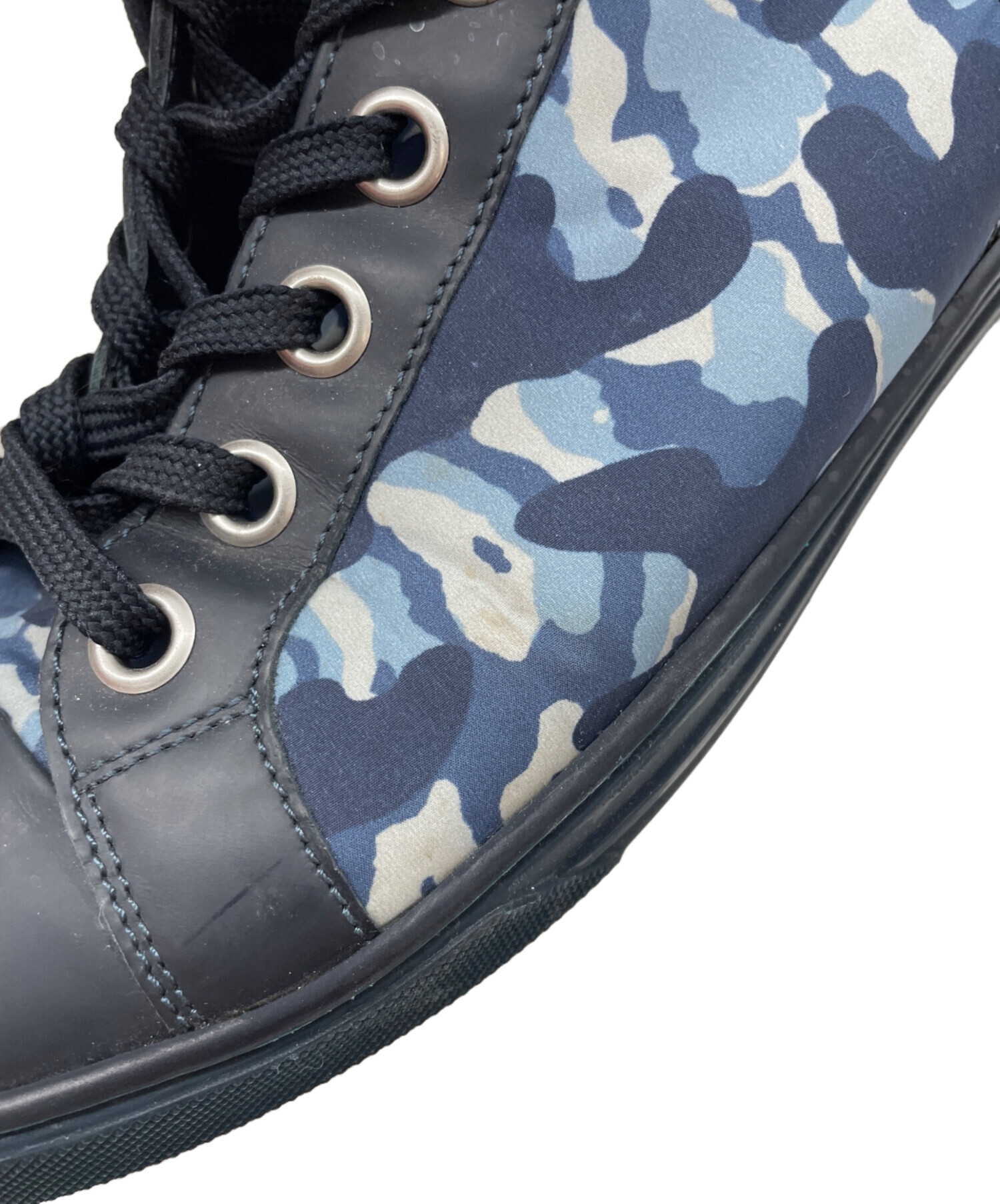 | スタッフコメント | 柄が印象的なスニーカーです。ネイビーなので、ブラックより柔らかいのがポイントです。ハイカットデザインなのでスタイル良くも見せてくれます。 |