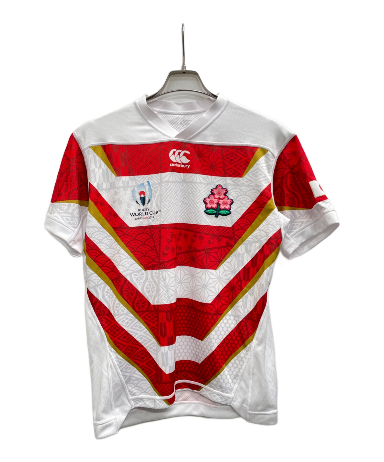 • Canterbury(カンタベリー)Canterbury (カンタベリー) ゲームシャツ ホワイト×レッド サイズ:Mの古着・服飾アイテム シミ有