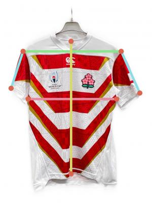 • Canterbury(カンタベリー)Canterbury (カンタベリー) ゲームシャツ ホワイト×レッド サイズ:Mの古着・服飾アイテム ヨゴレ有