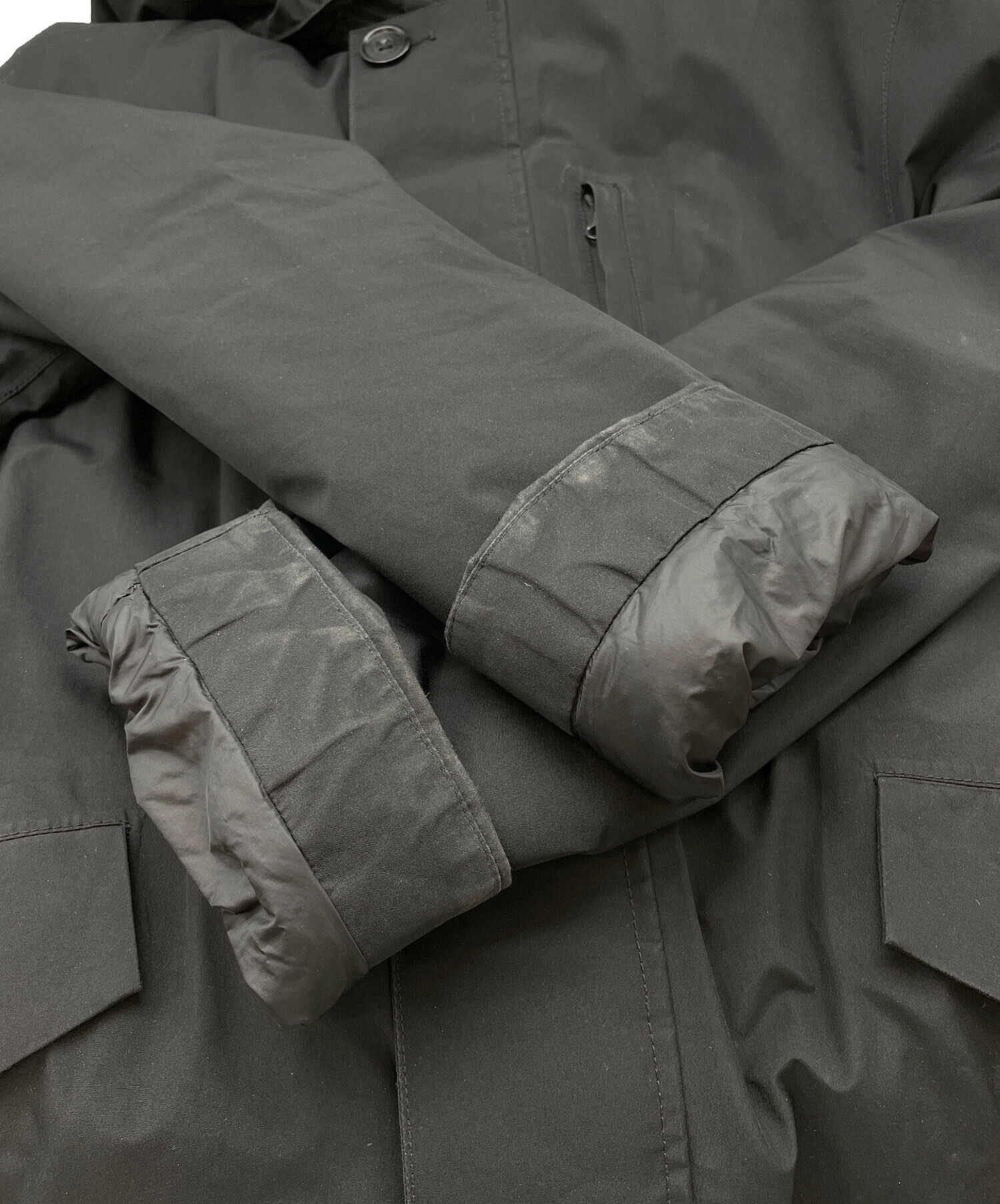 | 状態 | 両袖先の表と裏に色褪せがございます(画像5、6枚目参照) フードの表地に汚れがございます(画像7枚目参照) こちらの商品は中古品の為、使用に伴いますキズ、汚れが各所に見受けられます。店頭にて展示販売を行っている為、記載に無い細かなキズ、汚れが見受けられる場合がございます。 |
