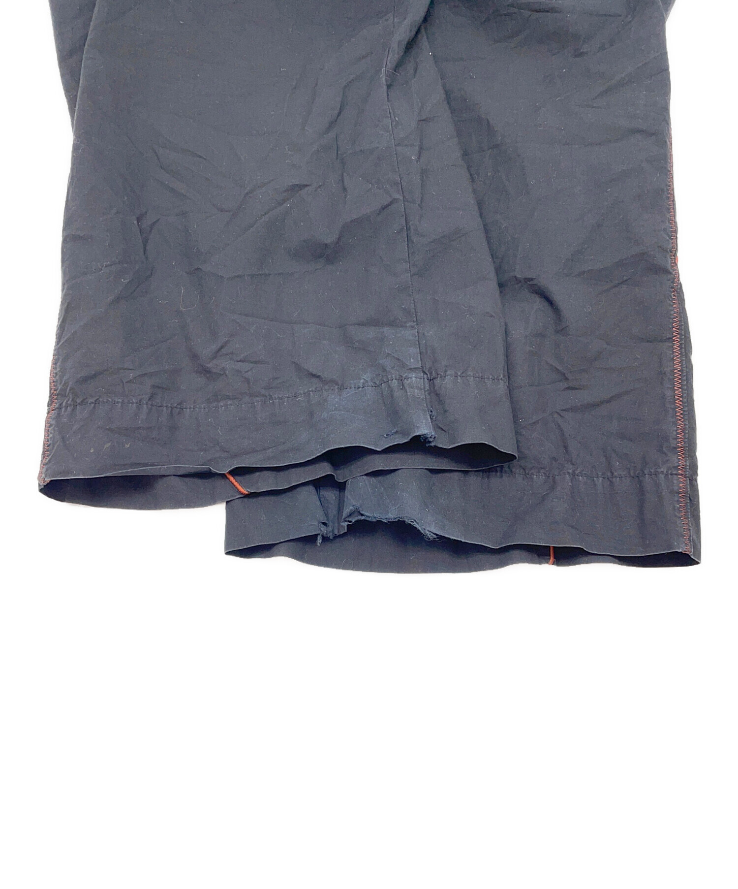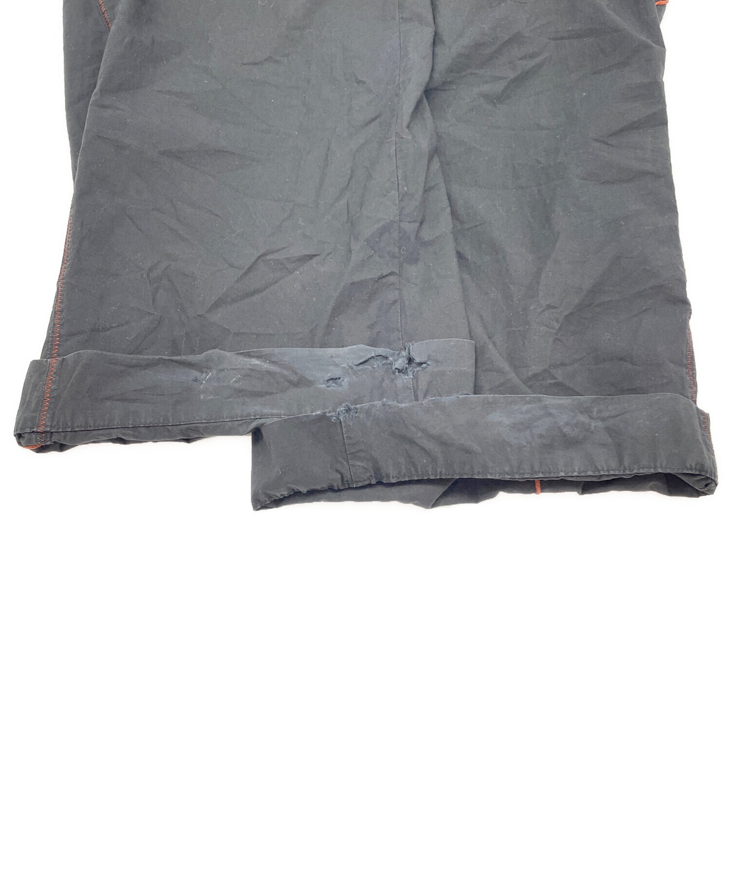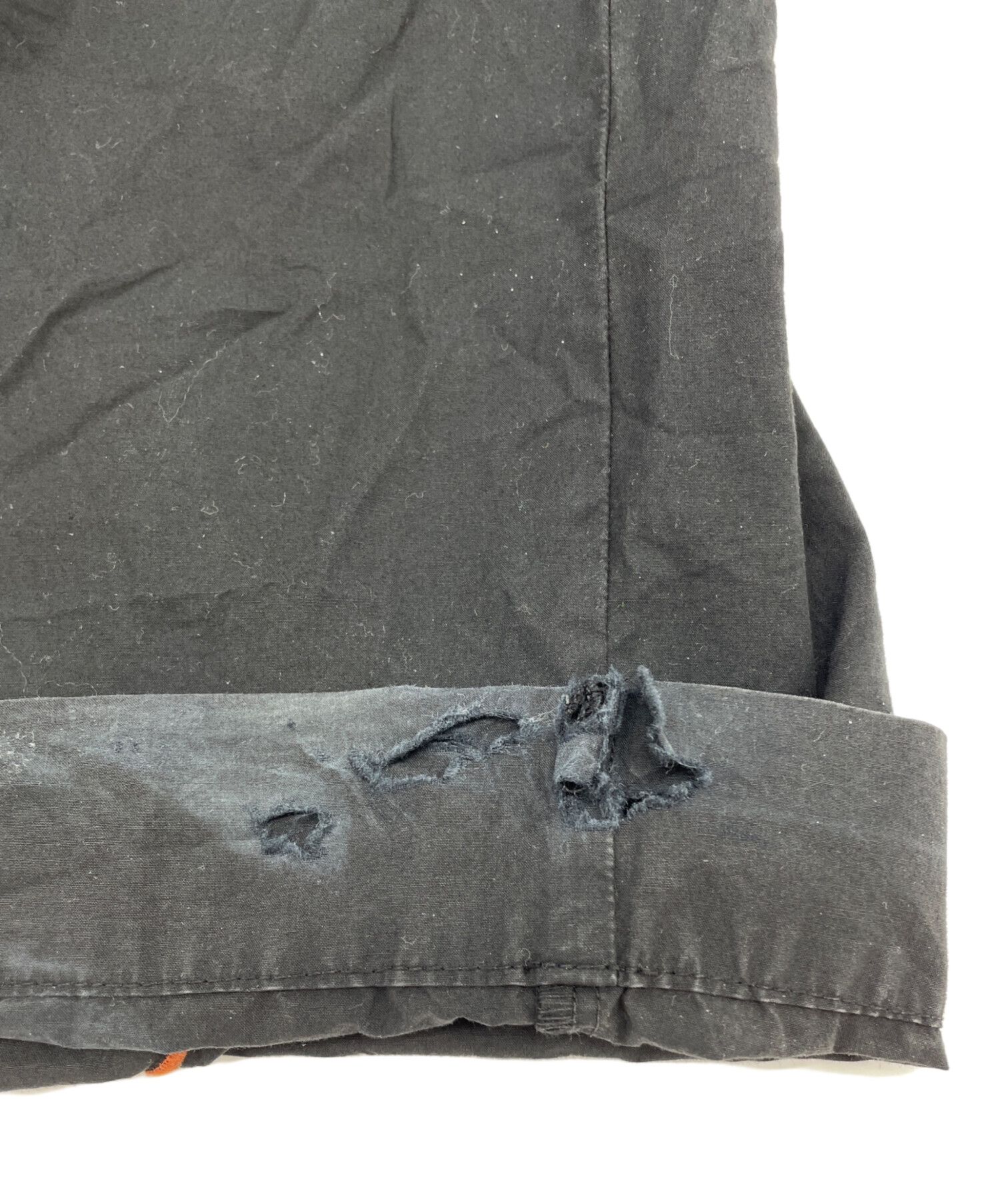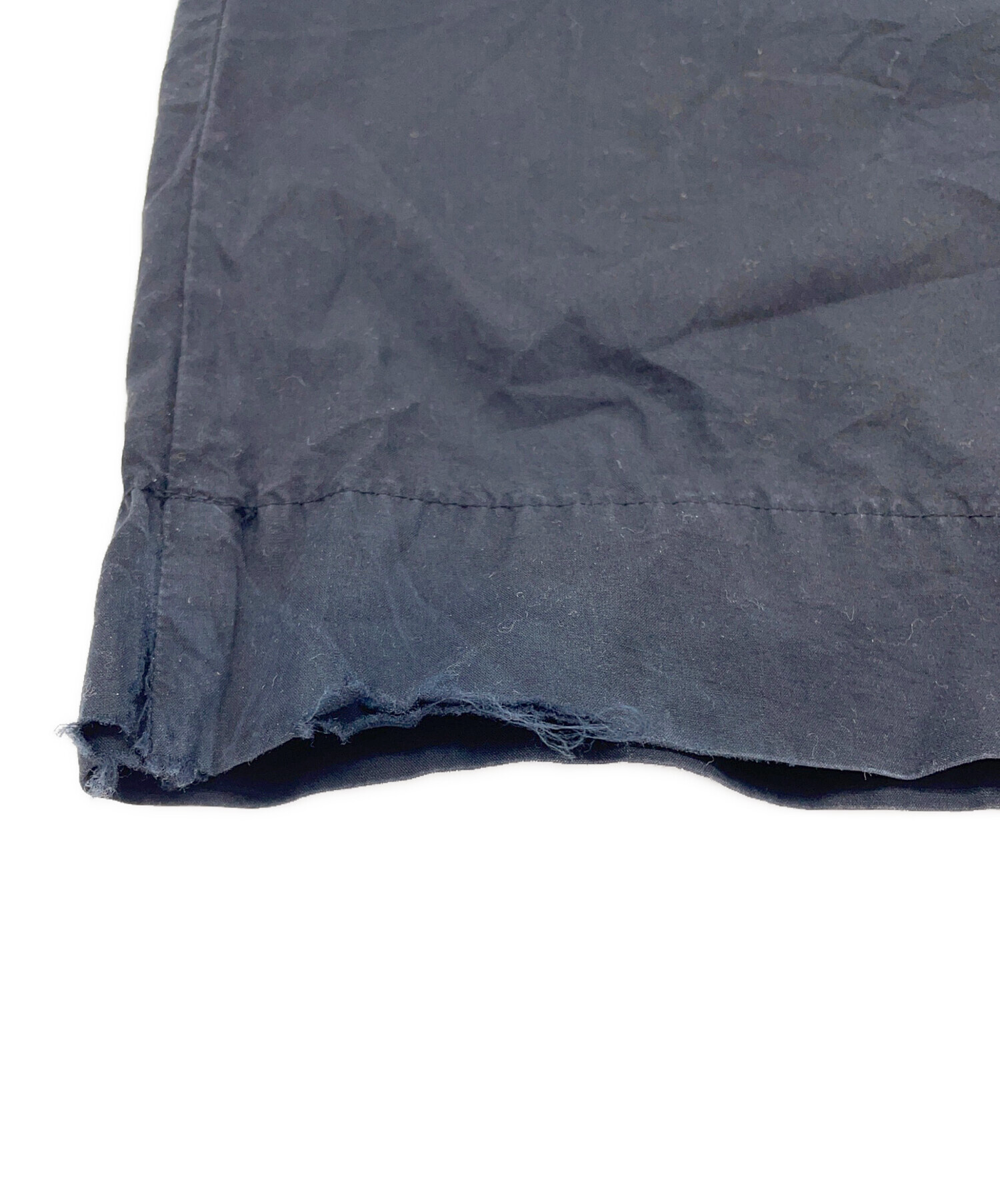 | 状態 | 前身頃ボタンにほつれがございます。(画像7枚目参照) 前身頃右ドローストリング穴に破れがございます。(画像3、8枚目参照) 両足裾、後と内側に破けがございます。(画像10、11、13~17枚目参照) 左裾にシミががございます。(画像12枚目参照) こちらの商品は中古品の為、使用に伴います細かなキズ、汚れがございます。店頭にて展示販売を行っている為、記載に無い細かなキズ、汚れが見受けられる場合がございます。 |