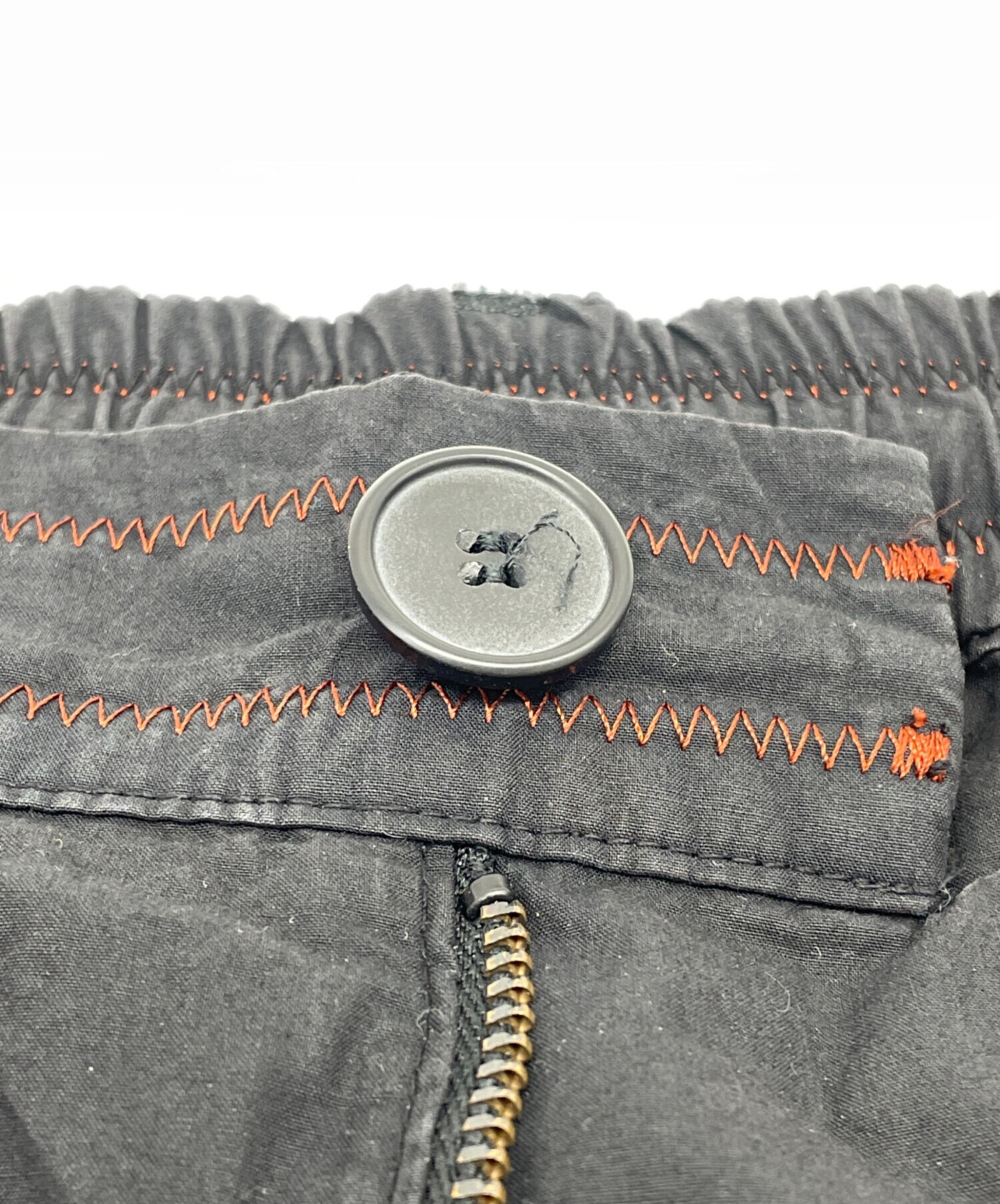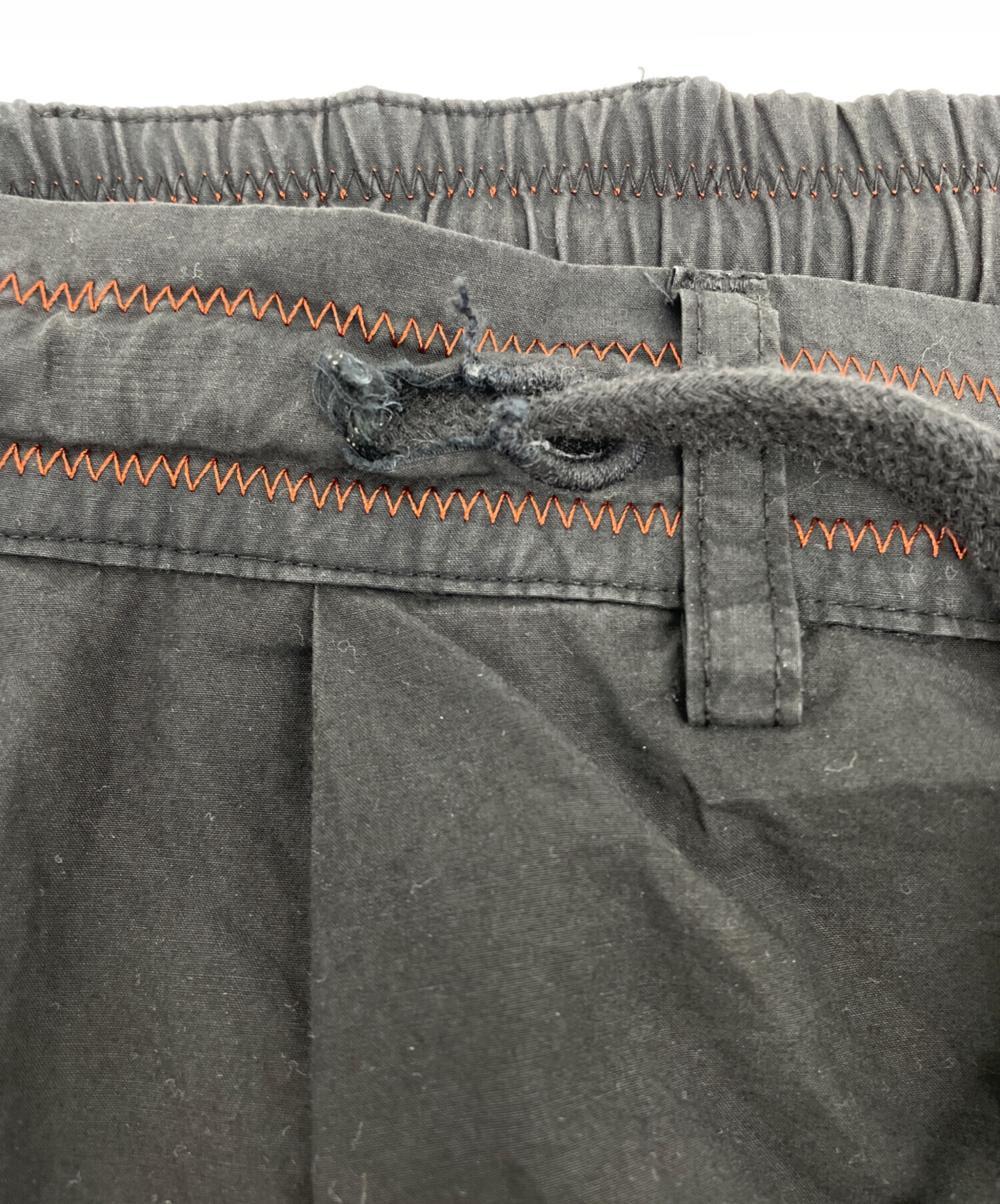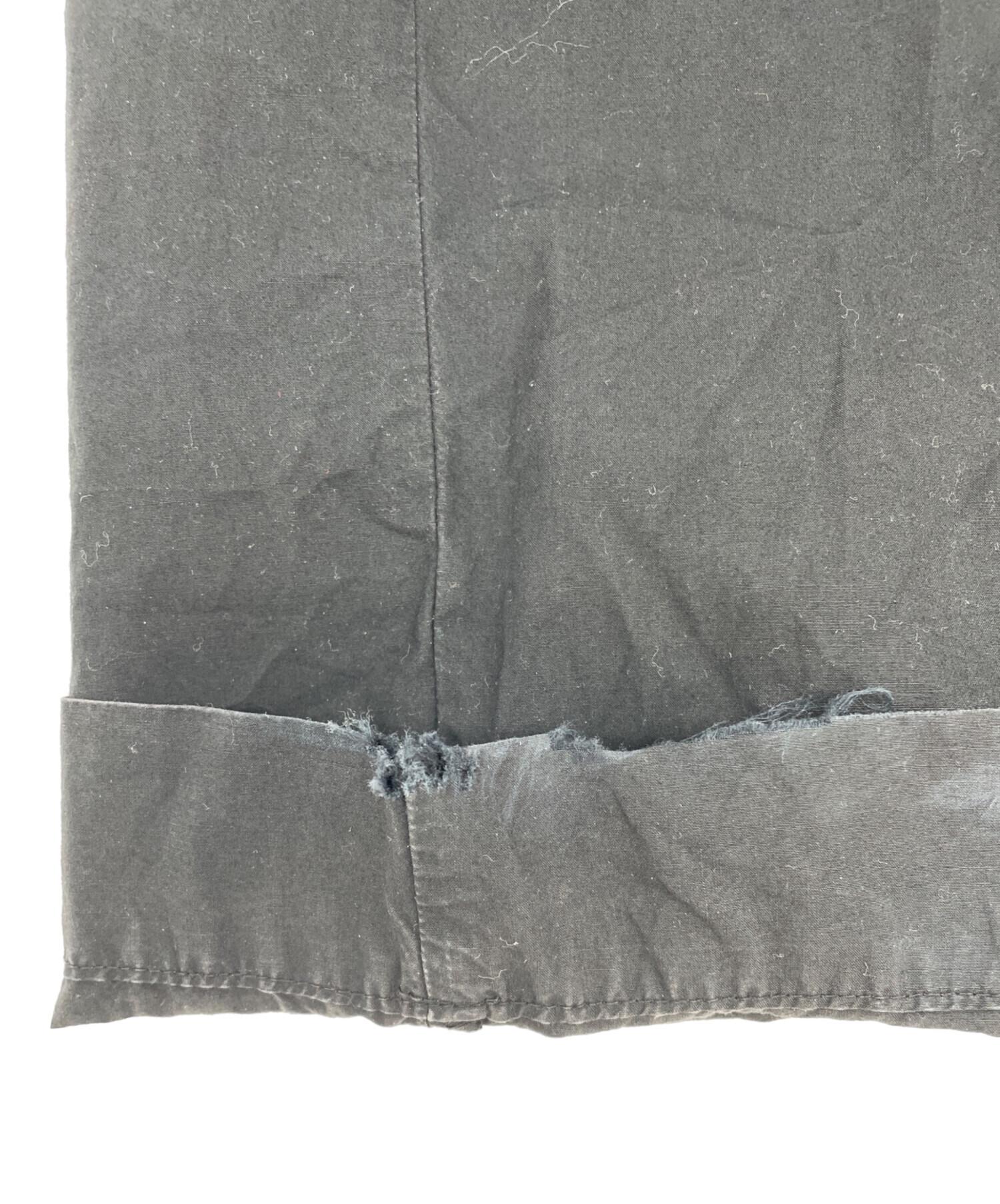 | 状態 | 前身頃ボタンにほつれがございます。(画像7枚目参照) 前身頃右ドローストリング穴に破れがございます。(画像3、8枚目参照) 両足裾、後と内側に破けがございます。(画像10、11、13~17枚目参照) 左裾にシミががございます。(画像12枚目参照) こちらの商品は中古品の為、使用に伴います細かなキズ、汚れがございます。店頭にて展示販売を行っている為、記載に無い細かなキズ、汚れが見受けられる場合がございます。 |