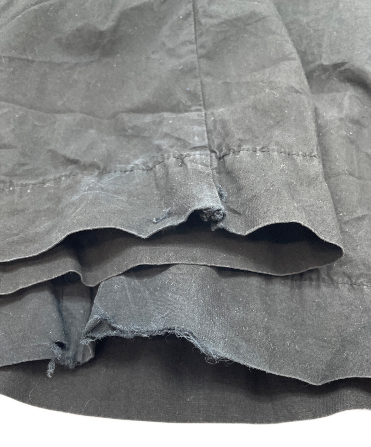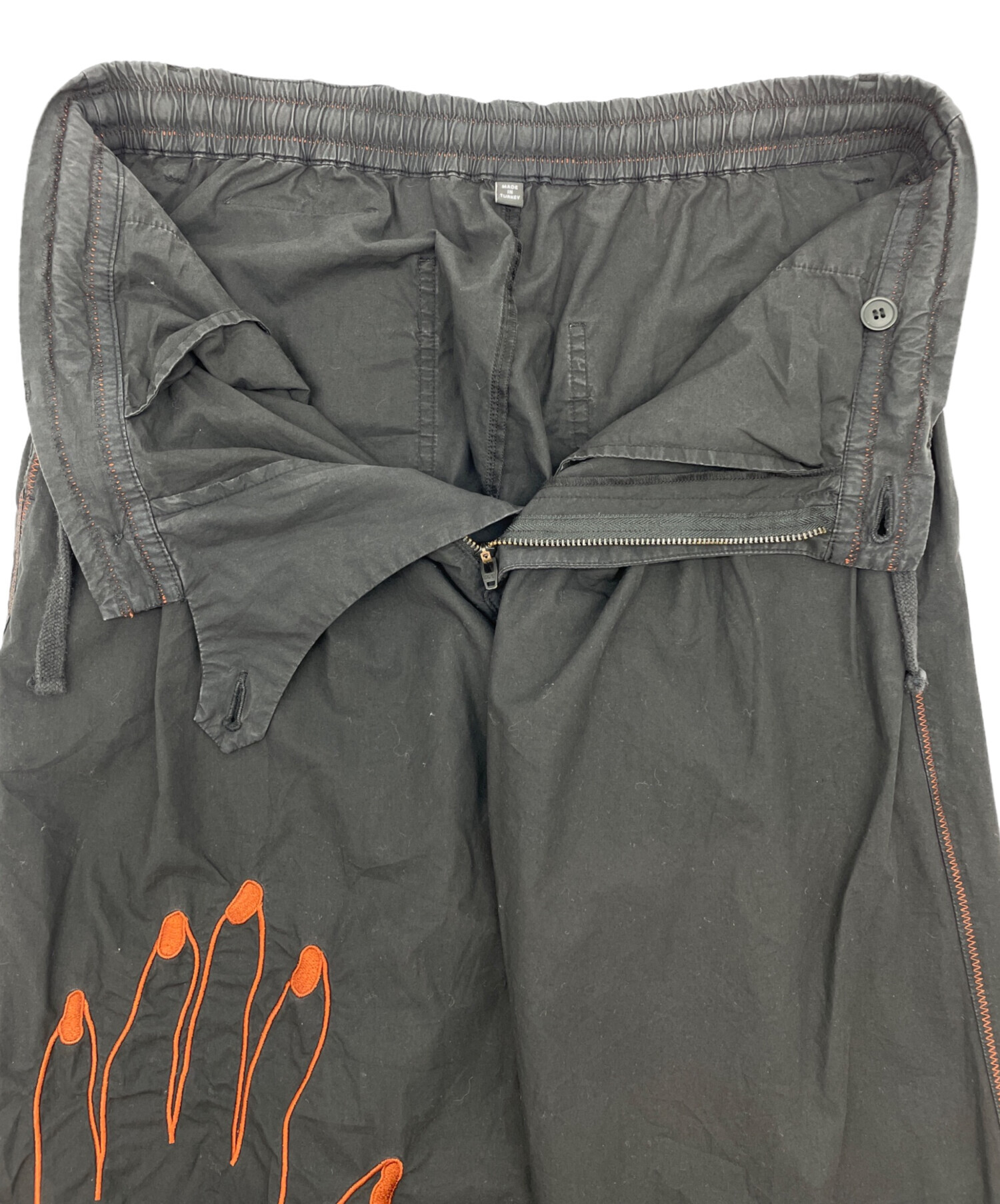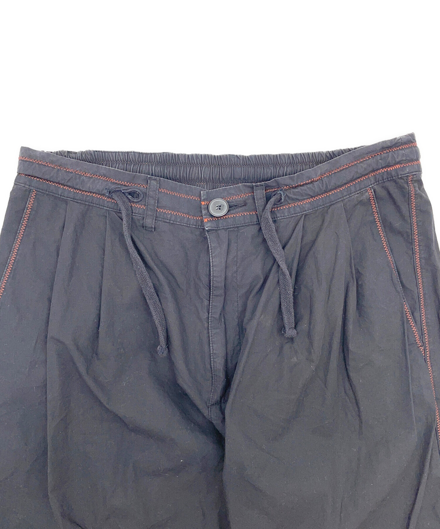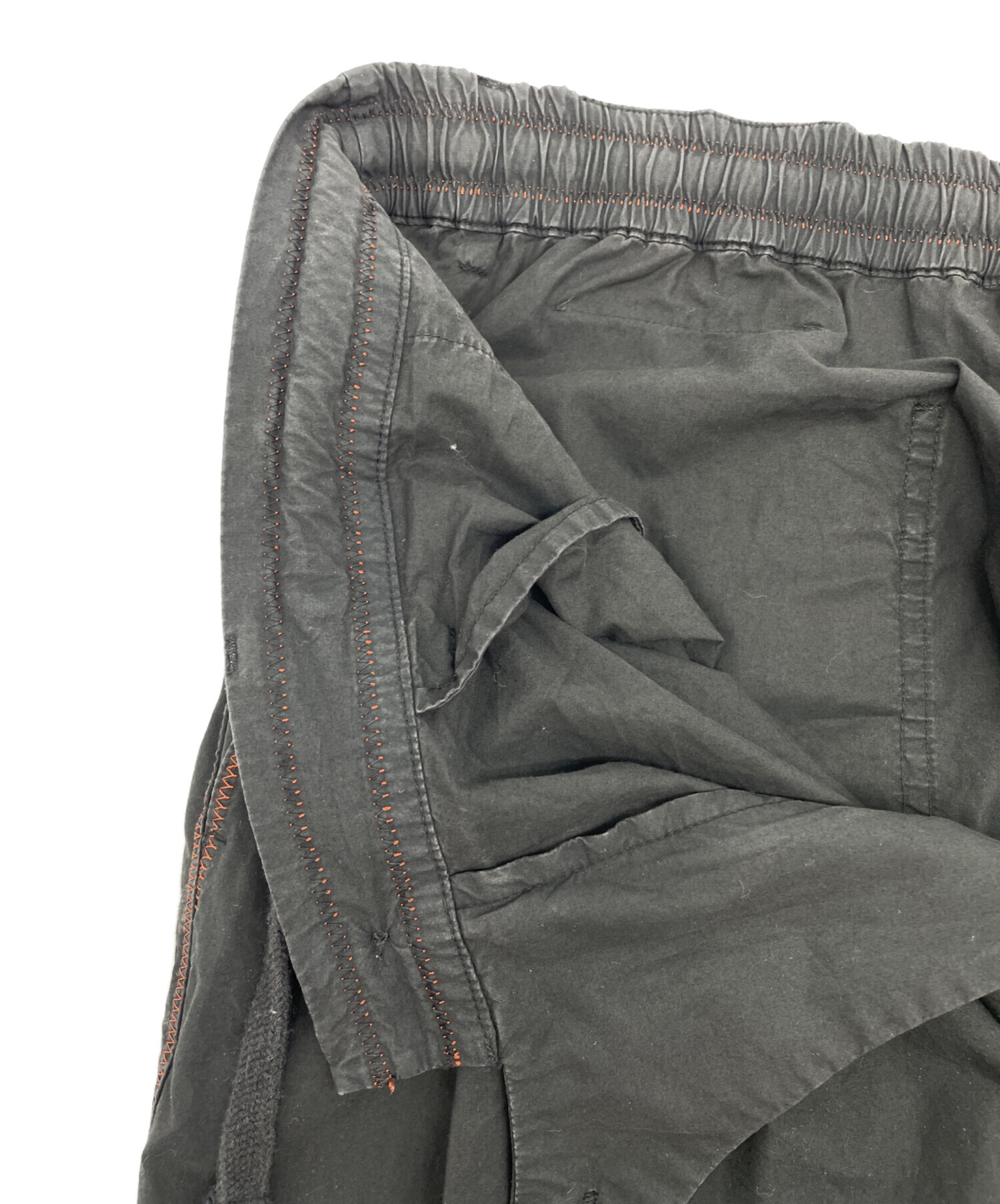 | 状態 | 前身頃ボタンにほつれがございます。(画像7枚目参照) 前身頃右ドローストリング穴に破れがございます。(画像3、8枚目参照) 両足裾、後と内側に破けがございます。(画像10、11、13~17枚目参照) 左裾にシミががございます。(画像12枚目参照) こちらの商品は中古品の為、使用に伴います細かなキズ、汚れがございます。店頭にて展示販売を行っている為、記載に無い細かなキズ、汚れが見受けられる場合がございます。 |