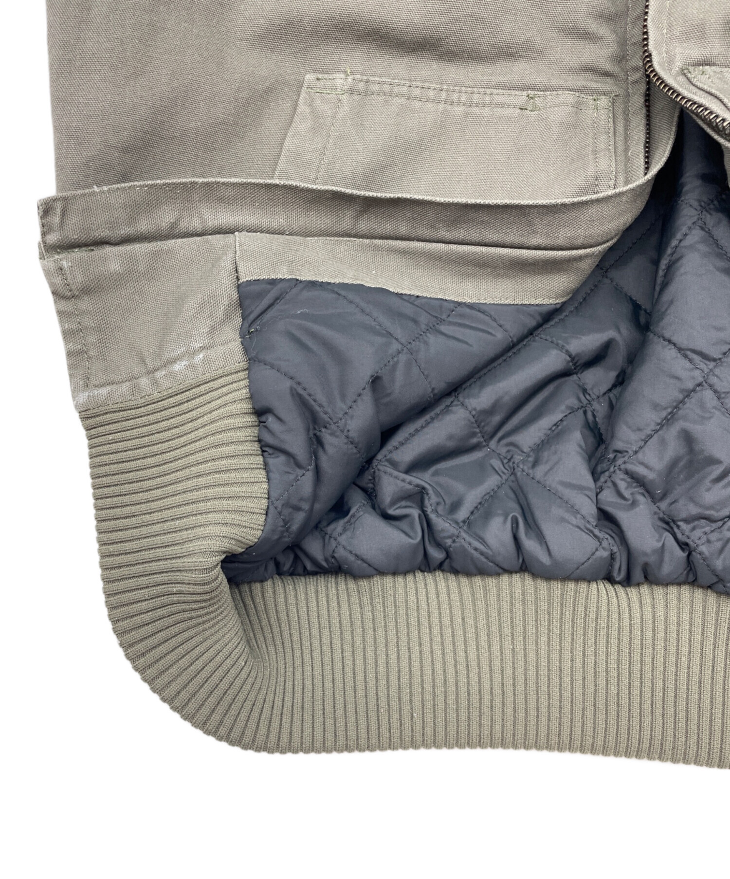 | 状態 | 全体的に使用感がございます。 左身頃、内側のファスナー横に糸の飛び出しがございます。(画像4枚目参照) 前身頃のポケット部分に、縫製不良やスレ、ホツレによる、糸の飛び出しがございます。(画像7~9枚目参照) 前身頃、裾に縫製不良やスレ、それによる糸の飛び出しがございます。(画像10枚目参照) 両袖口内側に縫製不良がございます。(画像15~18枚目参照) こちらの商品は中古品の為、使用に伴います細かなキズ、汚れがございます。店頭にて展示販売を行っている為、記載に無い細かなキズ、汚れが見受けられる場合がございます。 |