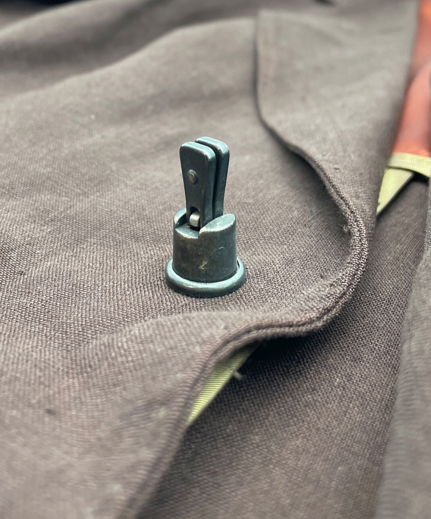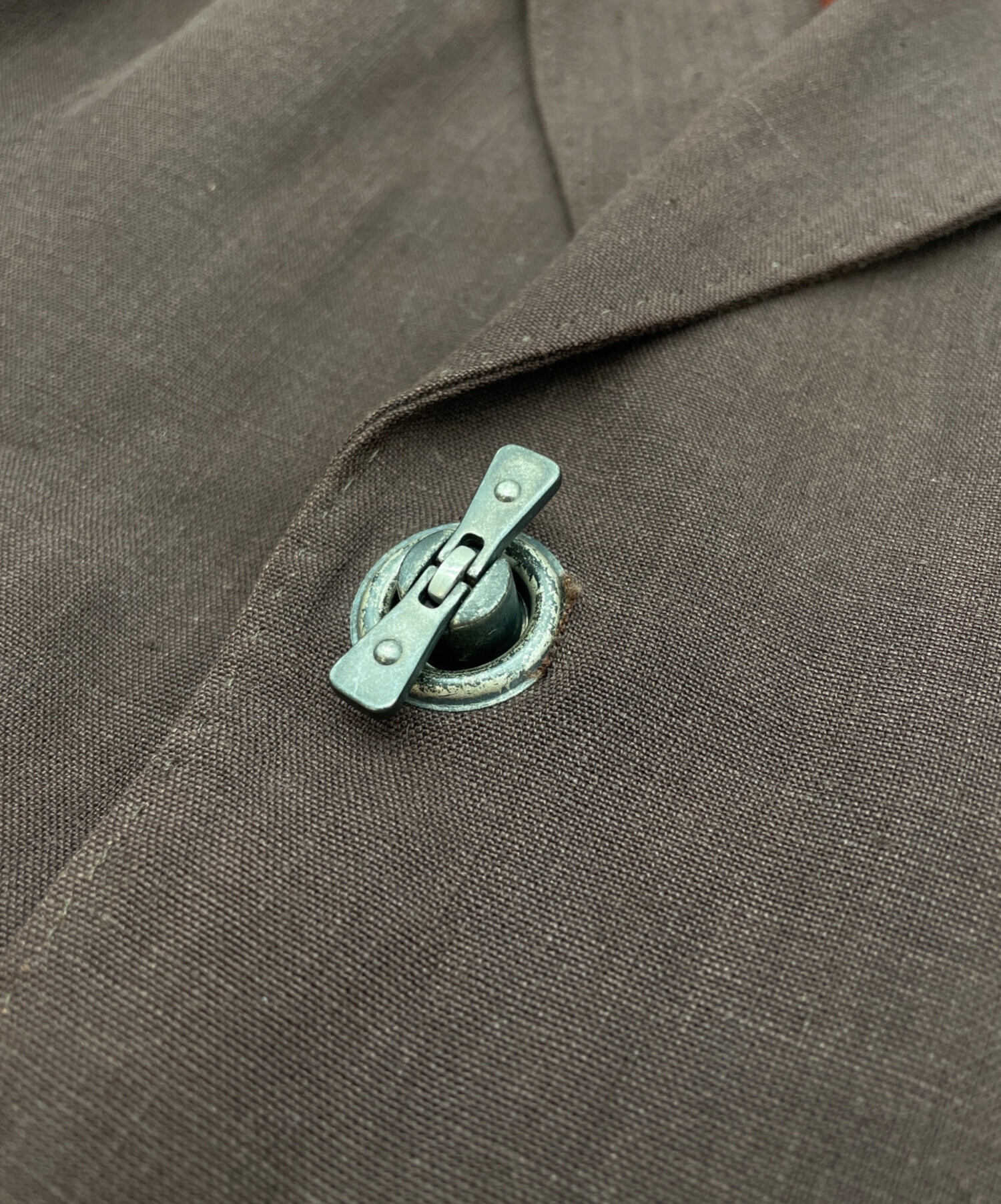 前身頃の正面中央にある留め具に、スレやヨゴレ、ハガレ、サビがございます。(画象9~11枚目参照)