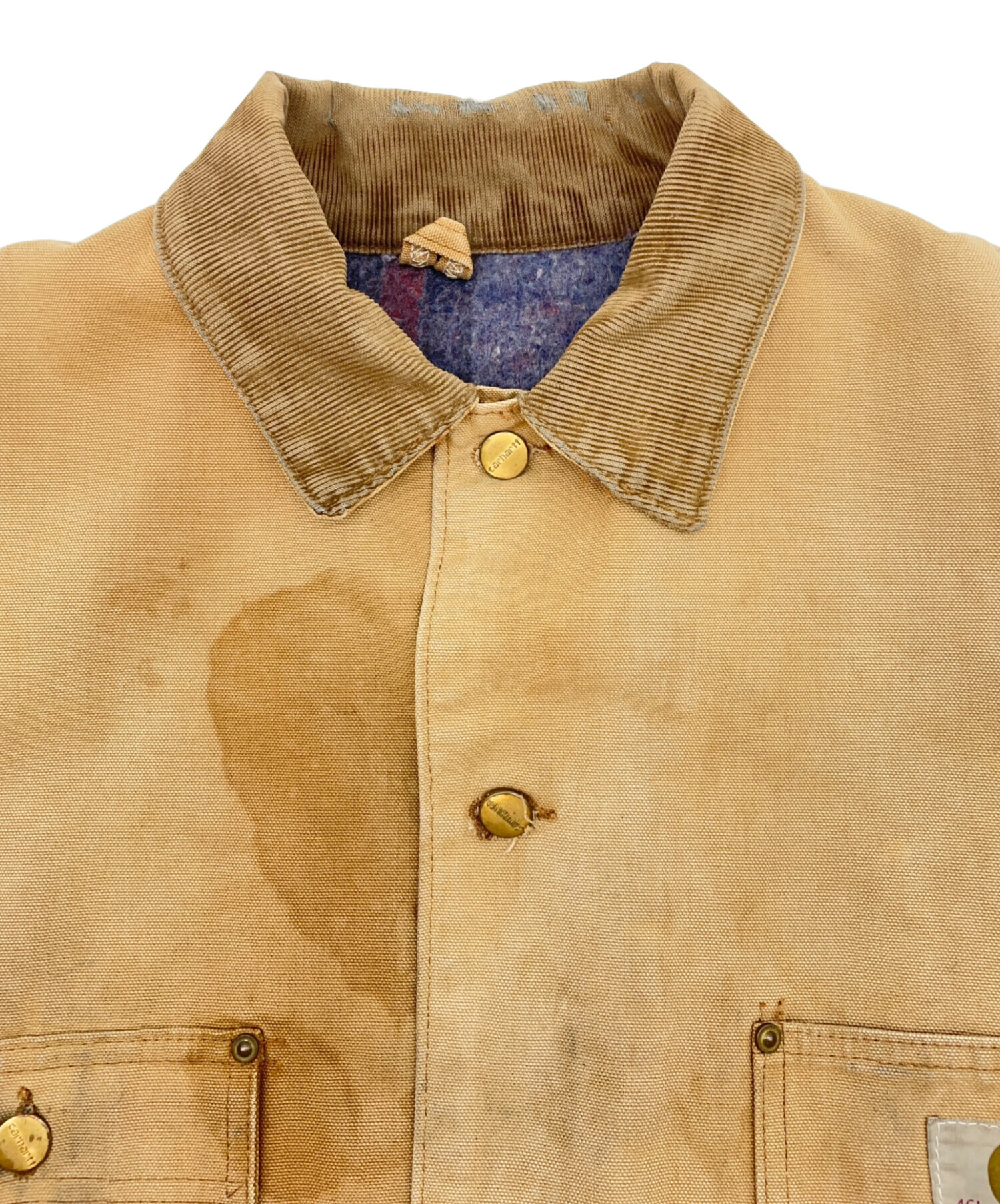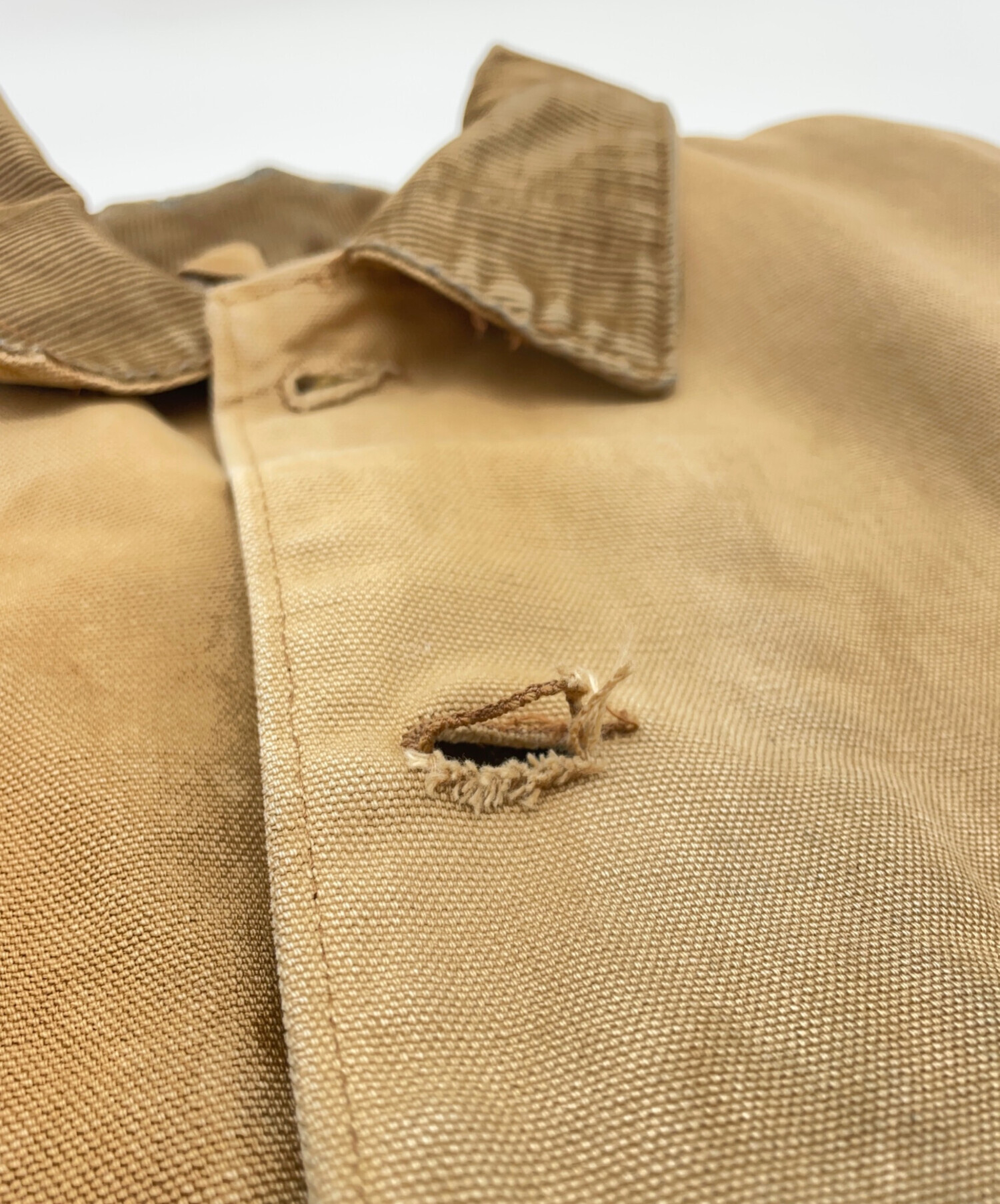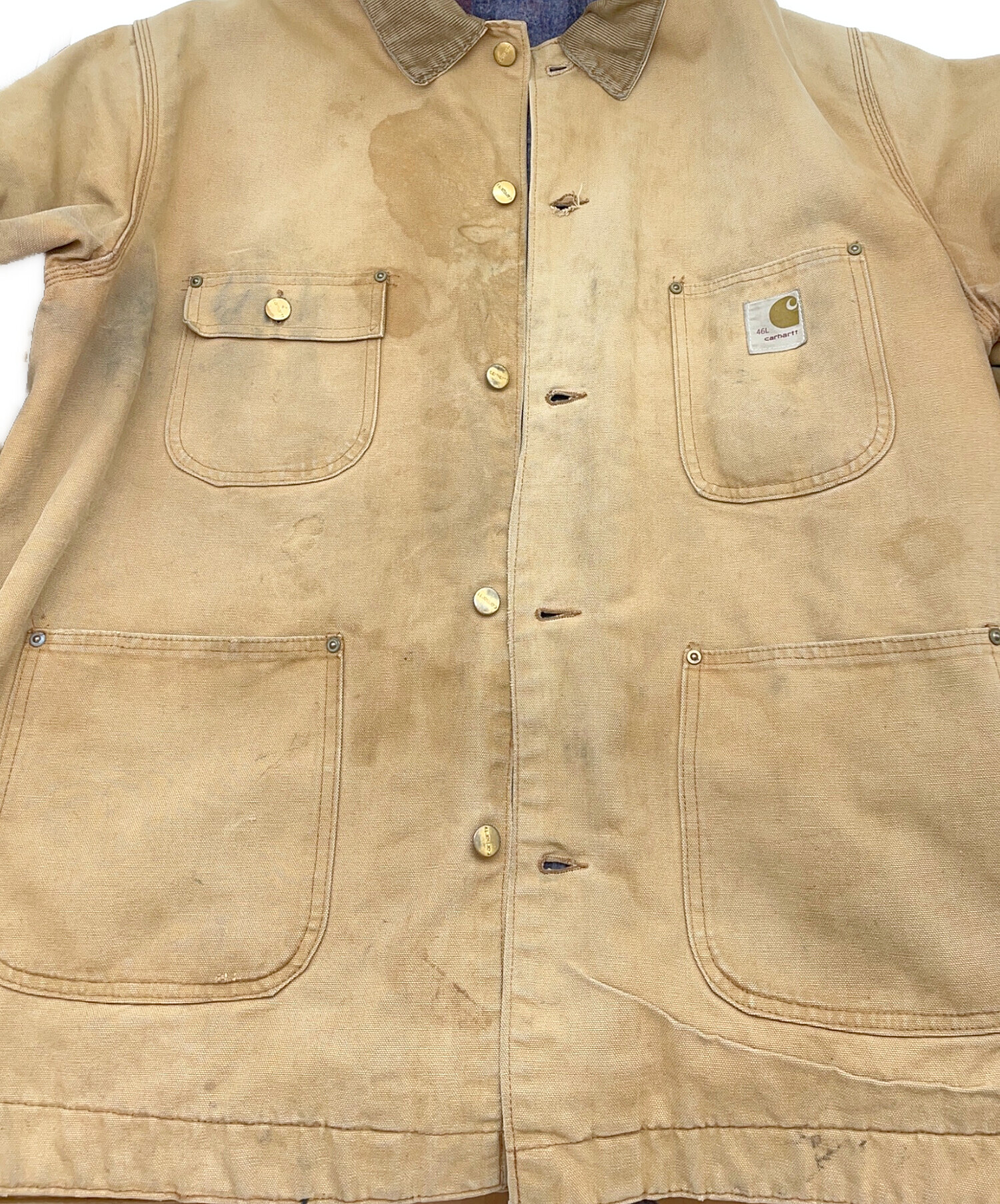 | 状態 | 全体的に使用感があり、スレや破れなどダメージ、シミ・ヨゴレ、変色がございます。 首元にスレやシミ、ヨゴレ、糸の飛び出しがございます。(画像4枚目参照) 襟の内側にスレ、シミ・ヨゴレ、擦り減りがございます。(画像5枚目参照) ボタンホールの2つ目に裂けがございます。(画像6枚目参照) 裾にスレや破れ、シミ・ヨゴレ、変色がございます。(画像12、14枚目参照) 両袖にスレや、ダメージ、シミ・ヨゴレ、変色がございます。(画像18~20枚目参照) 両袖口にスレや破れ、裂けや糸・生地の飛び出し、スレ、シミ・ヨゴレがございます。(画像18~20枚目参照) こちらの商品はジャンク品・修繕が必要な商品です。全体的に使用感や傷、ヨゴレや劣化などが見受けられますのであらかじめご了承ください。また店頭にて展示販売を行っている為、記載に無い細かなキズ、汚れが見受けられる場合がございます。 |