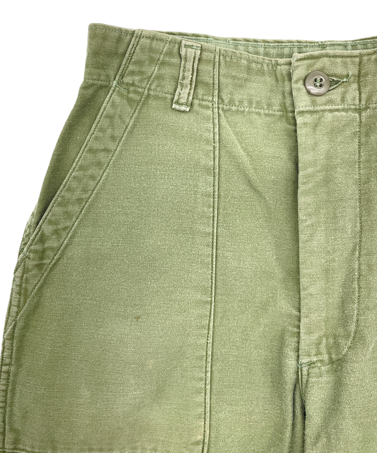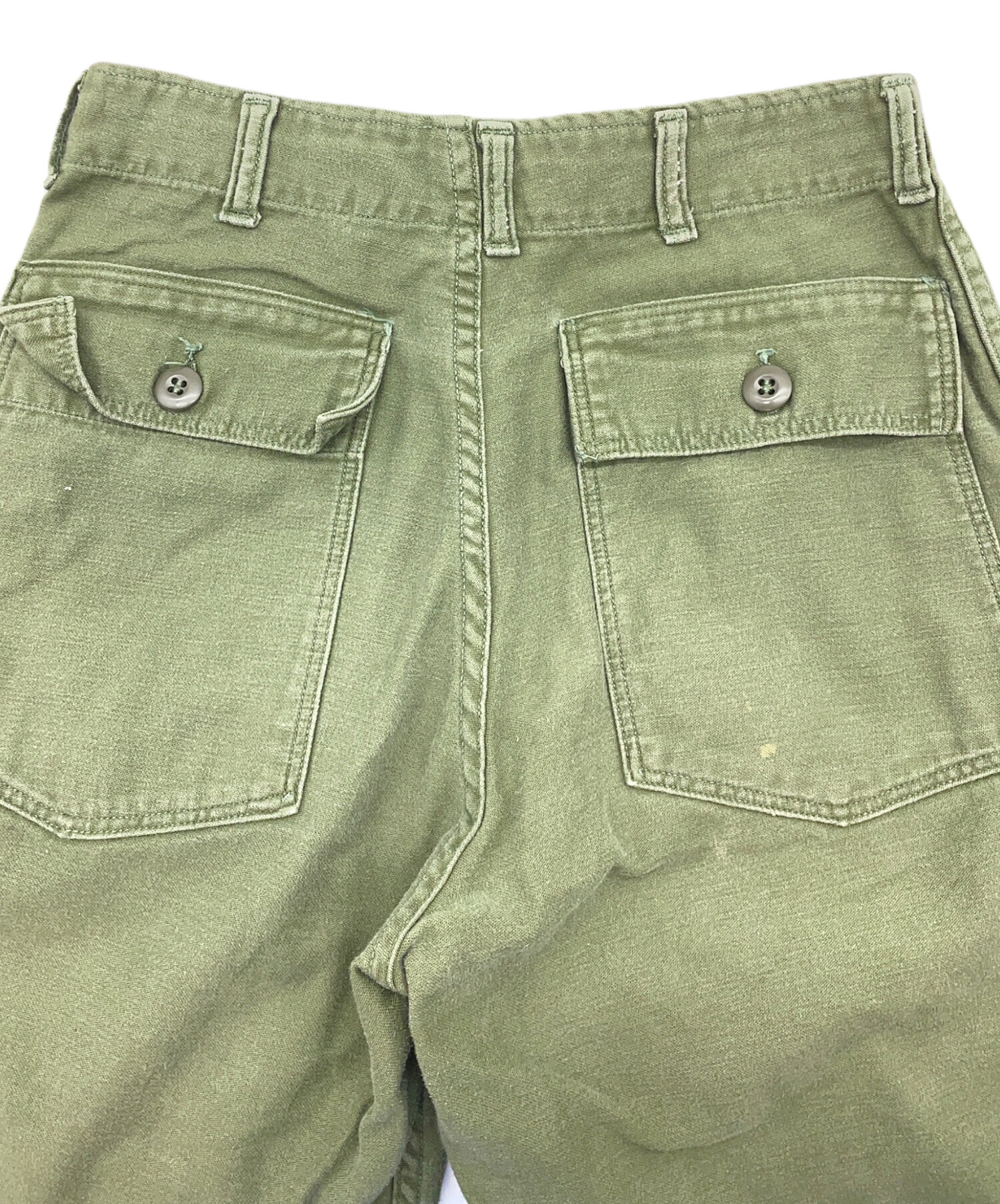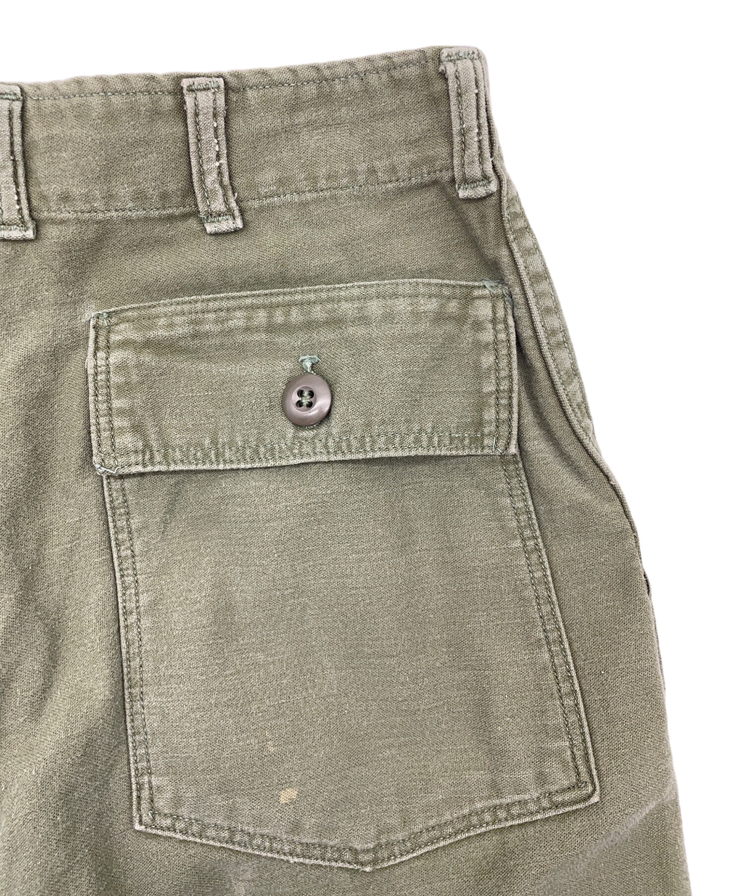 | 状態 | 全体的に使用感があり、ヨゴレやシミ、スレ、糸の飛び出し、毛羽立ちがございます。 前身頃にシミやヨゴレ、スレ、毛羽立ちがございます。(画像3~7枚目参照) 裏地にスレやホツレ、糸の飛び出しがございます。(画像8~11枚目参照) ボタンホールに糸の飛び出しがございます。(画像11、12枚目参照) 後ろ身頃にスレやヨゴレ、毛羽立ちがございます。(画像13~16枚目参照) 前身頃、もも部分に変色がございます。(画像17枚目参照) 両裾口にスレがあり、内面には糸の飛び出しがございます。(画像19、20枚目参照) こちらの商品は中古品の為、使用に伴いますキズ、汚れが各所に見受けられます。店頭にて展示販売を行っている為、記載に無い細かなキズ、汚れが見受けられる場合がございます。 |