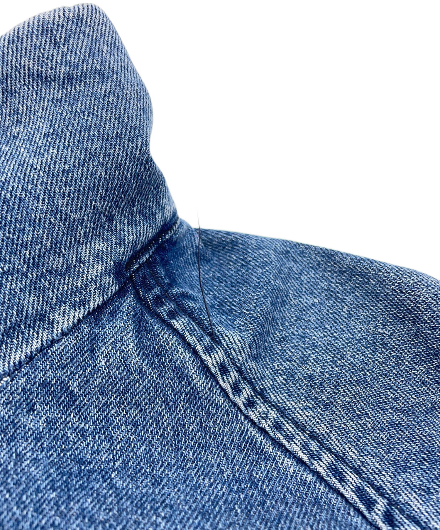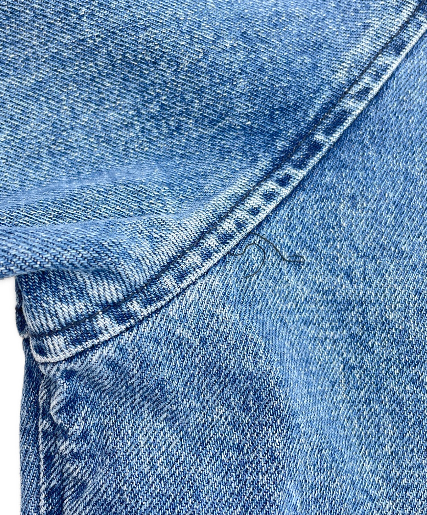 後ろ身頃、左脇付近に縫製不良による糸の飛び出しがございます。(画像16枚目参照)