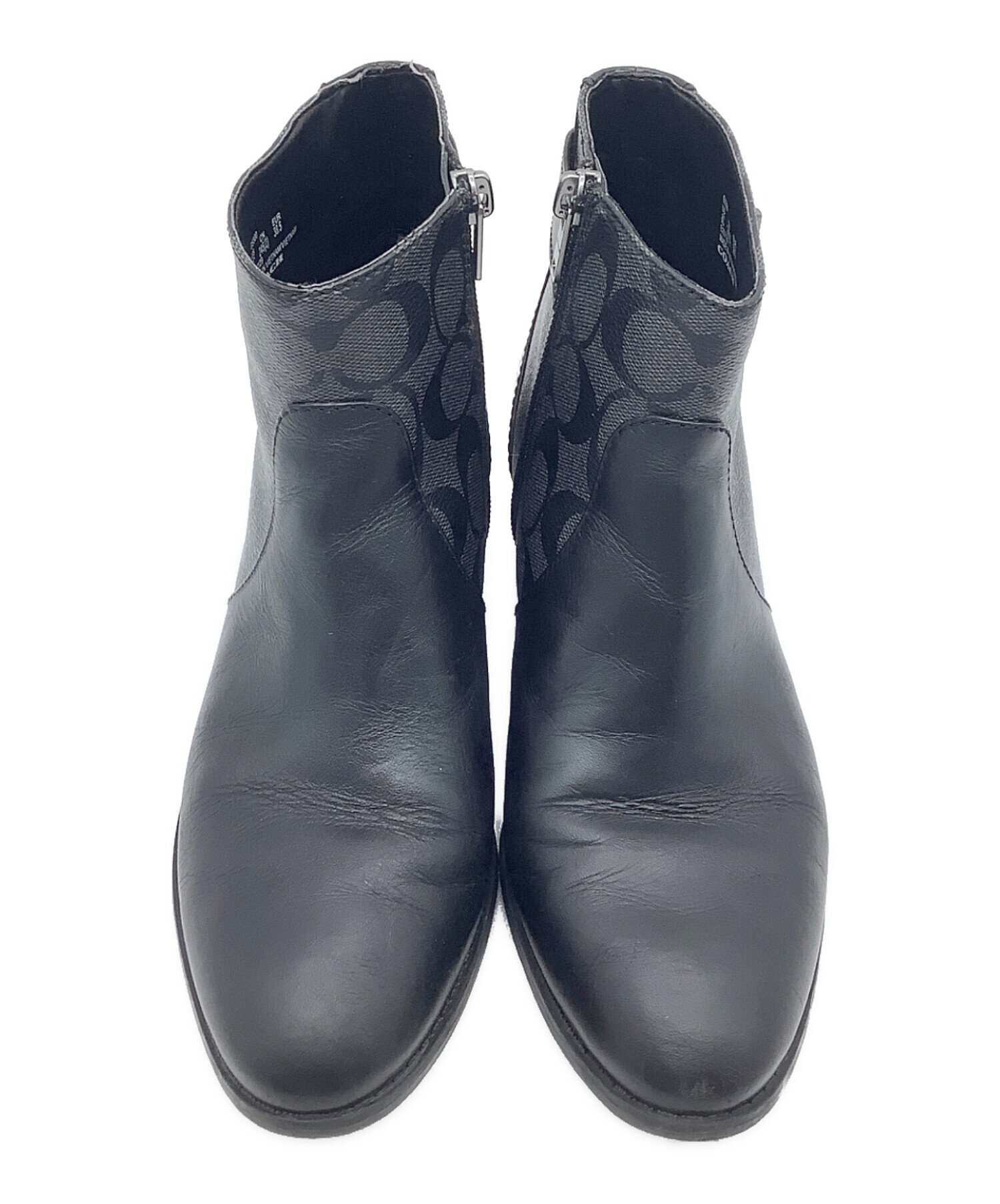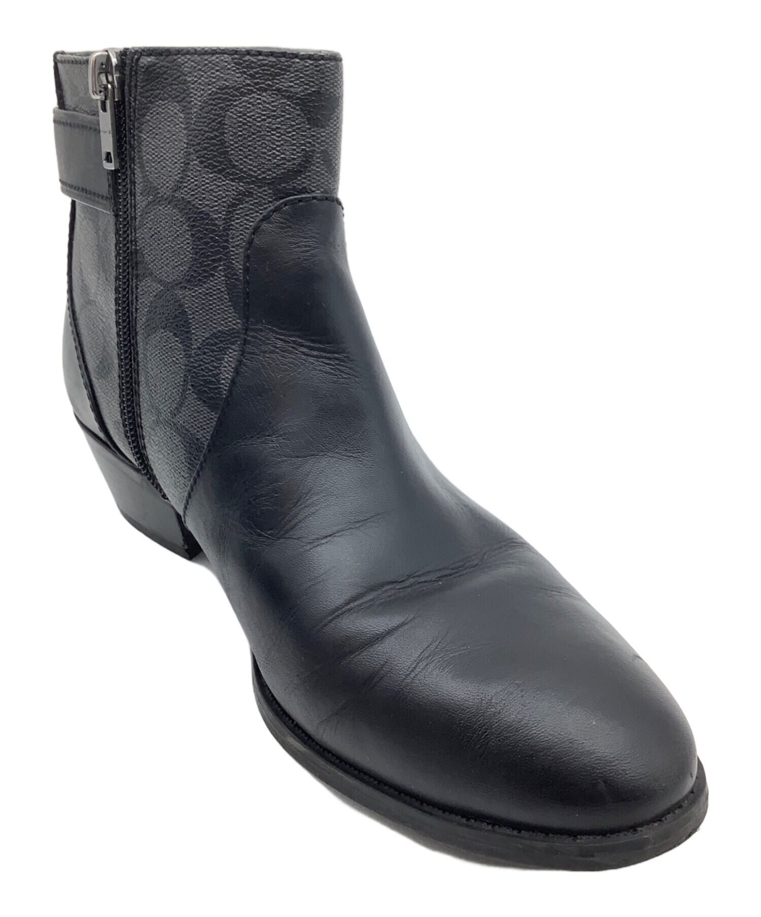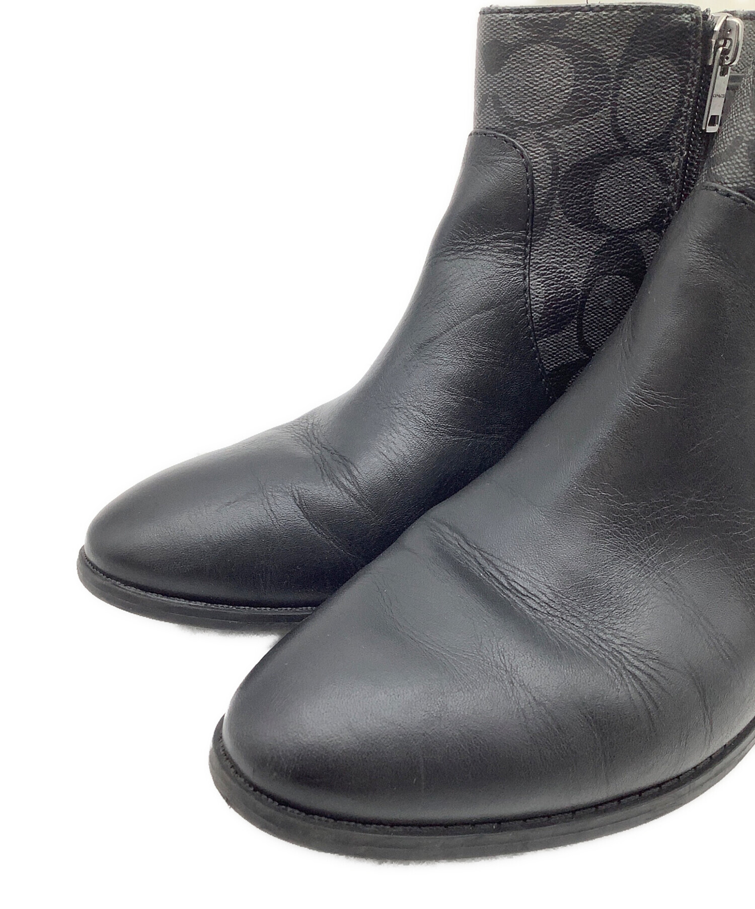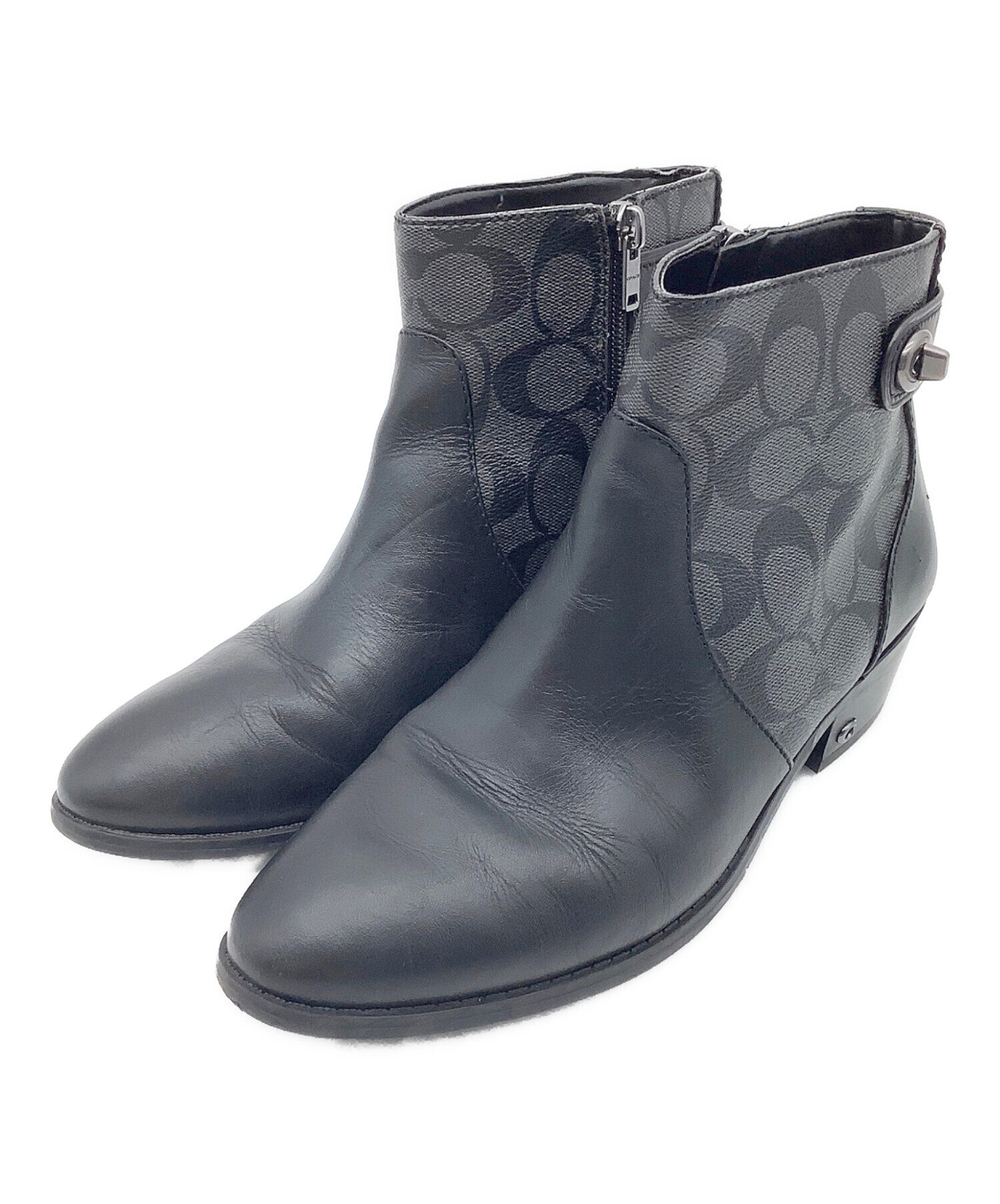 • COACH(コーチ)COACH (コーチ) シグネチャー ショートブーツ グレー×ブラック サイズ:EUR 38.5の古着・服飾アイテム つま先 シワ、スレ有