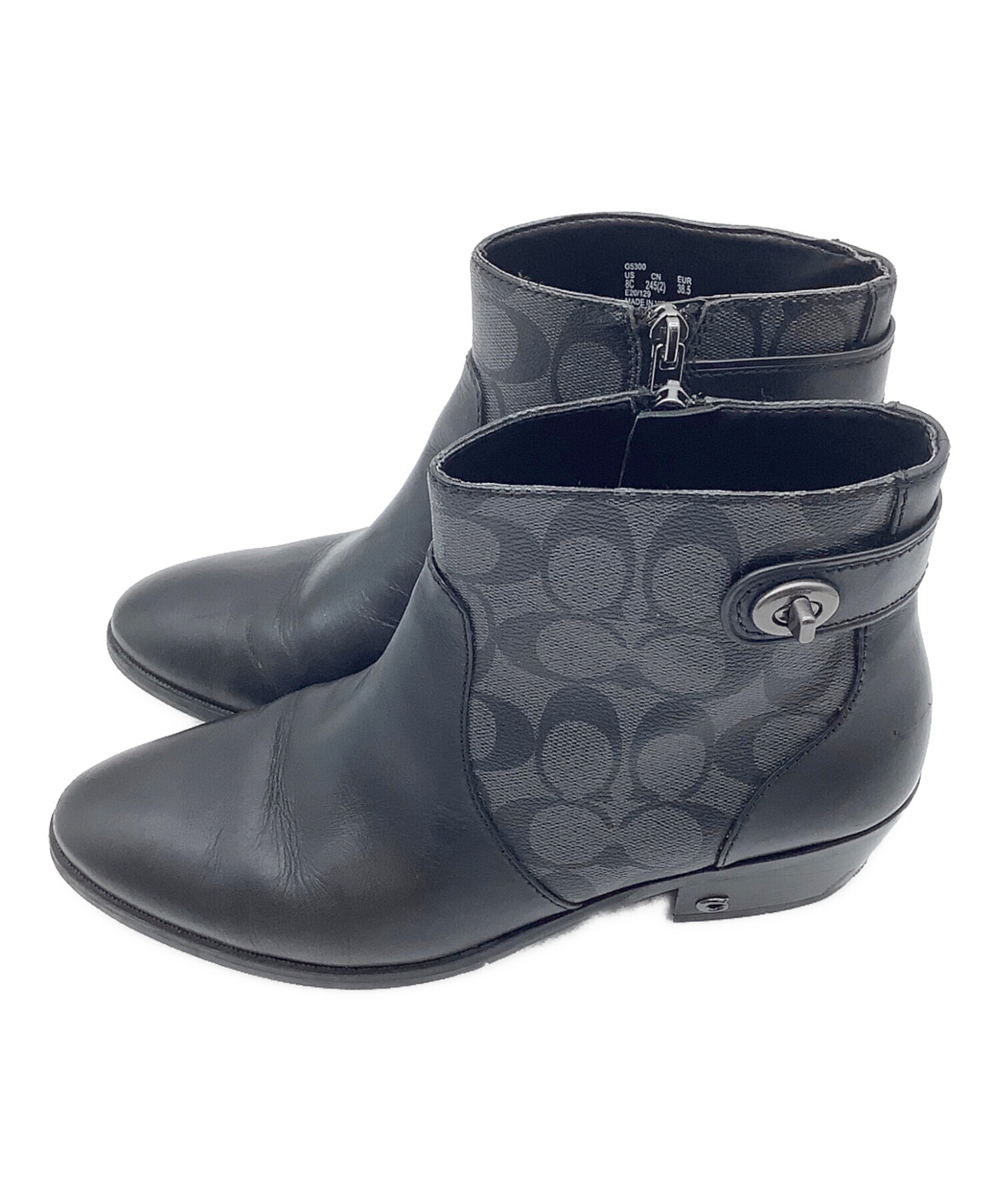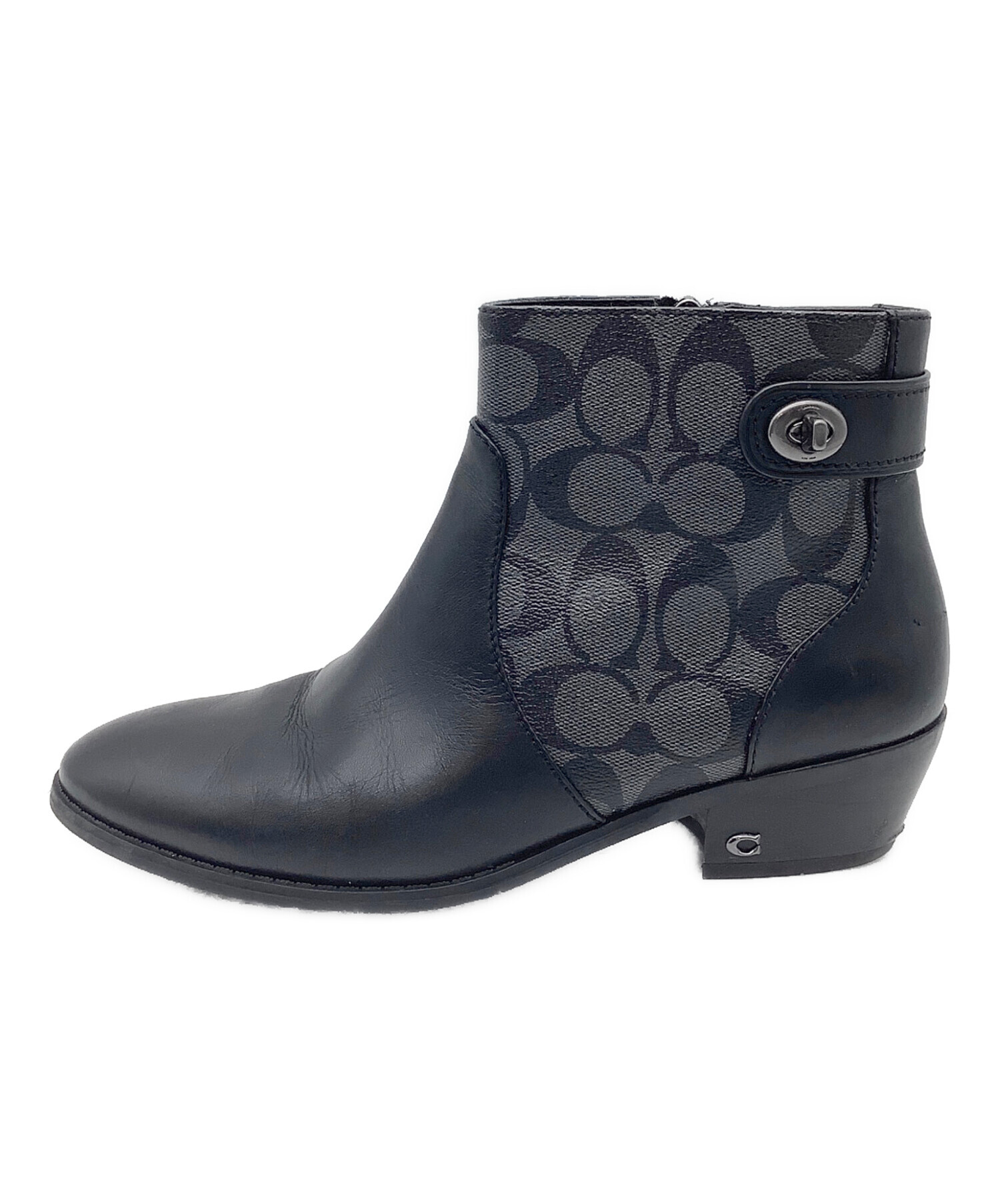 • COACH(コーチ)COACH (コーチ) シグネチャー ショートブーツ グレー×ブラック サイズ:EUR 38.5の古着・服飾アイテム ヒール スレ、ヨゴレ有
