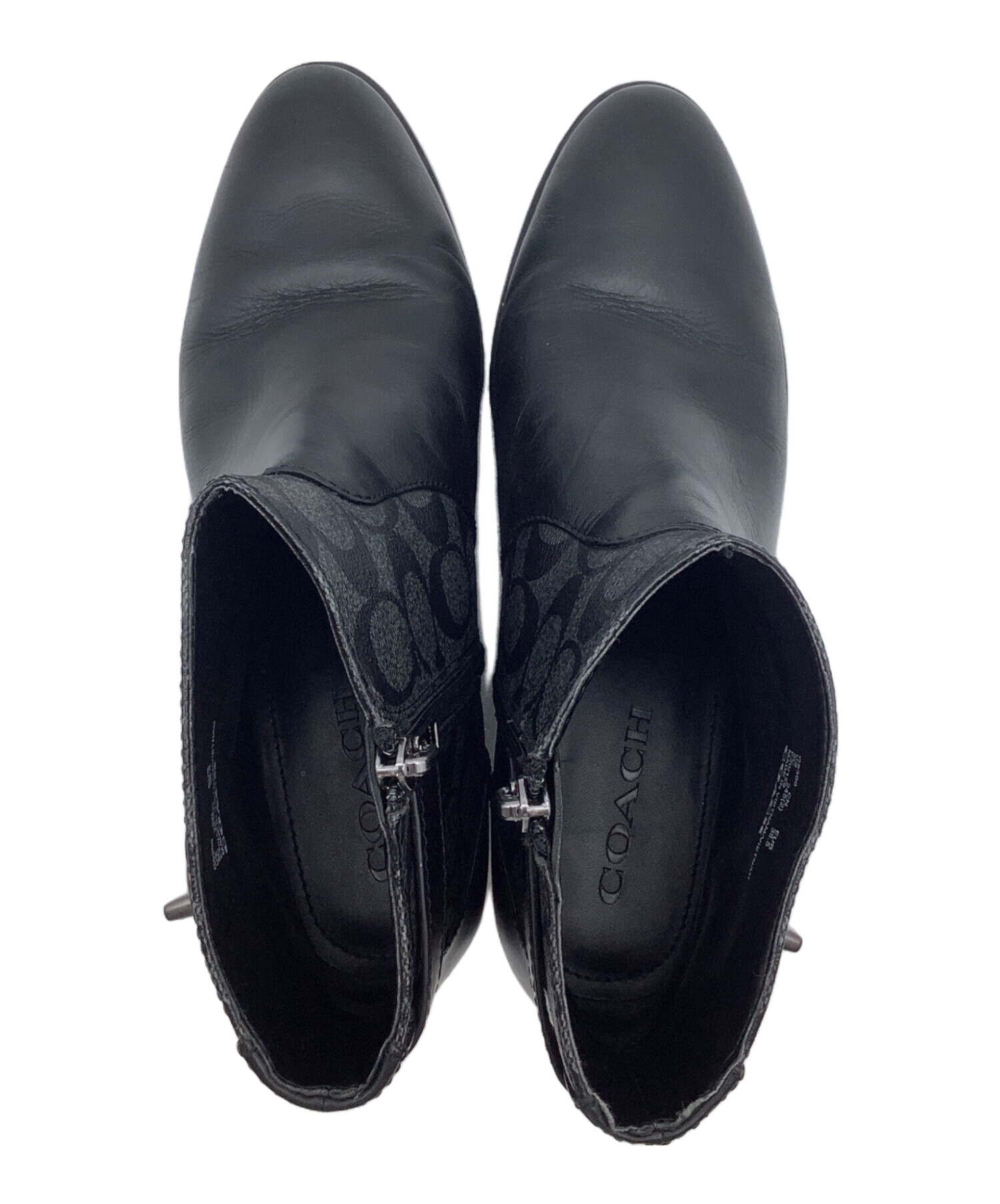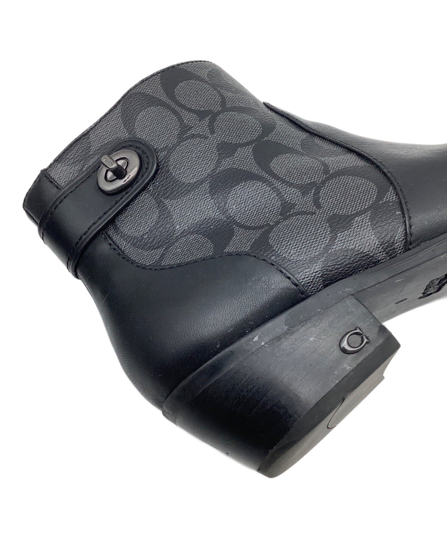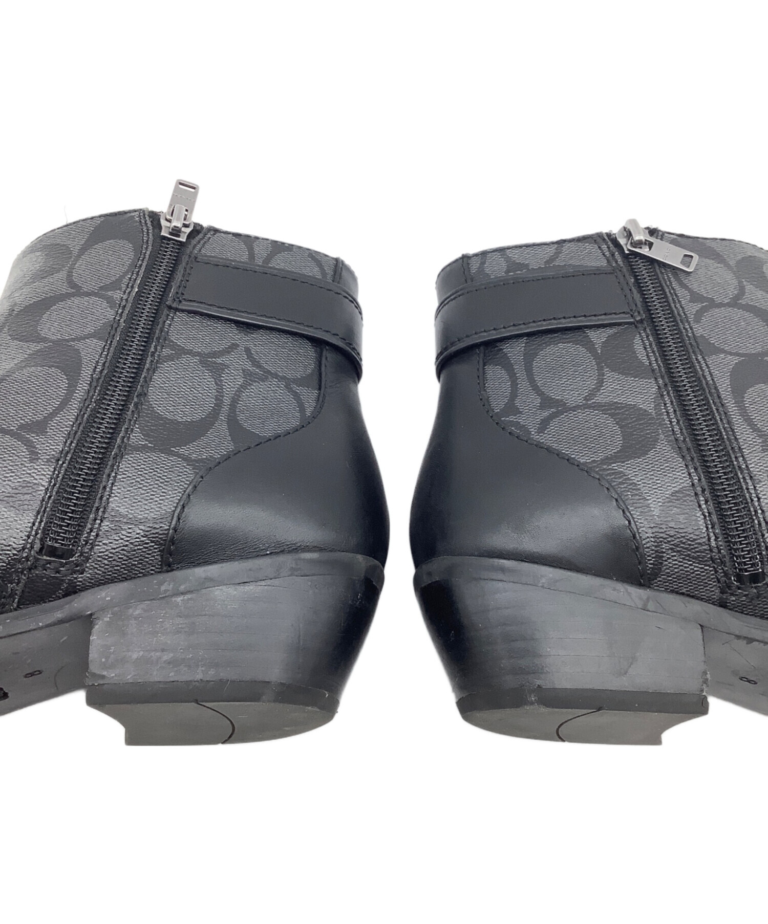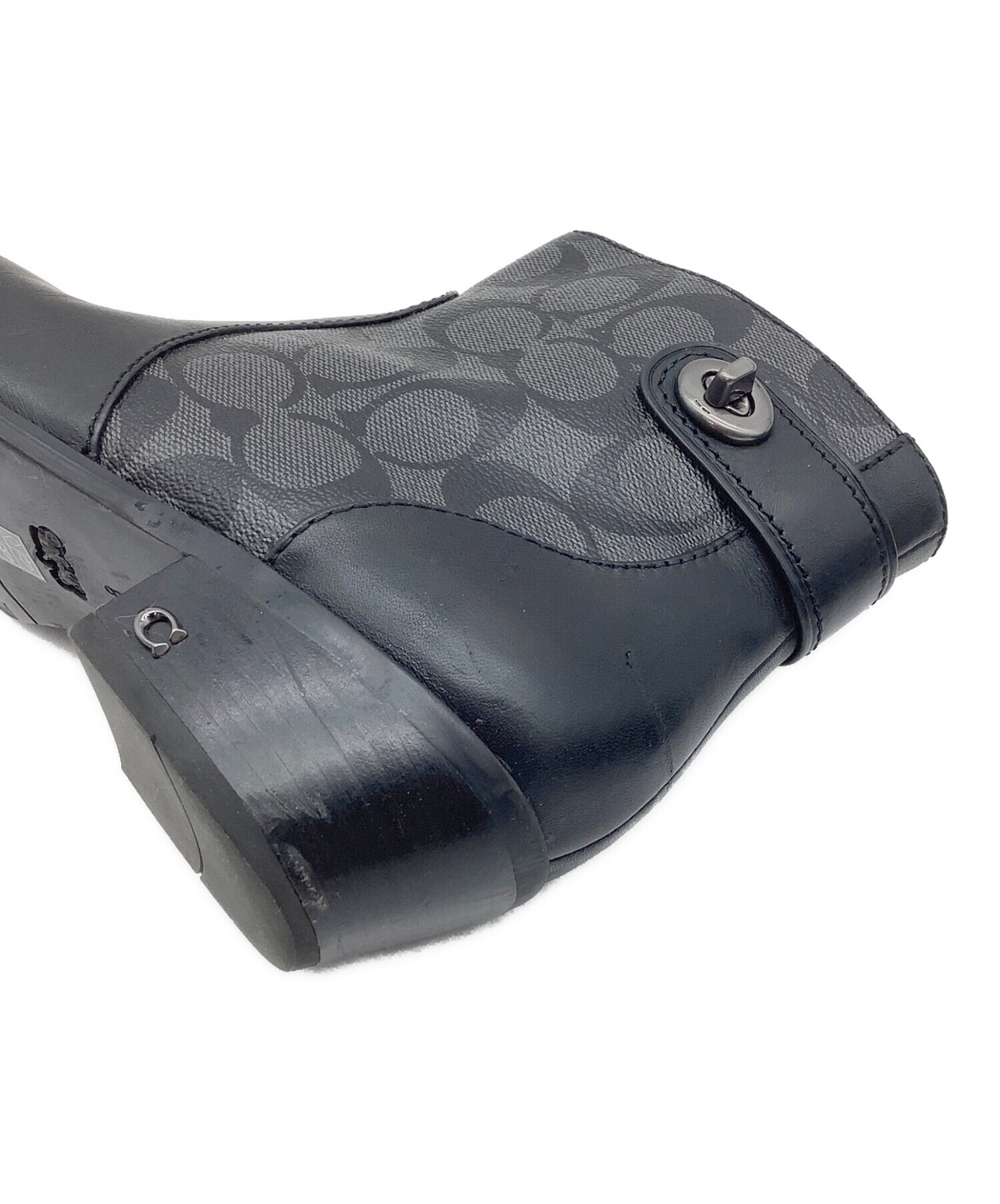 • COACH(コーチ)COACH (コーチ) シグネチャー ショートブーツ グレー×ブラック サイズ:EUR 38.5の古着・服飾アイテム 左足ヒール・かかと スレ、ヨゴレ、キズ有
