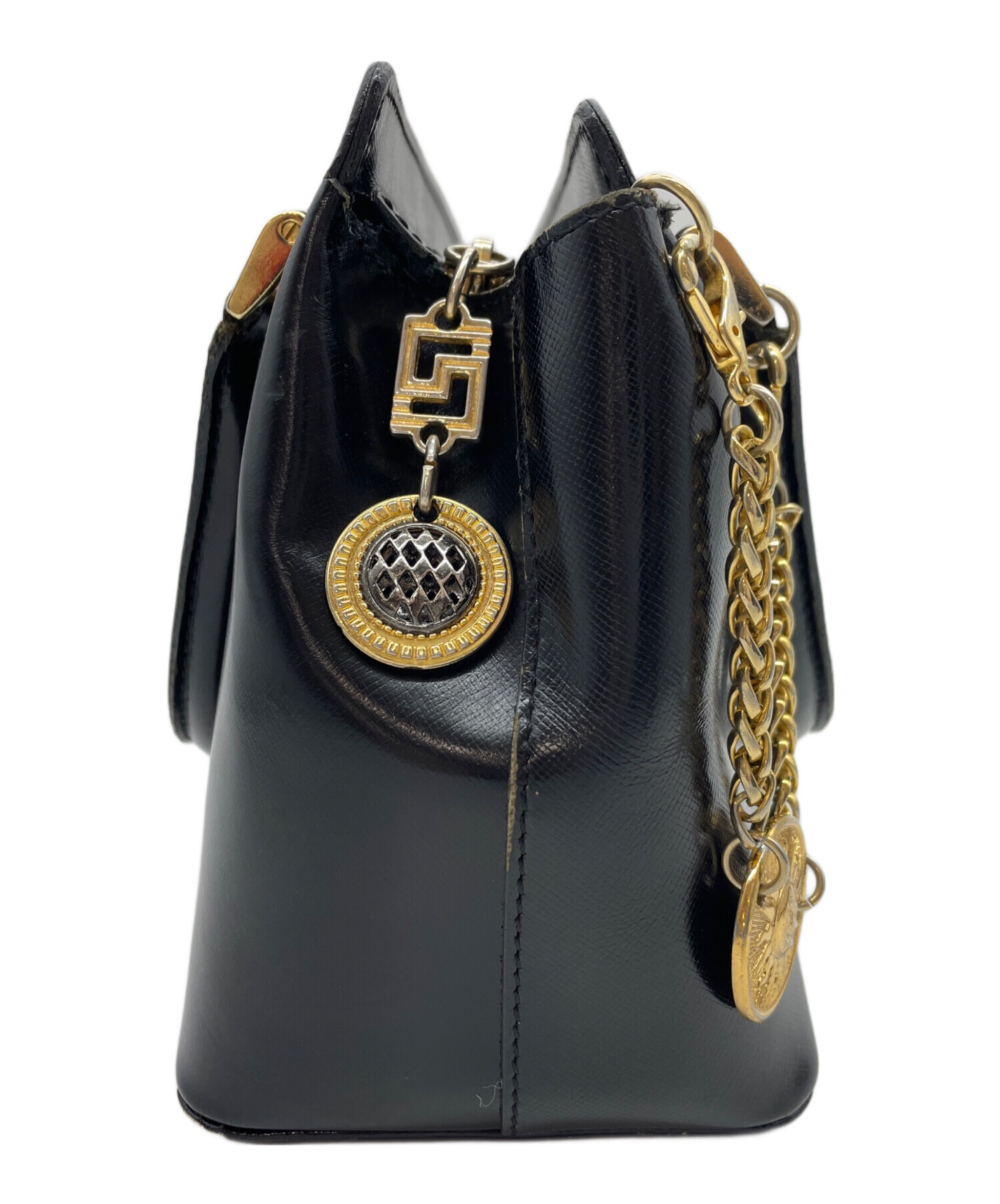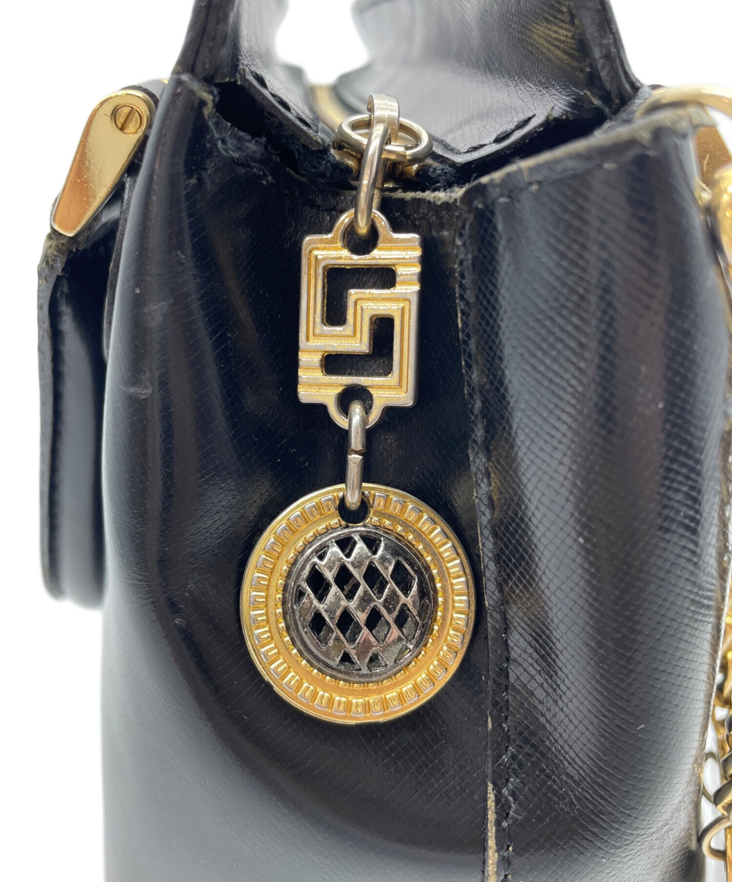 | 状態 | すべての角にスレがございます(画像9~12枚目参照) すべてのチャームに細かなキズが複数ございます(画像13,14枚目参照) 持ち手の根元にキズがございます(画像15,16枚目参照) こちらの商品は中古品の為、使用に伴います細かなキズ、汚れがございます。店頭にて展示販売を行っている為、記載に無い細かなキズ、汚れが見受けられる場合がございます。 |