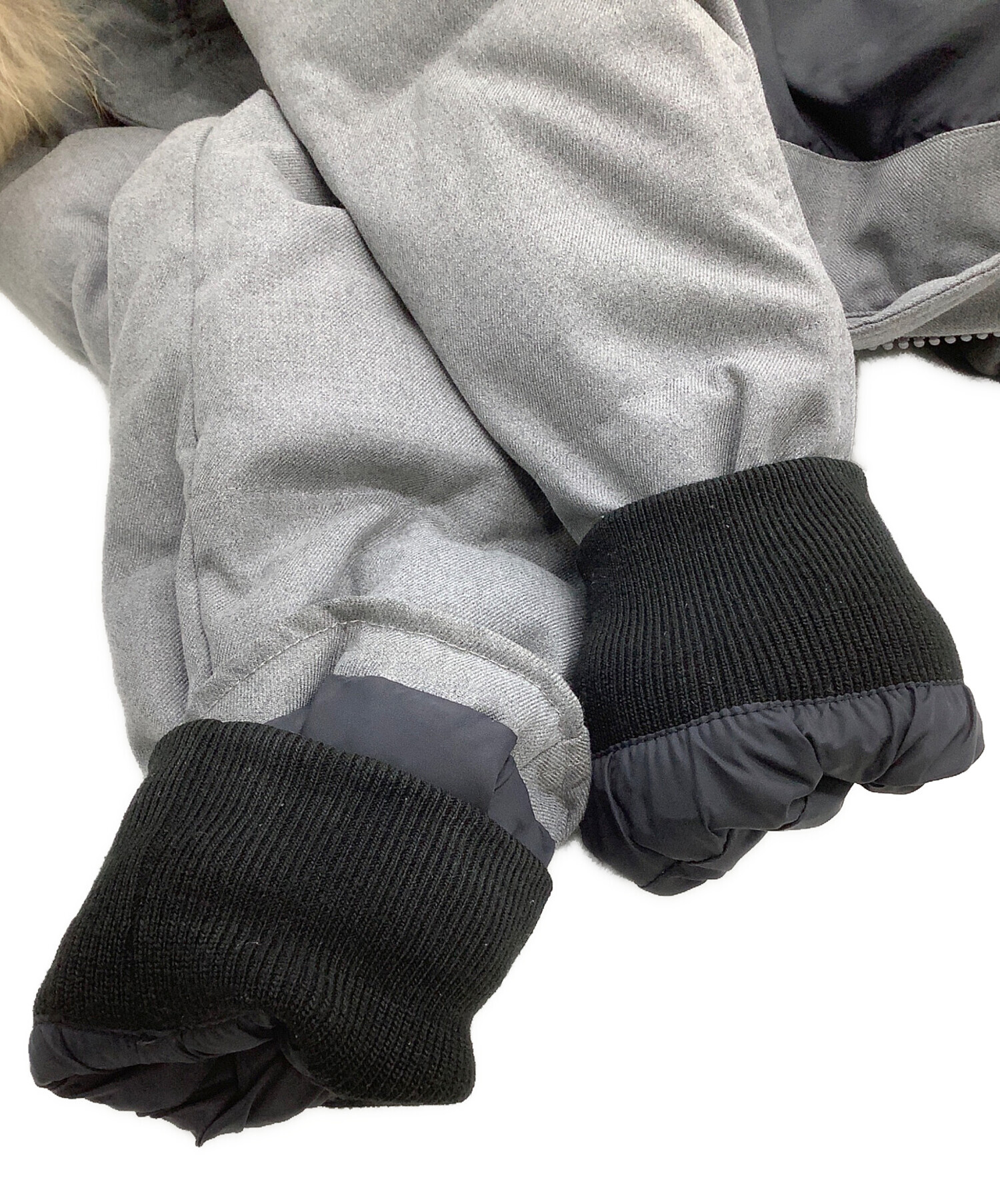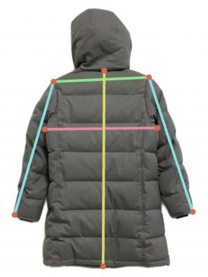 | 素材 | 表地:ポリエステル 69% レーヨン 29% ポリウレタン 2% 裏地:ポリエステル 100% 詰物:ダウン 80% フェザー 20% リブ部分: アクリル 88% ポリエステル 11% ポリウレタン 1% ファー部分: タヌキ チャイニーズラクーン |
