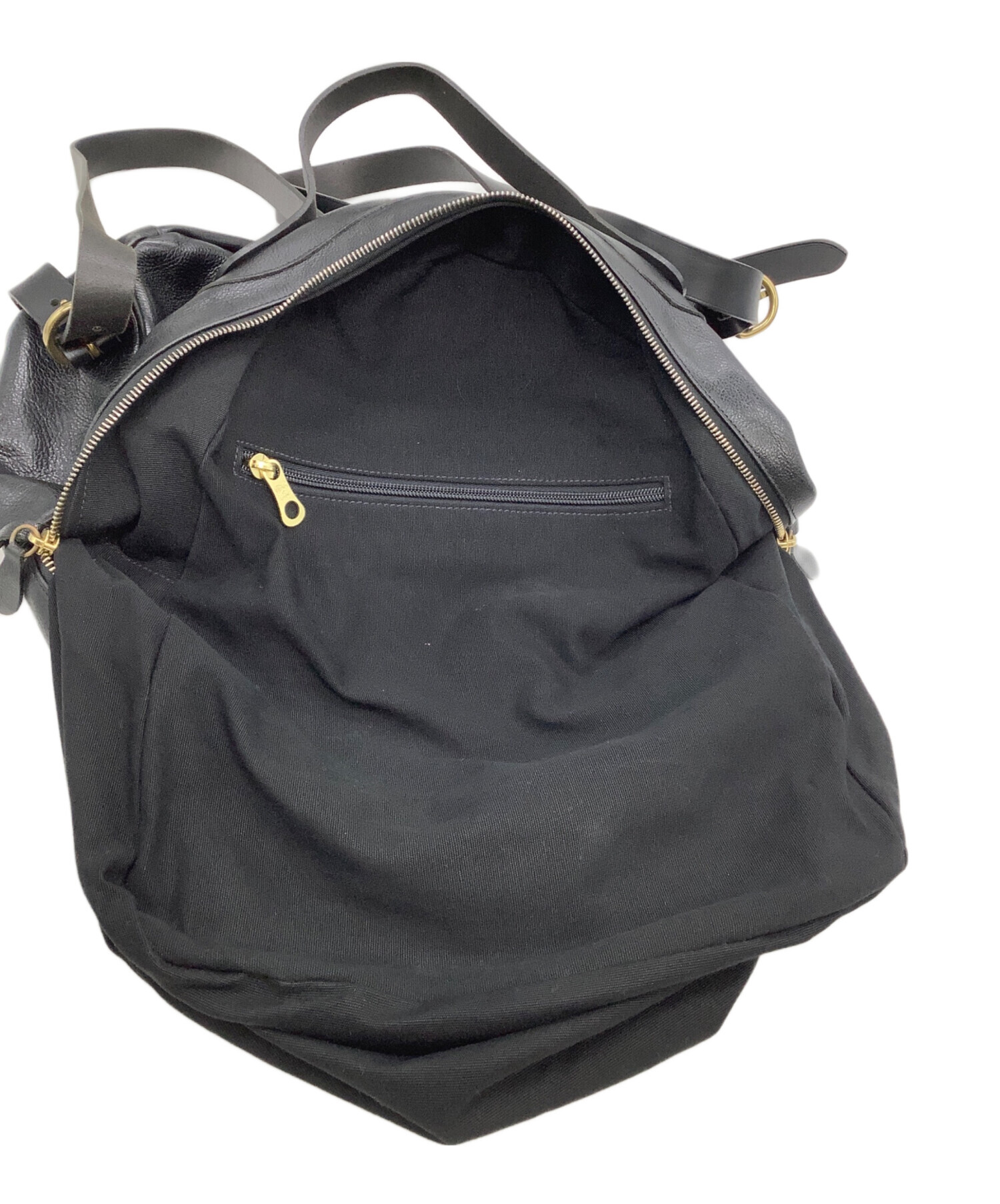 • IL BISONTE(イル ビゾンテ)IL BISONTE (イル ビゾンテ) レザーバックパック ブラックの古着・服飾アイテム 内部ヨゴレ有
