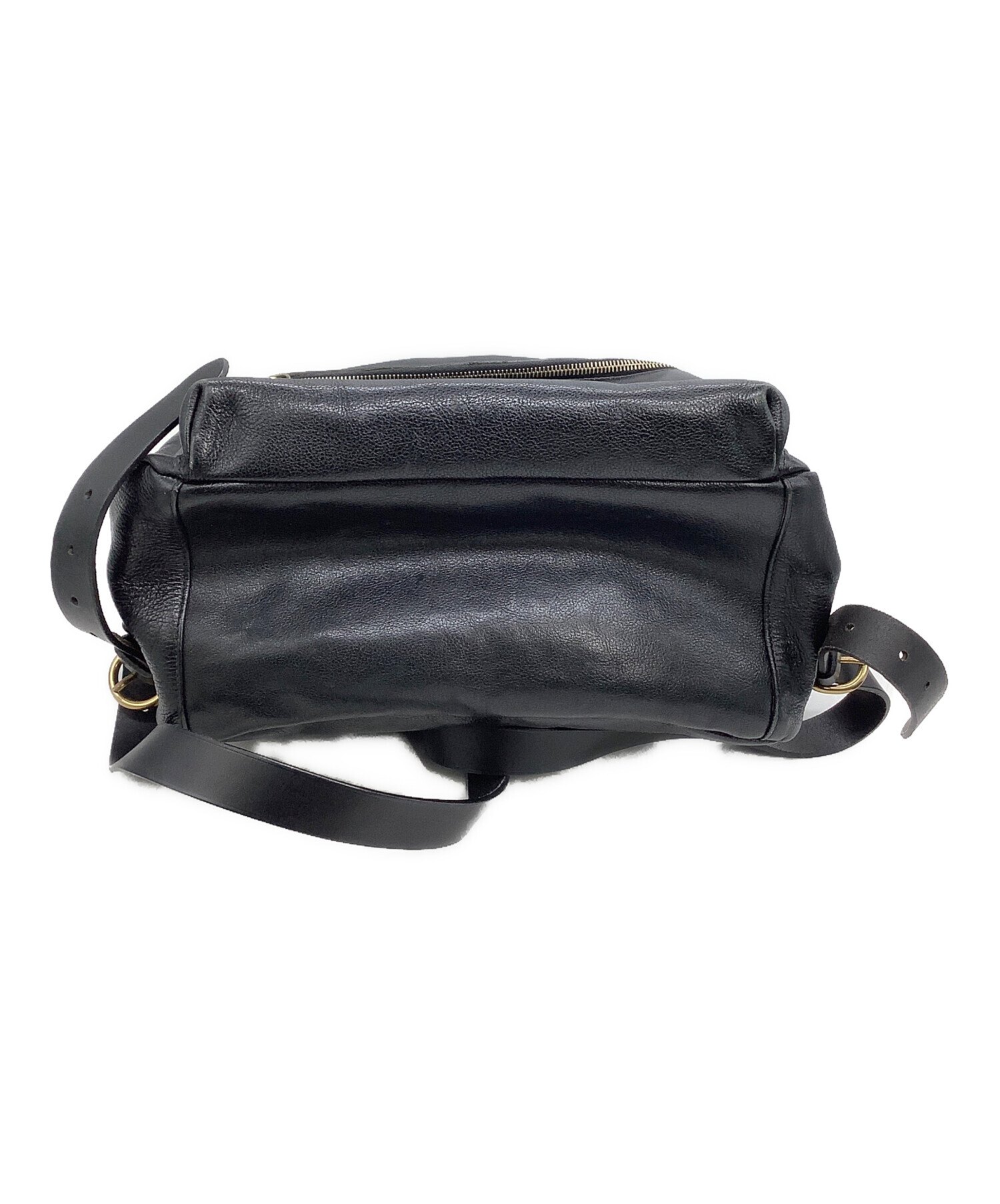 • IL BISONTE(イル ビゾンテ)IL BISONTE (イル ビゾンテ) レザーバックパック ブラックの古着・服飾アイテム 金具ハガレ有