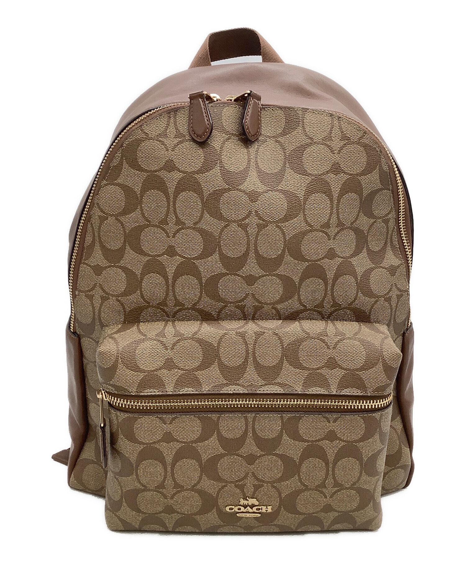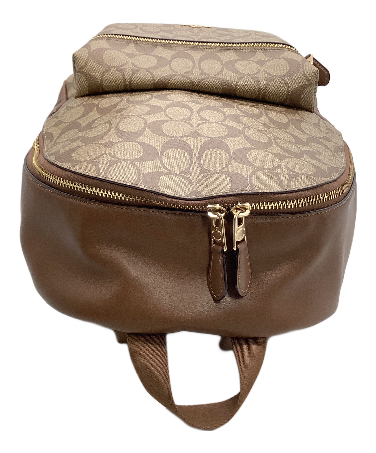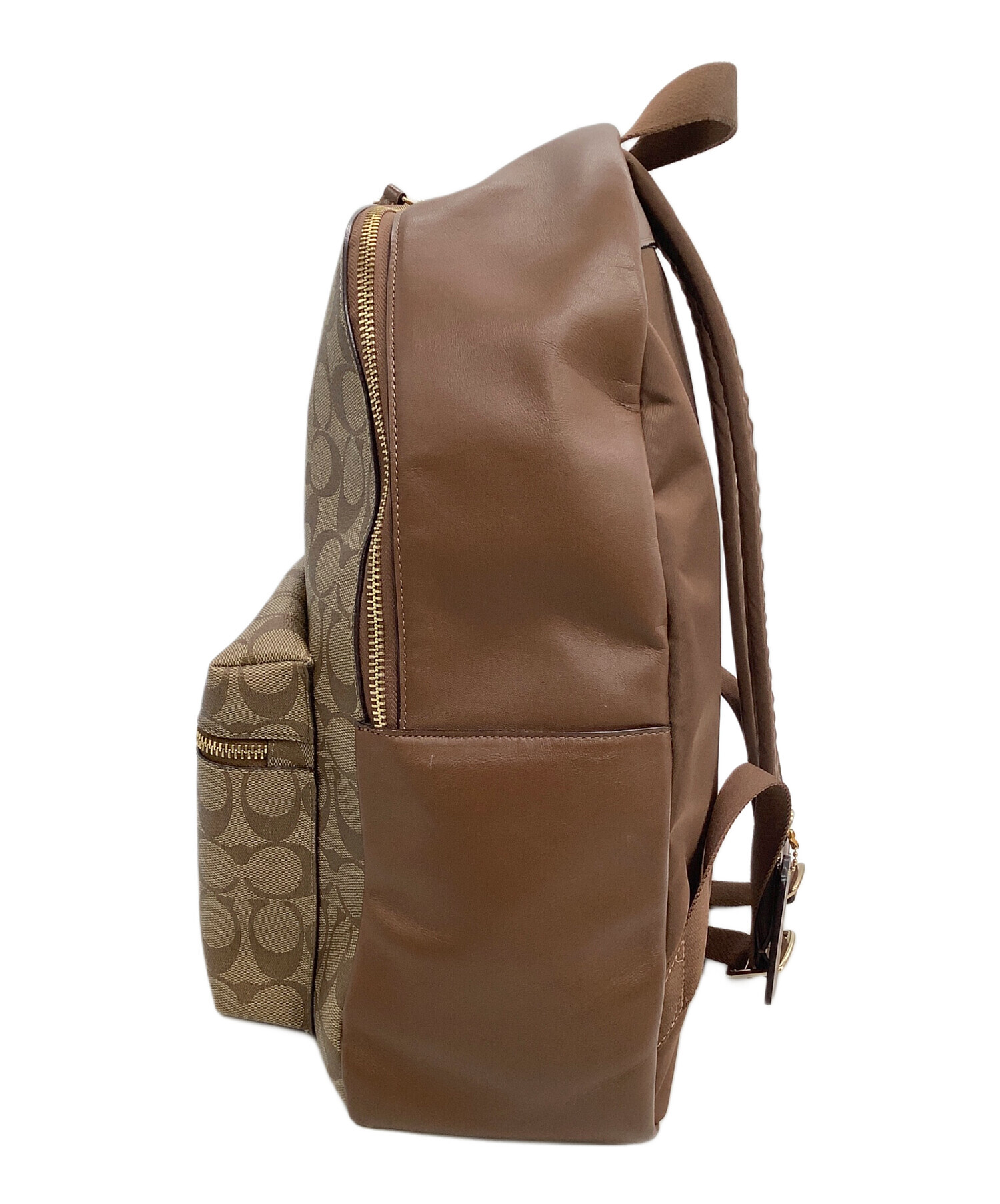 • COACH(コーチ)COACH (コーチ) リュック シグネチャー ベージュ×ブラウンの古着・服飾アイテム 角スレ、スレ、金具キズ有