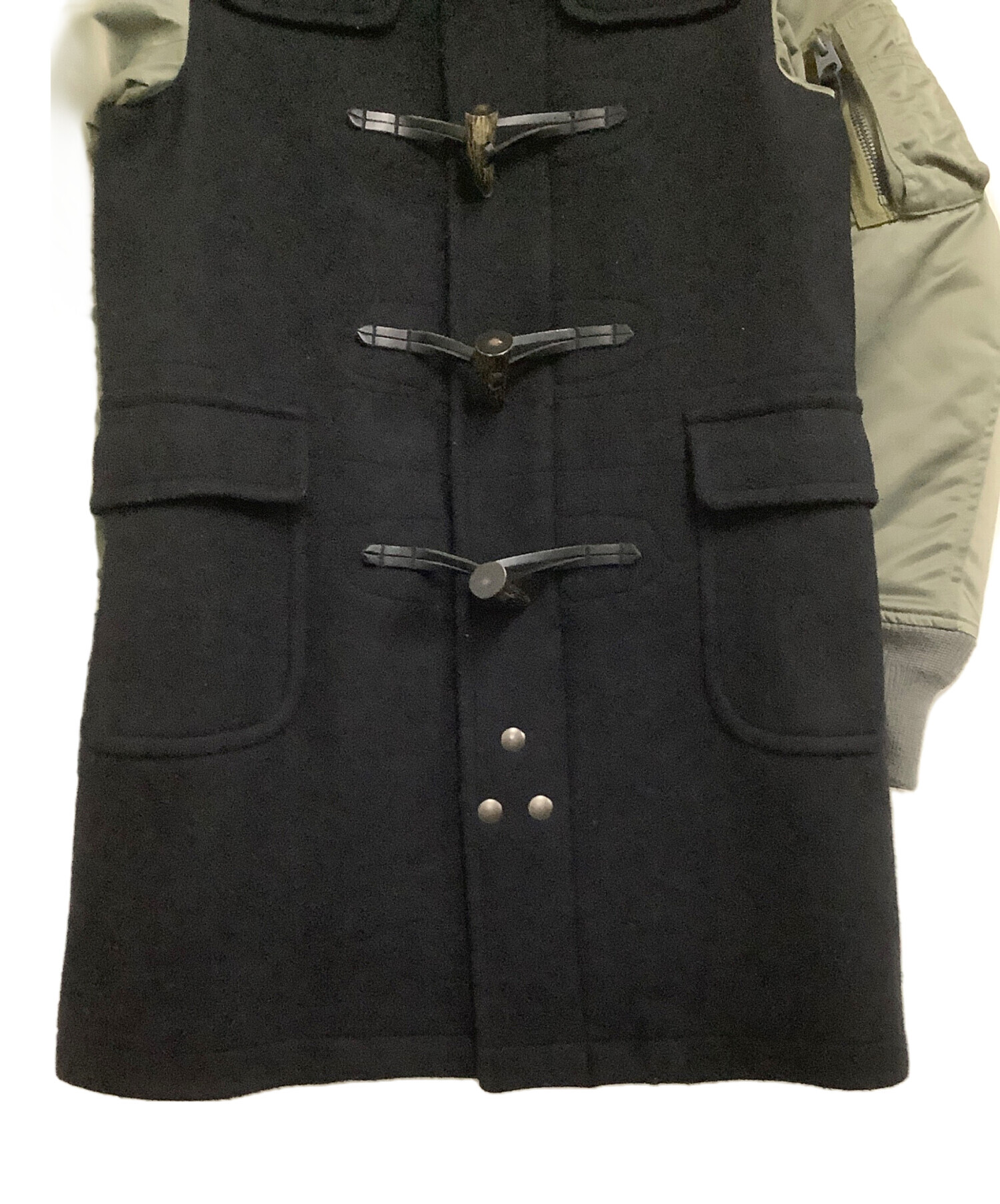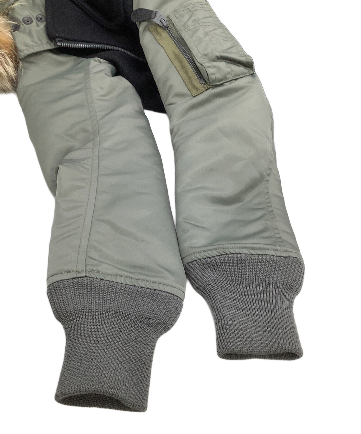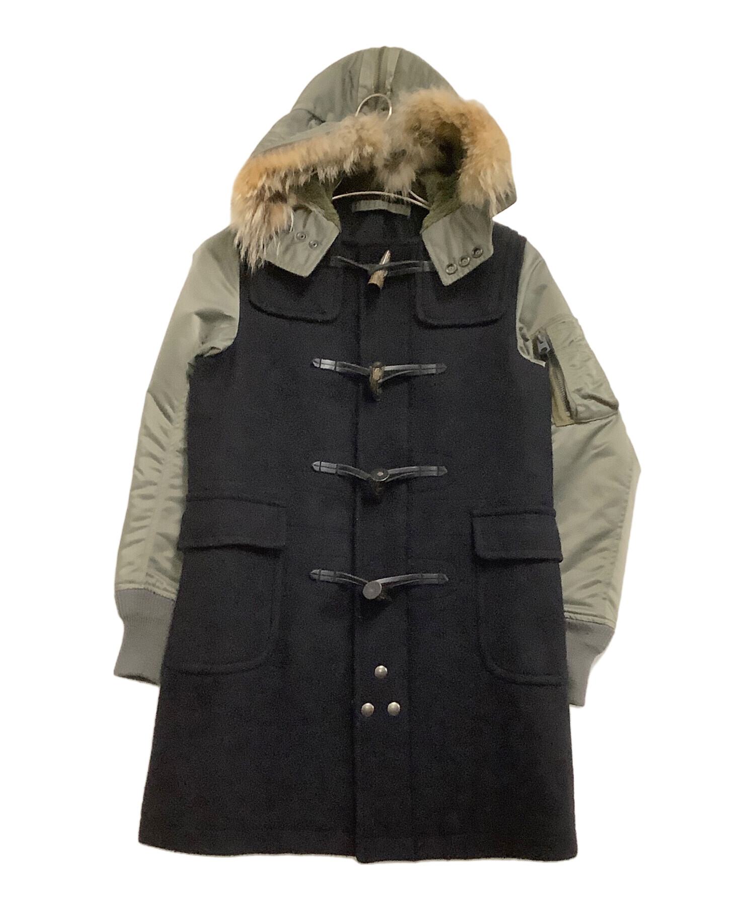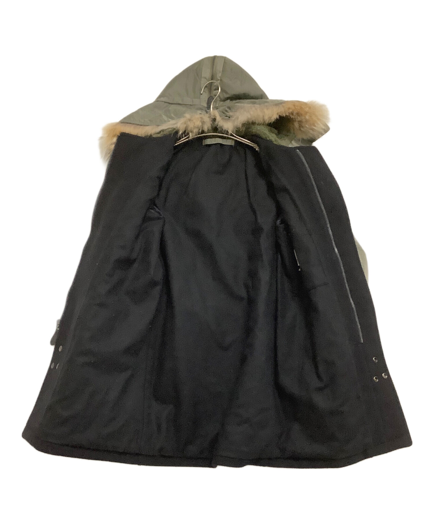 | 素材 | 表生地: 毛 90% カシミヤ 90% 袖部分:ナイロン 裏生地: 毛 91% ナイロン 9% 袖部分表側:キュプラ100% 袖部分中綿:ポリエステル 100% フード裏 基布:ポリエステル 100% パイル部分:アクリル 100% フード見返し:ナイロン 100% 毛皮部分:毛皮の種類コヨーテ リブ部分:毛 100% |