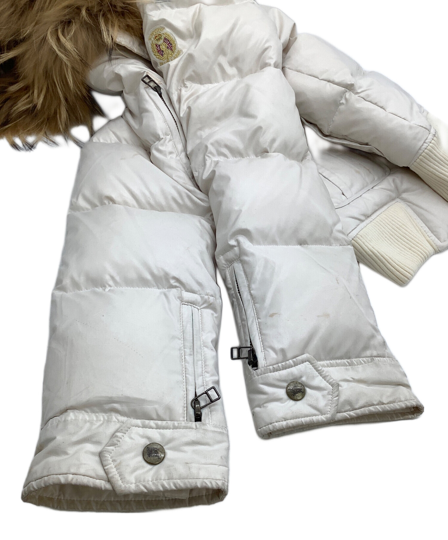 | 素材 | 表地/本体: ポリエステル 100% 中わた: ダウン 80% フェザー 20% リブ部分: アクリル 62% 毛 28% ポリウレタン 10% パッチ/部分: 合成皮革 フード部分:毛皮(ラクーン) 裏地:身頃 ナイロン ポリエステル 袖:ポリエステル |