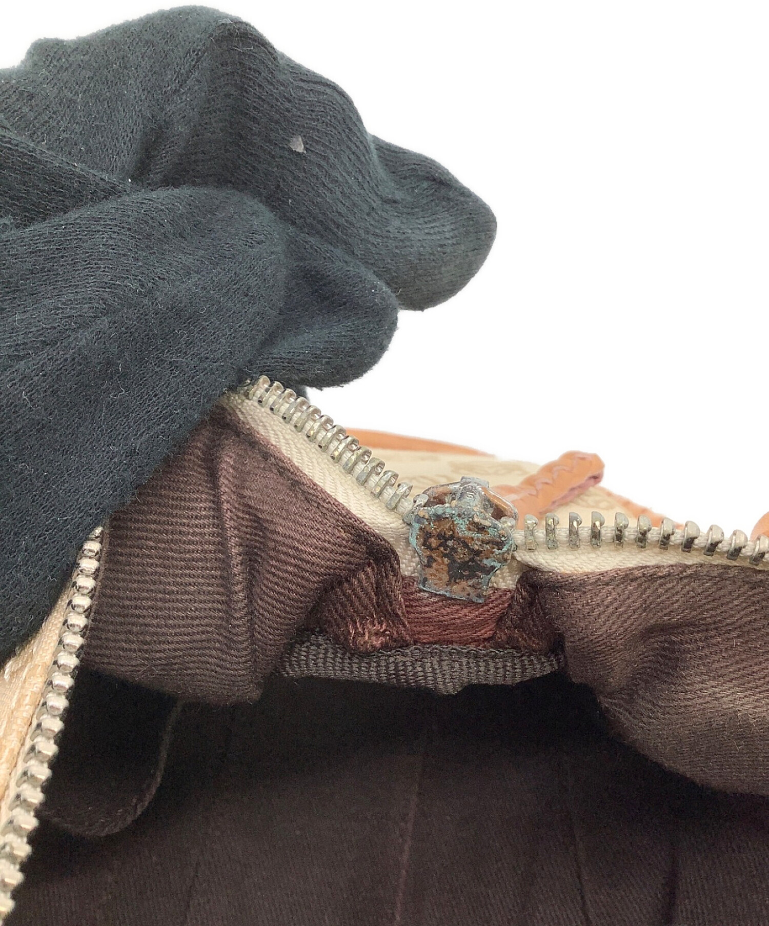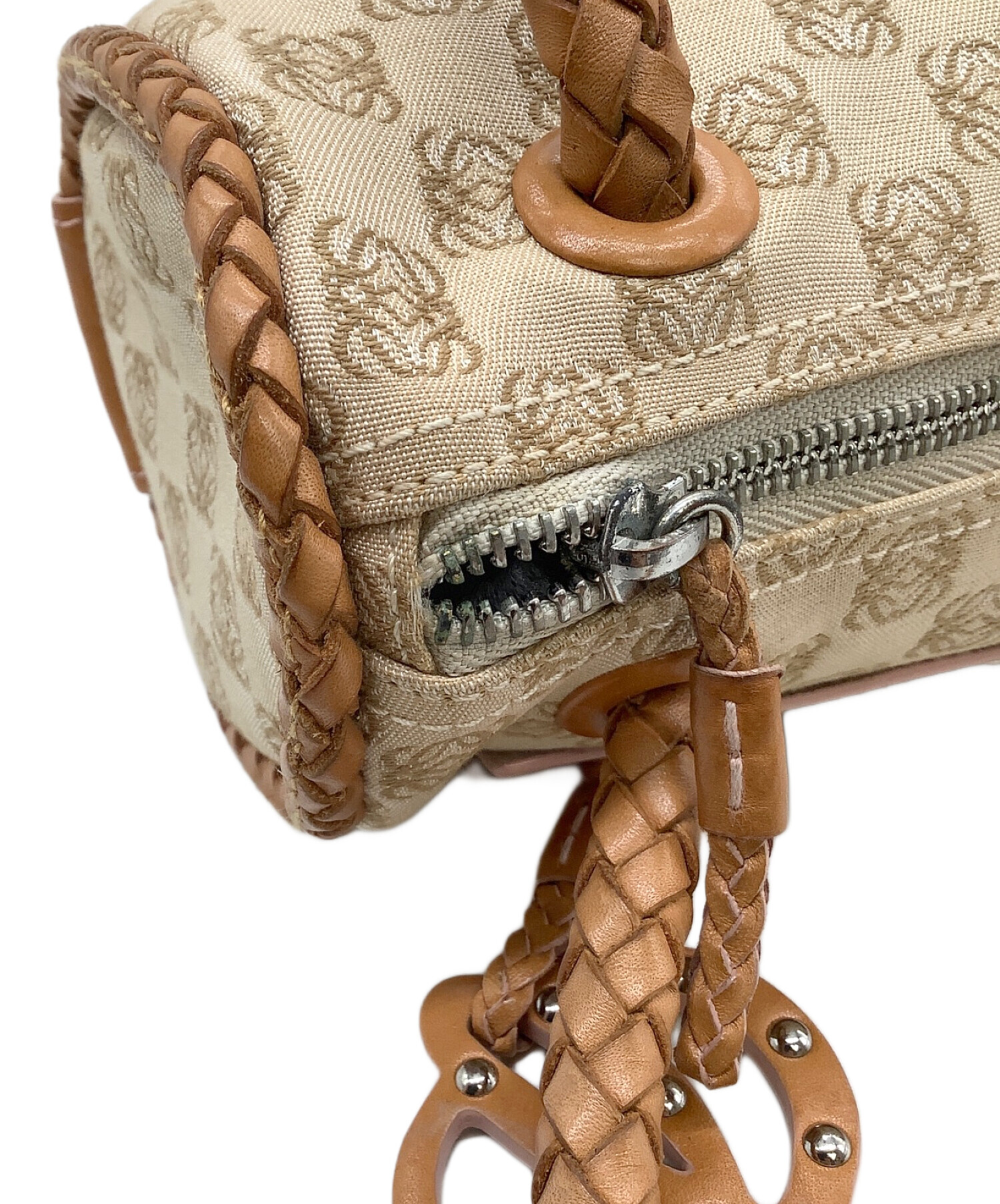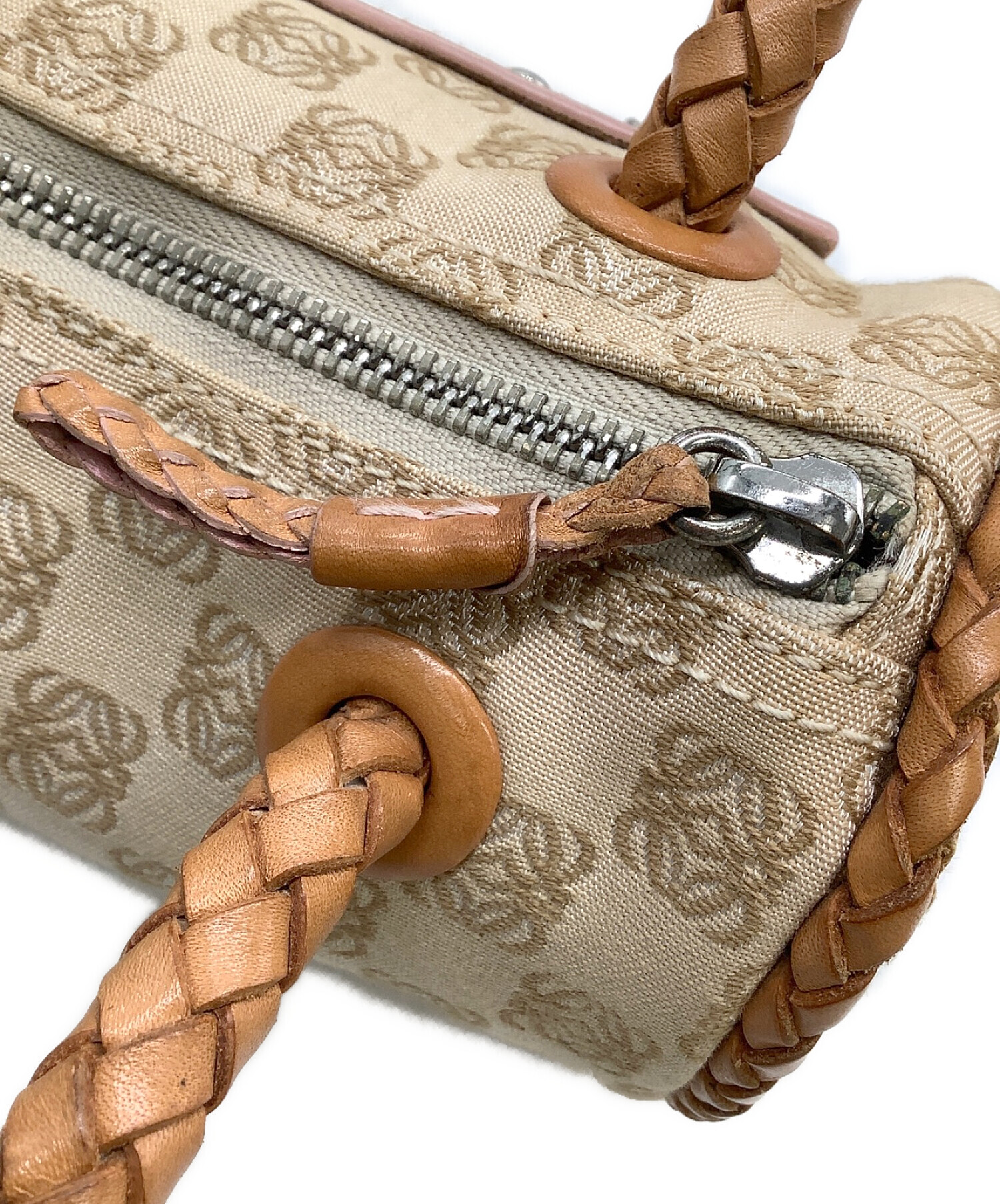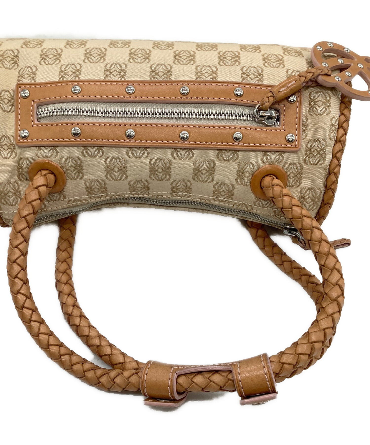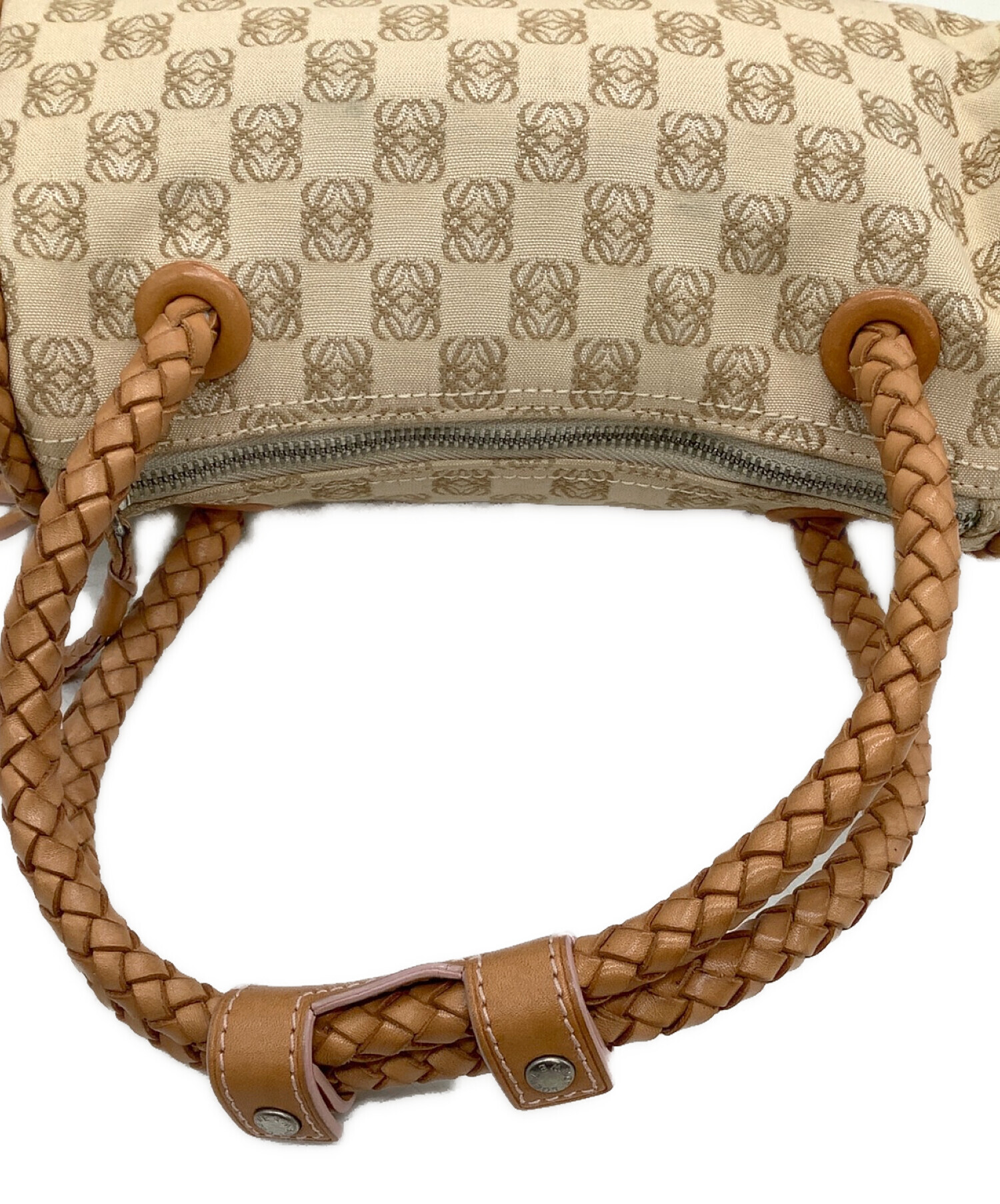 • LOEWE(ロエベ)LOEWE (ロエベ) ハンドバッグ アナグラム ベージュ×ブラウンの古着・服飾アイテム ファスナーサビ、持ち手スレ有