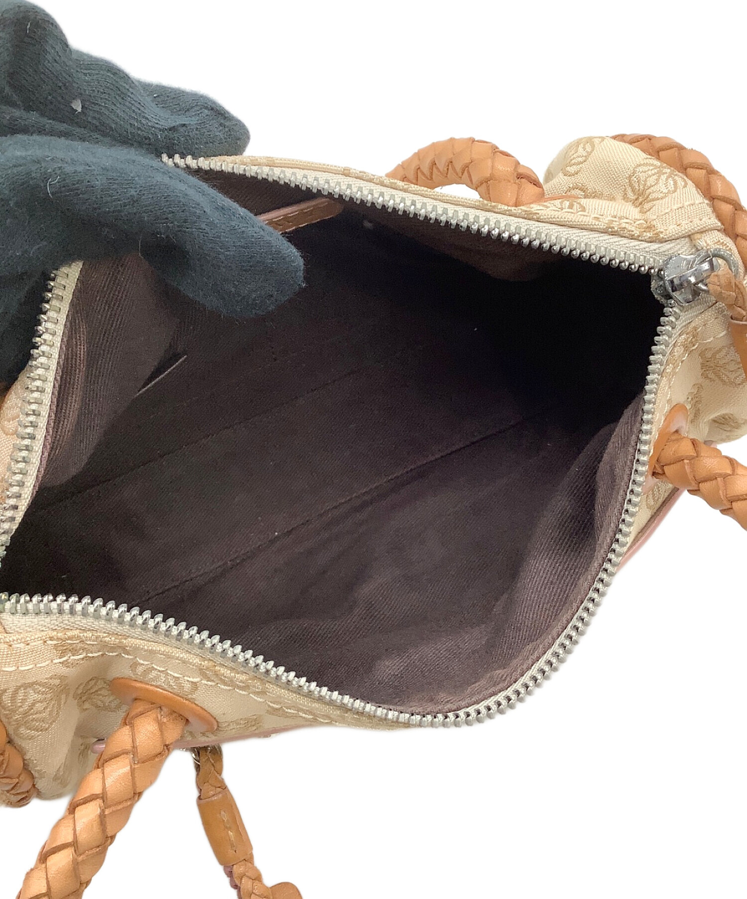 • LOEWE(ロエベ)LOEWE (ロエベ) ハンドバッグ アナグラム ベージュ×ブラウンの古着・服飾アイテム ファスナーハガレ、金具キズ有