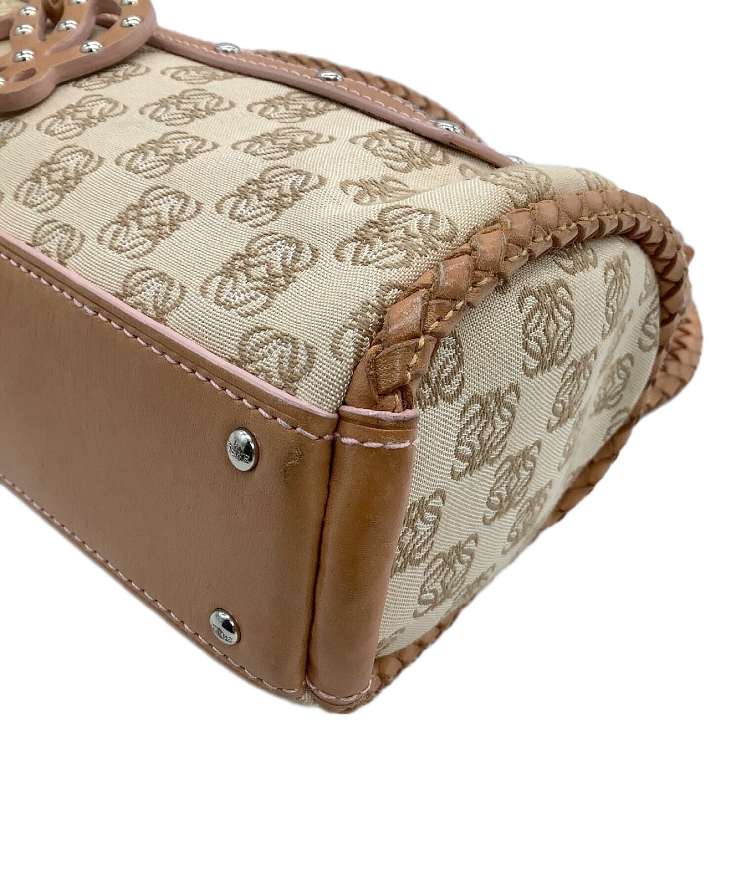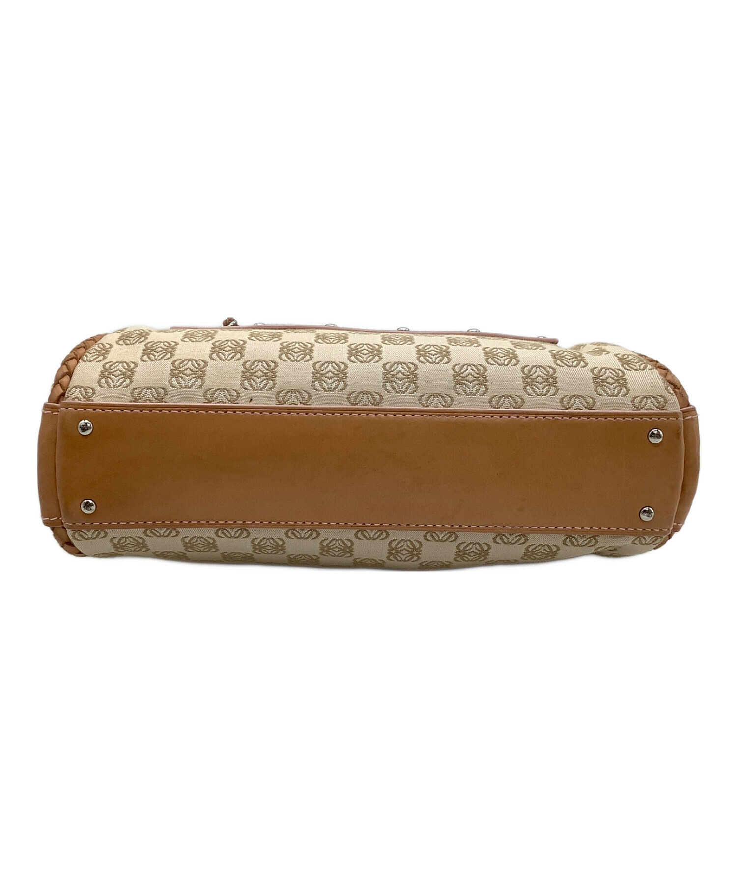 • LOEWE(ロエベ)LOEWE (ロエベ) ハンドバッグ アナグラム ベージュ×ブラウンの古着・服飾アイテム ヨゴレ、ボタンキズ有
