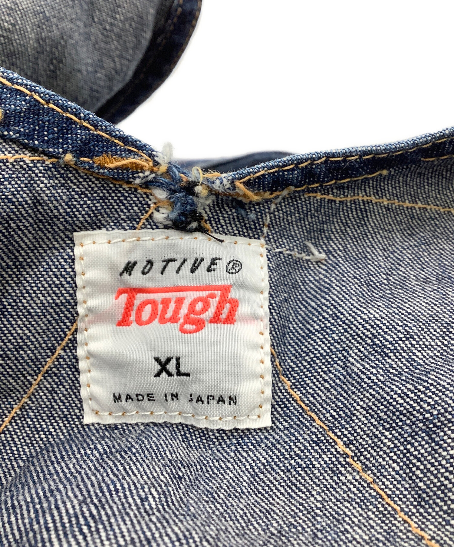 • MOTIVE TOUGH(モーティブタフ)MOTIVE TOUGH (モーティブタフ) ペインターオーバーオール インディゴ サイズ:XLの古着・服飾アイテム ボタンホールホツレ、ボタンホツレ、ホツレ有