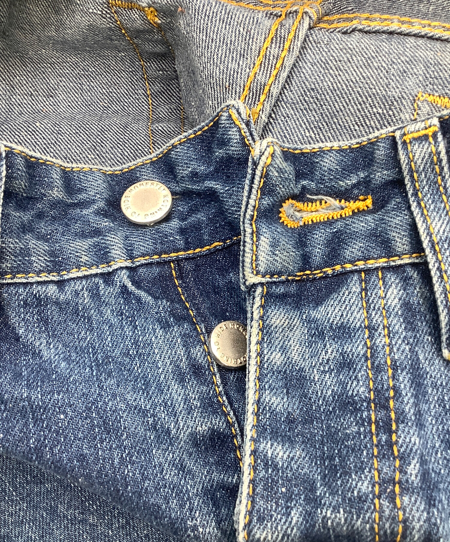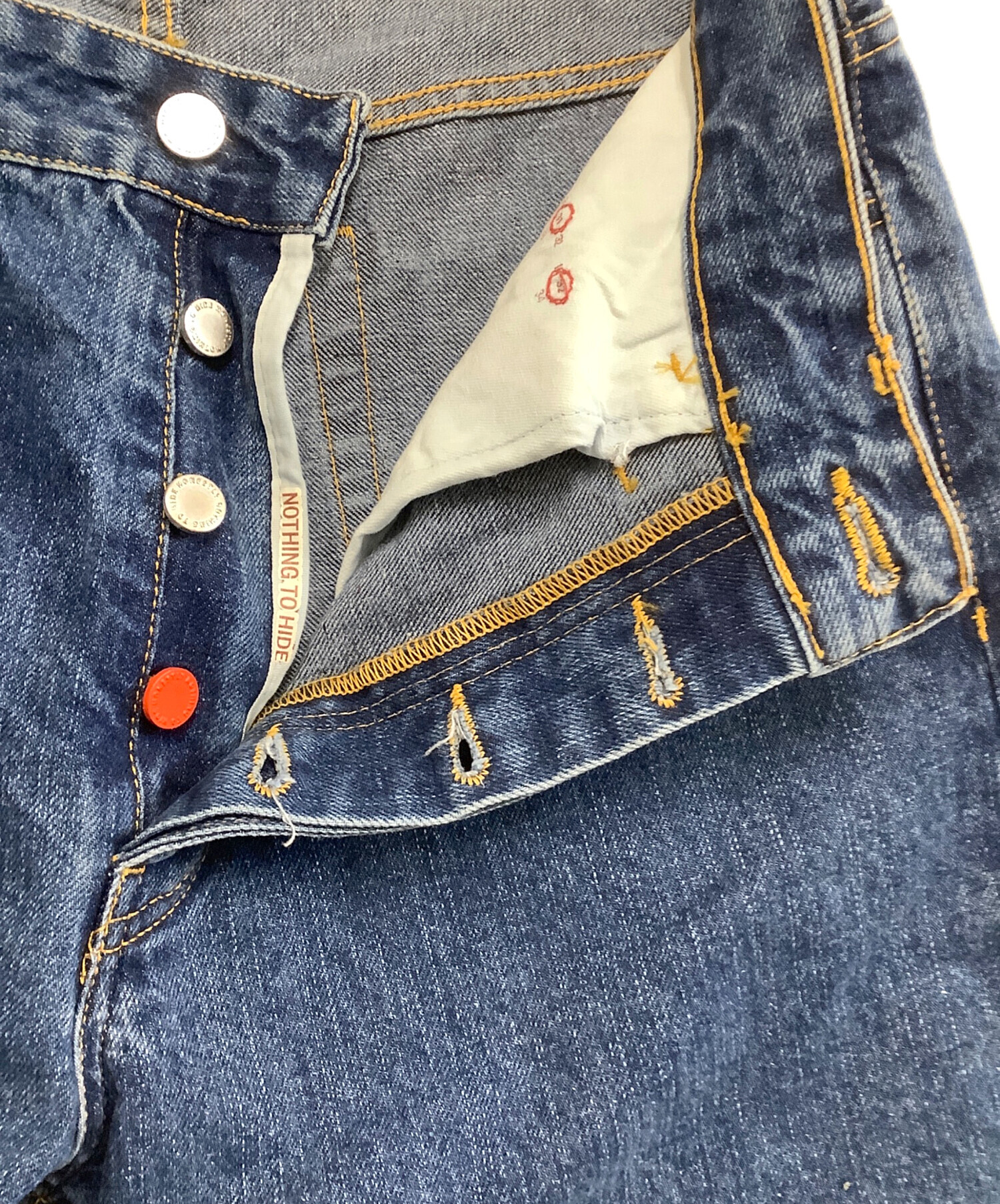 • HNST(オネスト)HNST (オネスト) デニムパンツ BASIEL Relaxed インディゴ サイズ:W31×L32の古着・服飾アイテム ボタンホールホツレ有