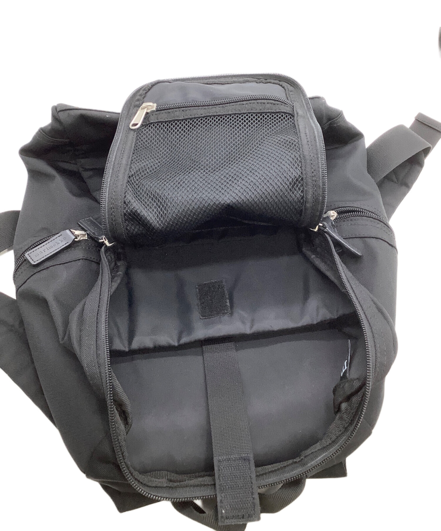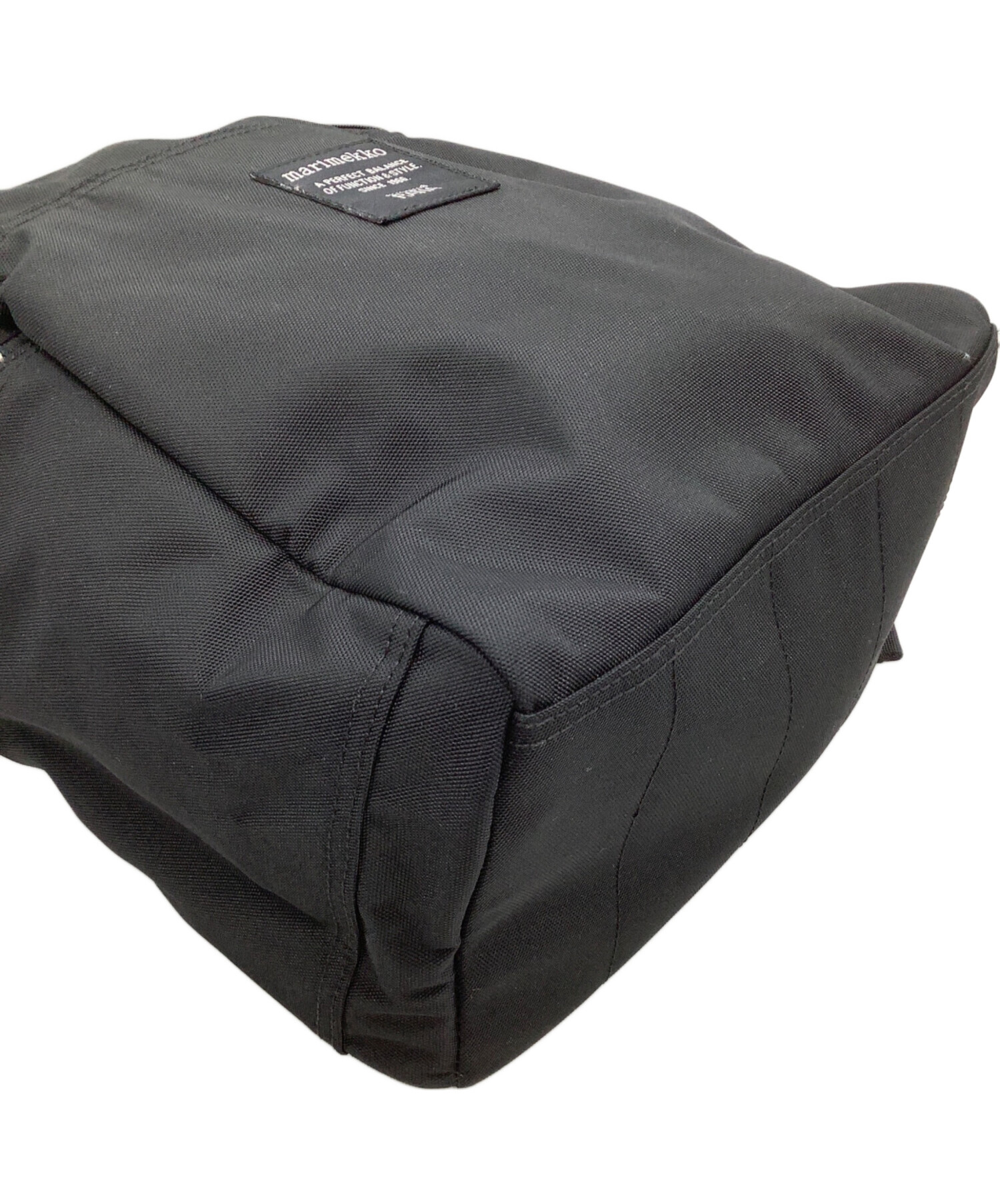 • marimekko(マリメッコ)marimekko (マリメッコ) リュック METRO ブラックの古着・服飾アイテム ストラップヨゴレ有