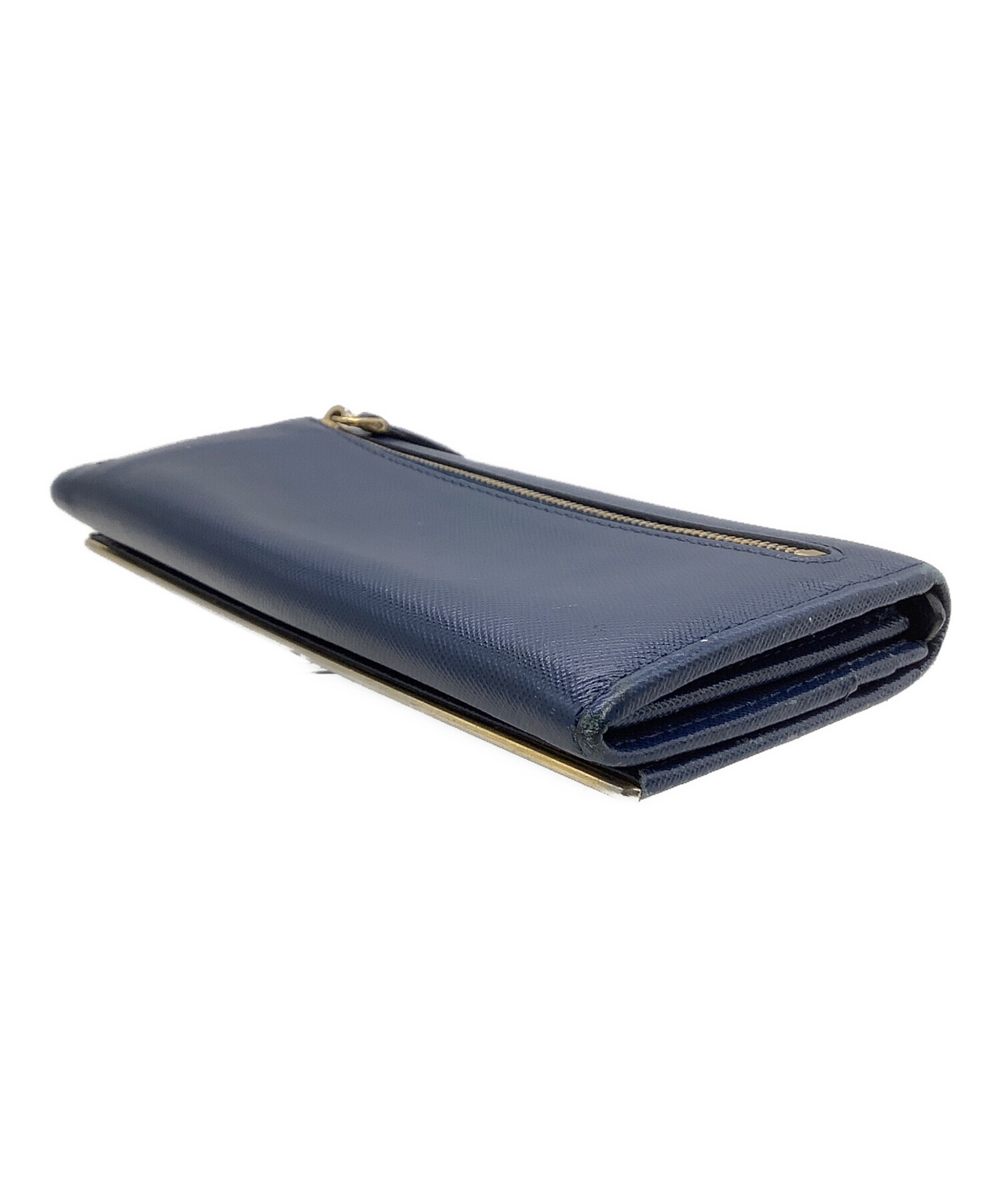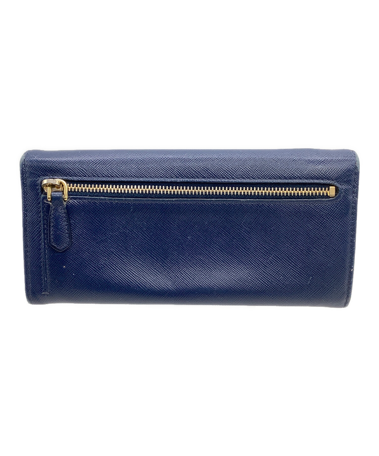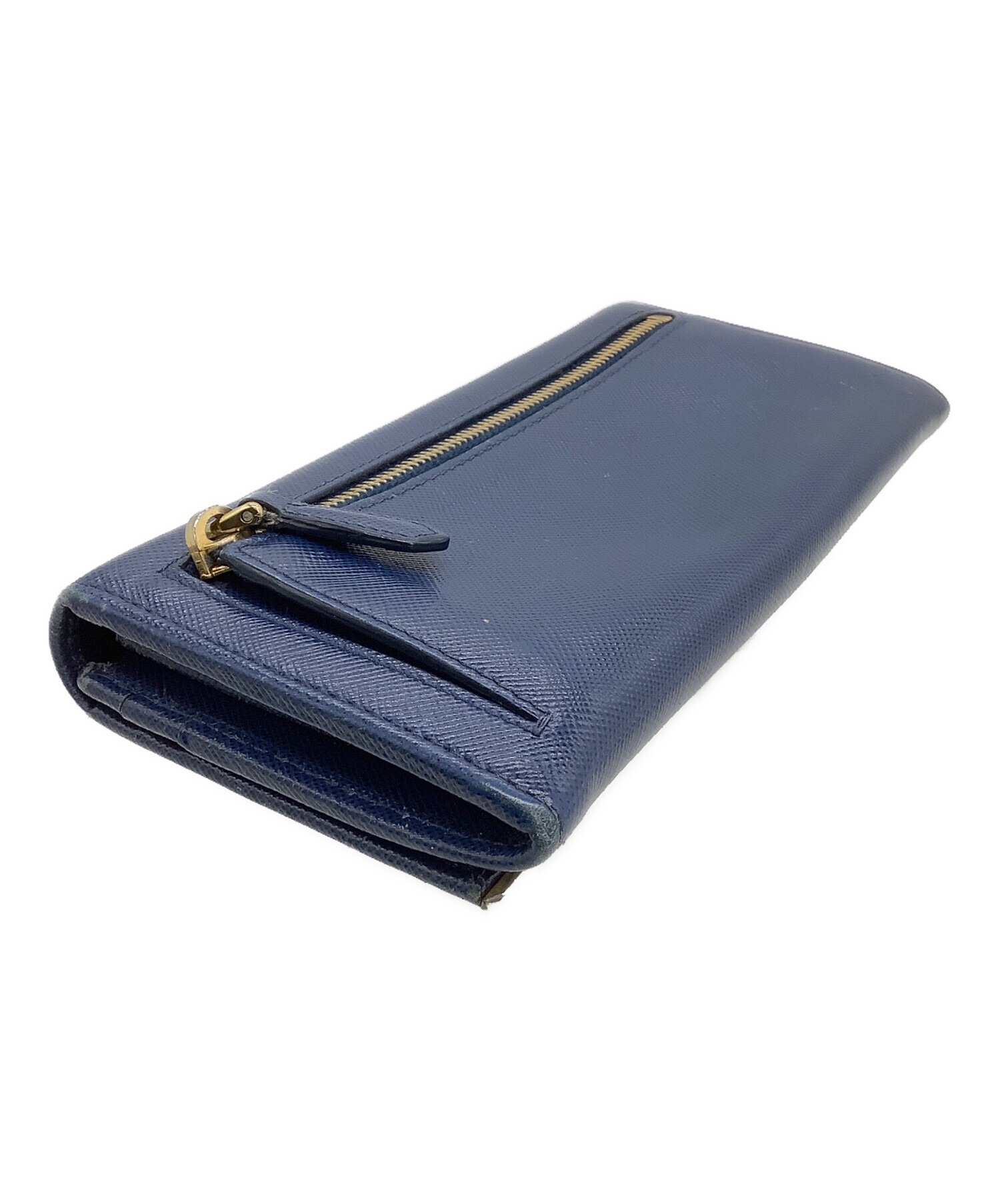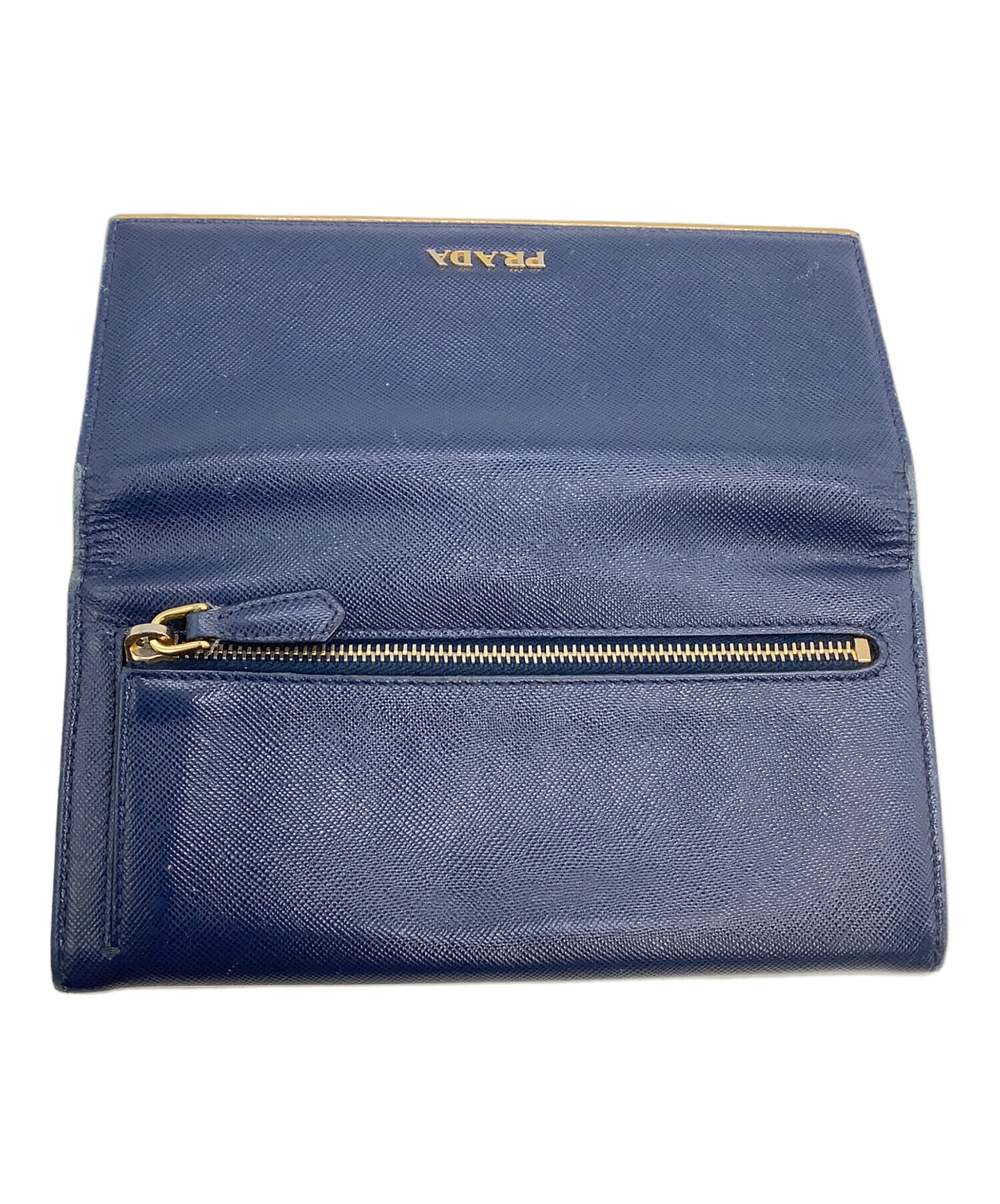 • PRADA(プラダ)PRADA (プラダ) 長財布 サフィアーノ ネイビー×ゴールドの古着・服飾アイテム スレ、ファスナー金具メッキハガレキズ有