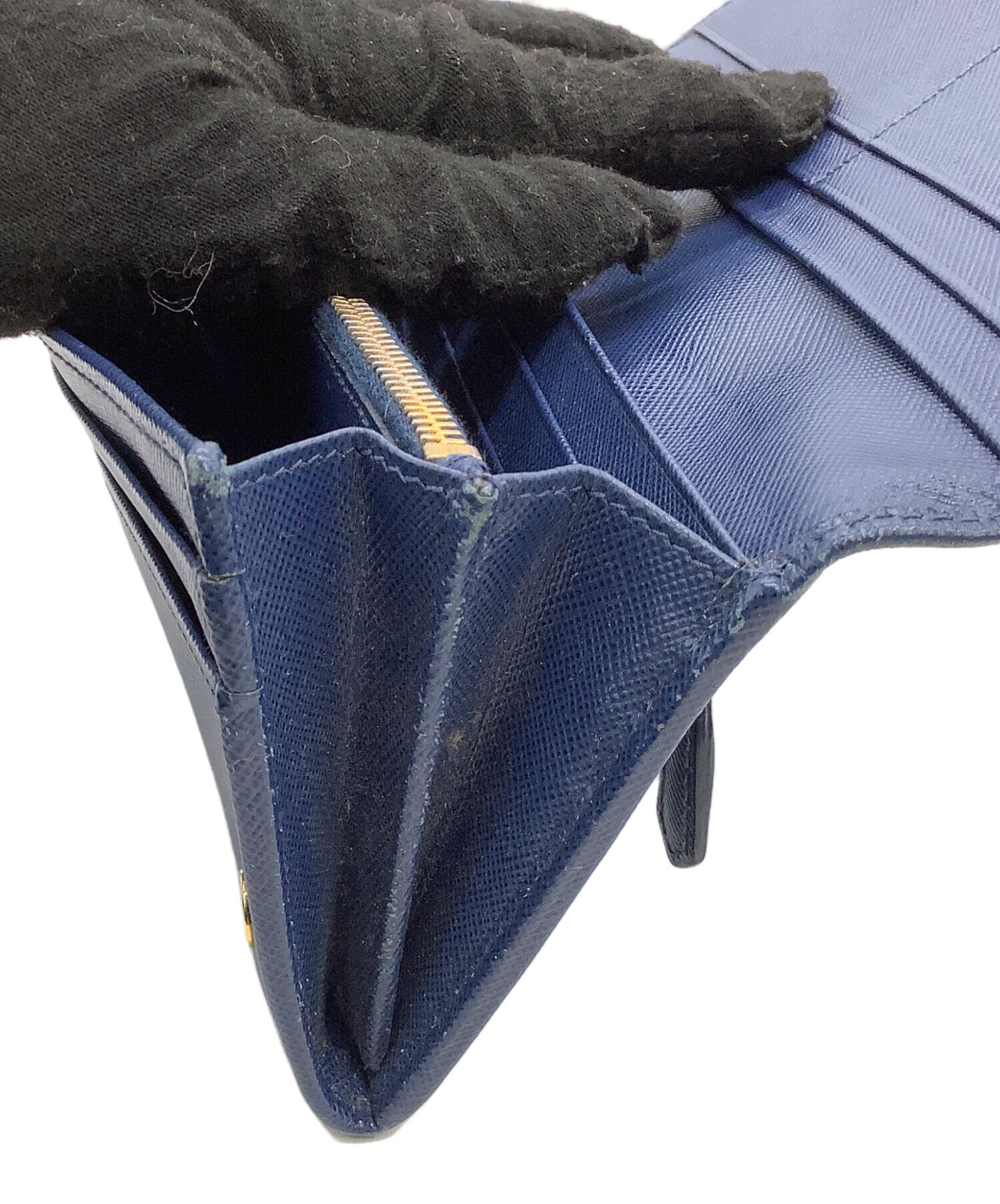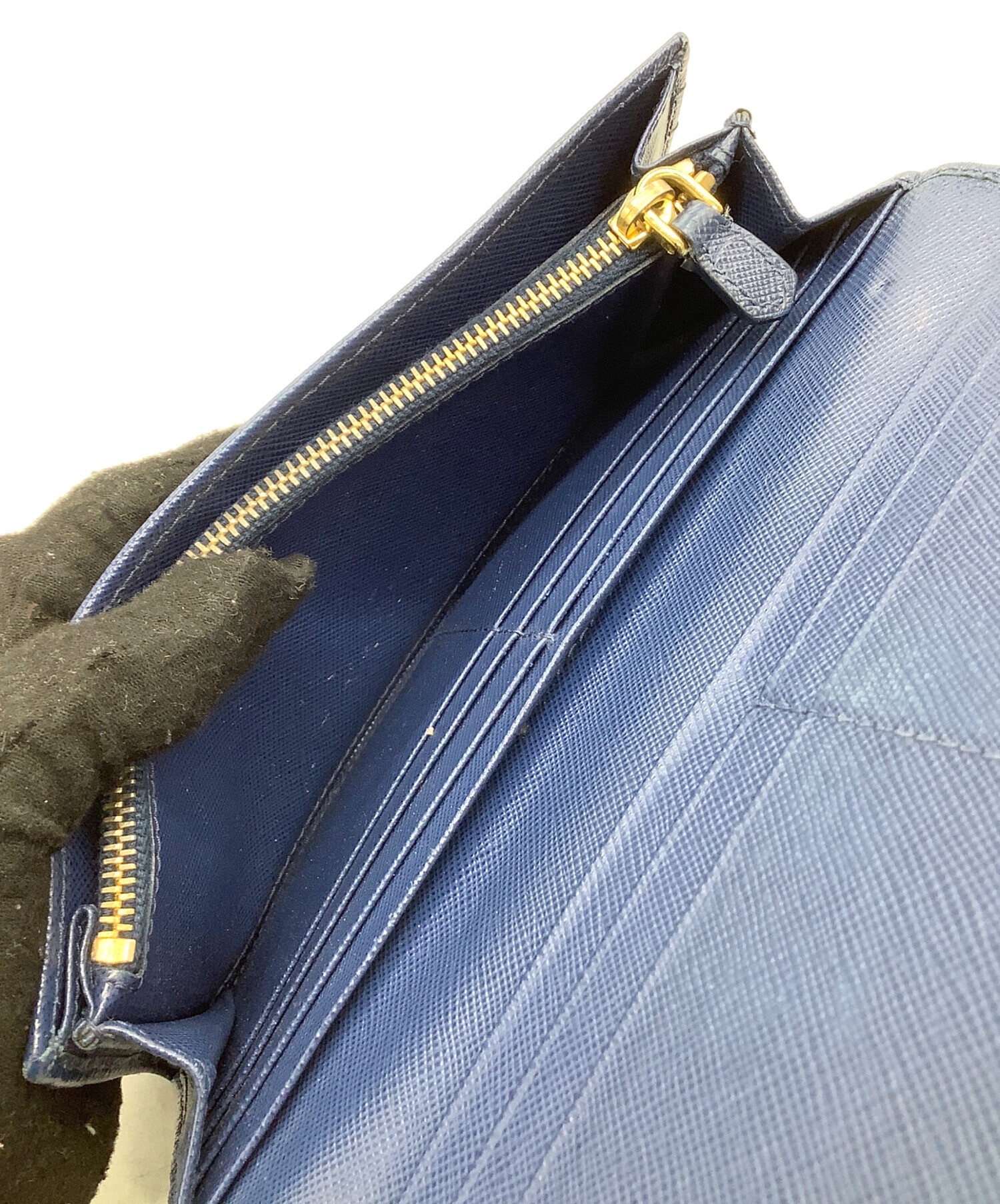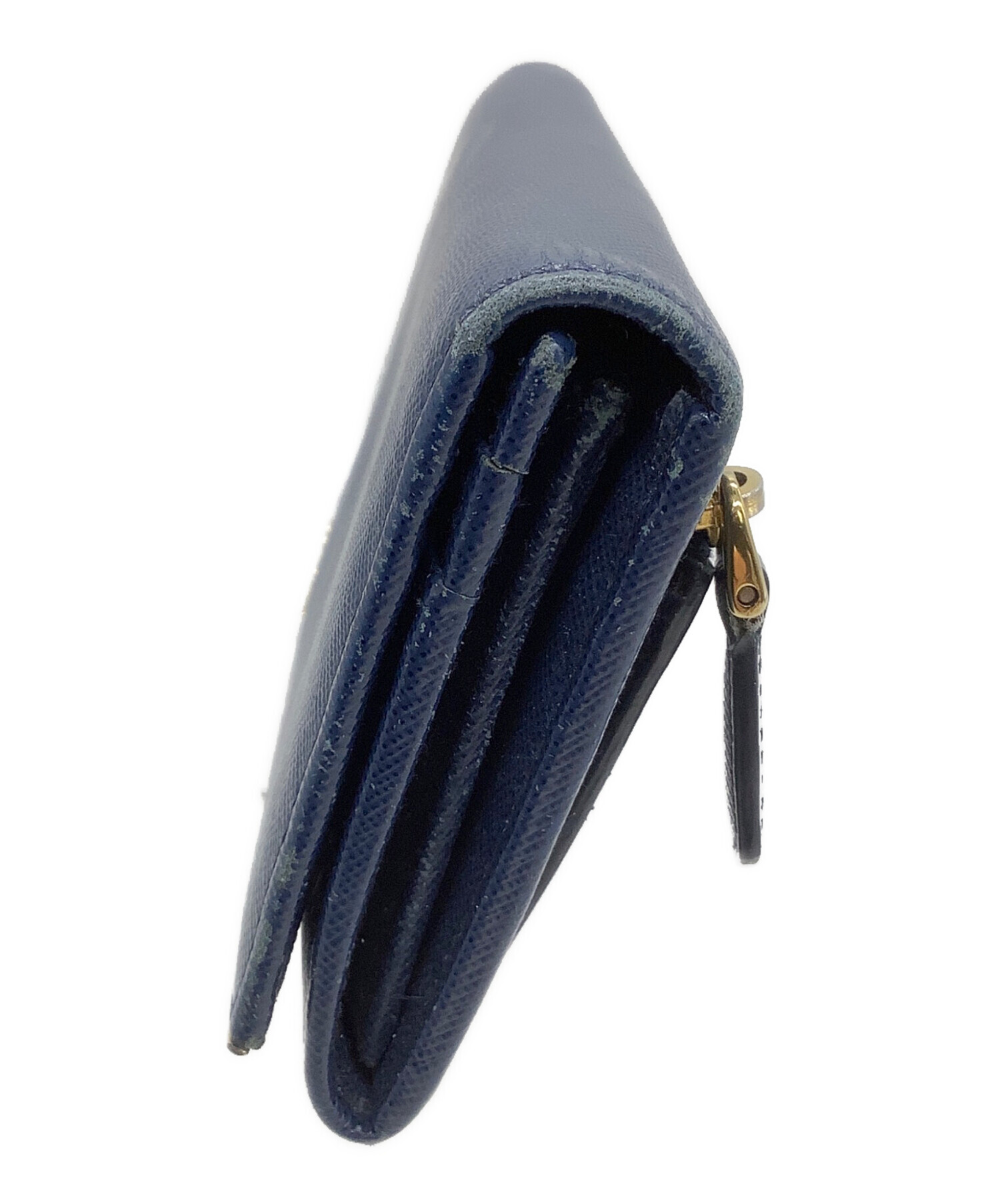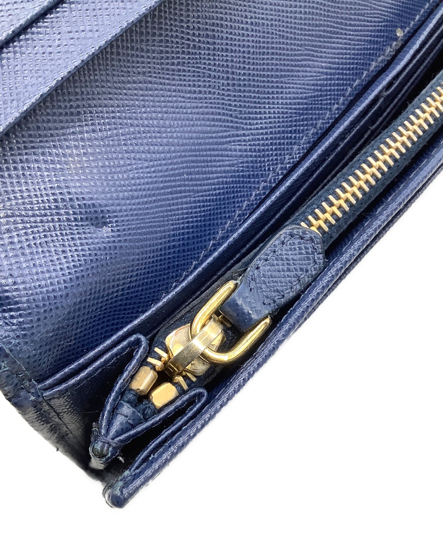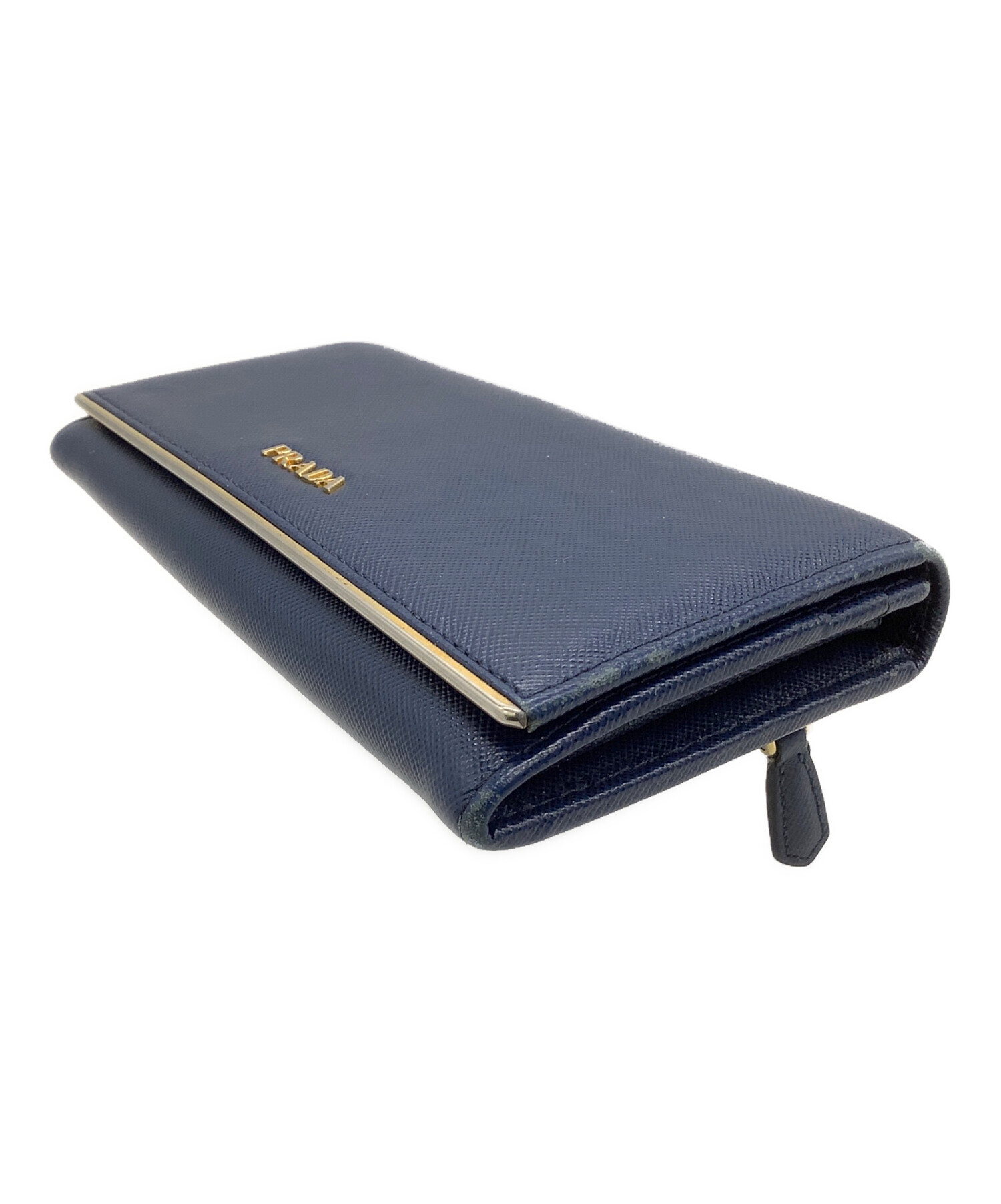 • PRADA(プラダ)PRADA (プラダ) 長財布 サフィアーノ ネイビー×ゴールドの古着・服飾アイテム スレ、ファスナー金具メッキハガレキズ有