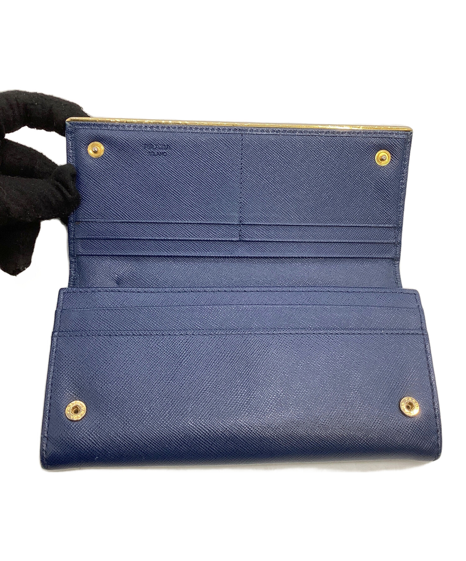 • PRADA(プラダ)PRADA (プラダ) 長財布 サフィアーノ ネイビー×ゴールドの古着・服飾アイテム 金具メッキハガレ有