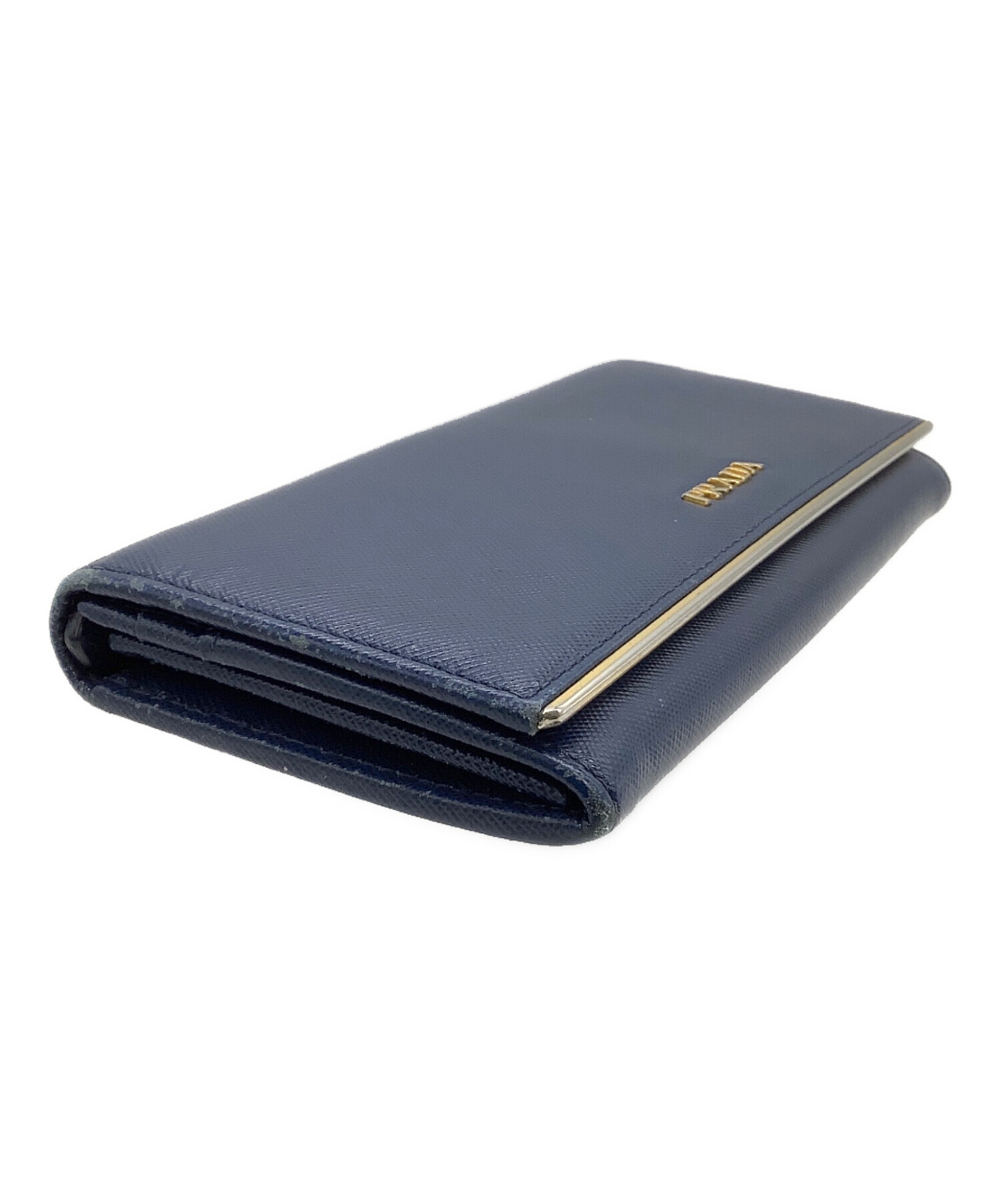 • PRADA(プラダ)PRADA (プラダ) 長財布 サフィアーノ ネイビー×ゴールドの古着・服飾アイテム 角スレ、スレ、金具キズ有