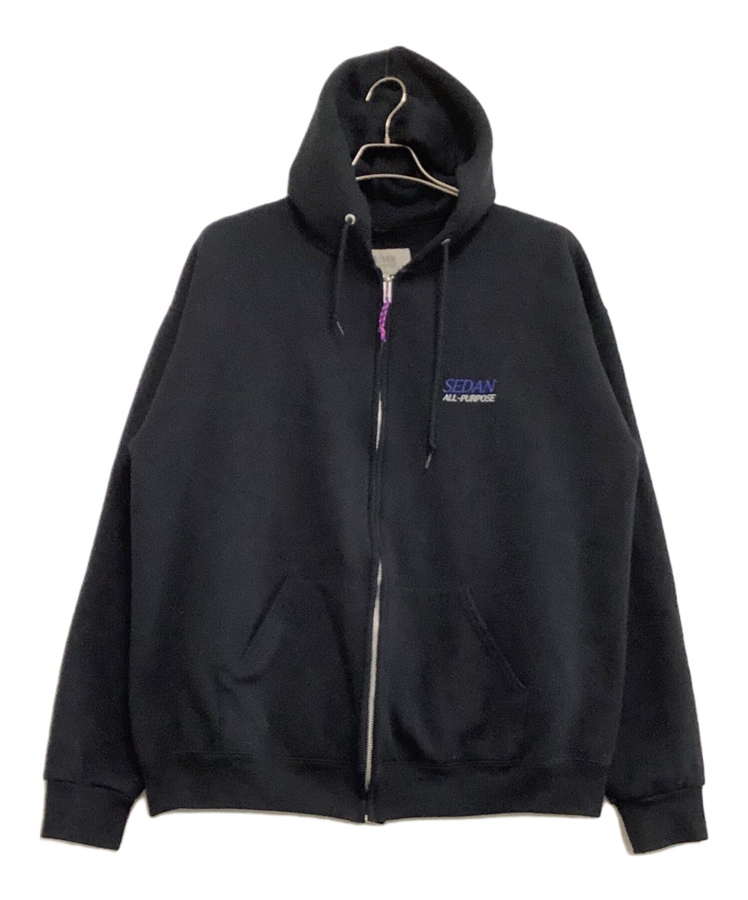 • SEDAN ALL-PURPOSE(セダンオールパーパス)SEDAN ALL-PURPOSE (セダンオールパーパス) ジップアップジャケット ブラック サイズ:XLの古着・服飾アイテム ヨゴレ毛羽立ち毛玉有
