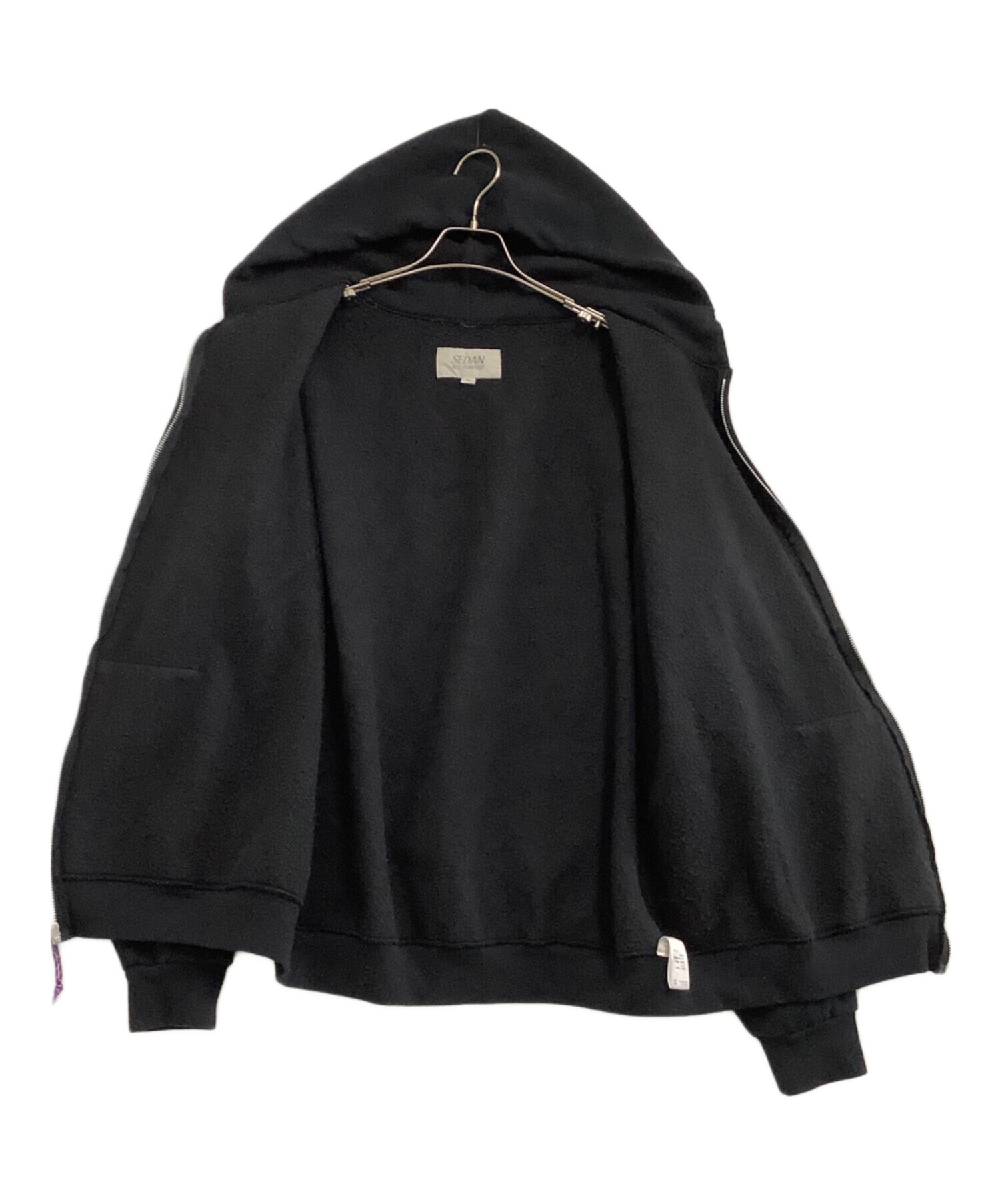 • SEDAN ALL-PURPOSE(セダンオールパーパス)SEDAN ALL-PURPOSE (セダンオールパーパス) ジップアップジャケット ブラック サイズ:XLの古着・服飾アイテム 内部毛羽立ち毛玉、襟ホツレ有