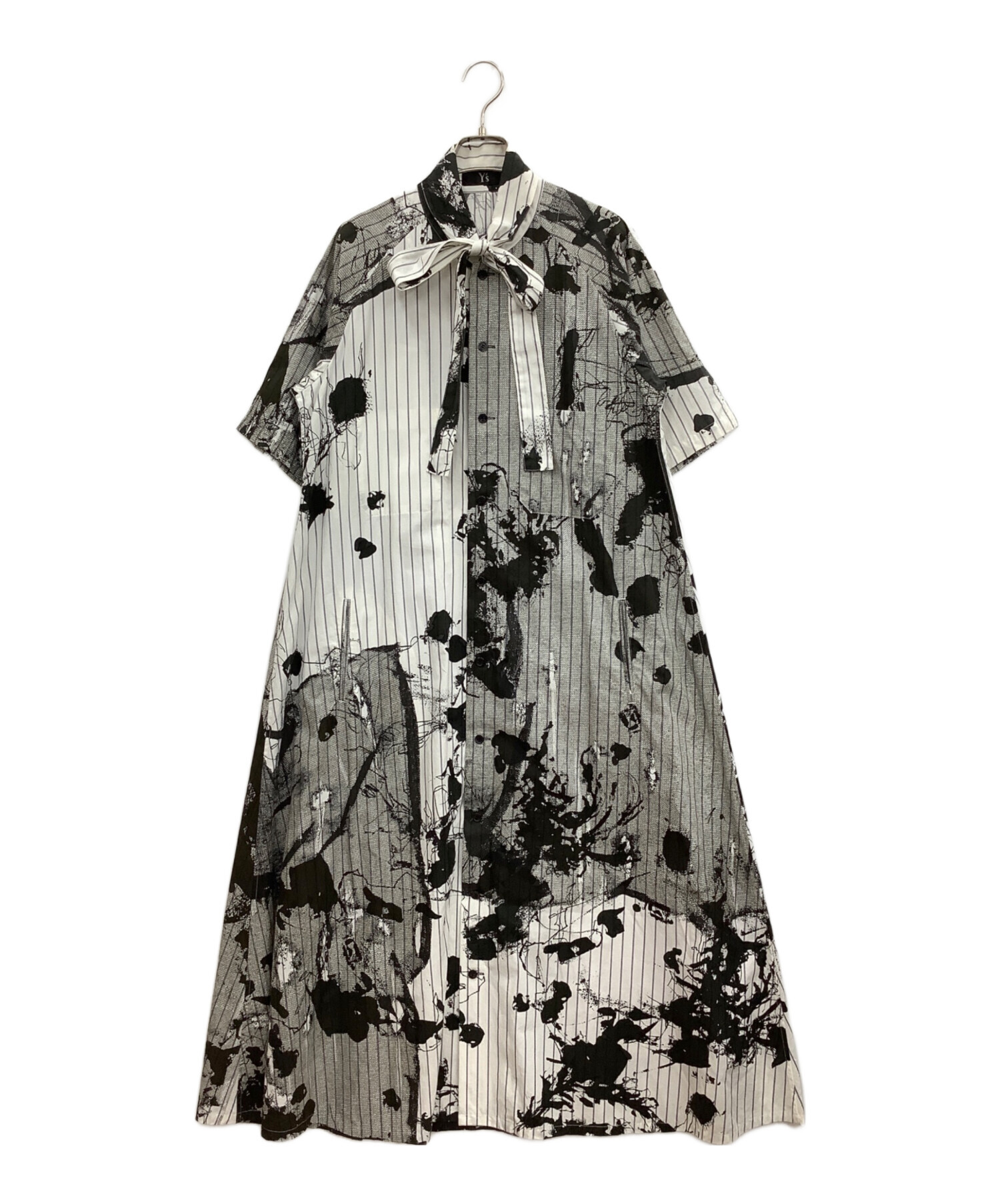 • Y's(ワイズ)Y's (ワイズ) シャツワンピース ホワイト×ブラック サイズ:2の古着・服飾アイテム リボンシミヨゴレ有り