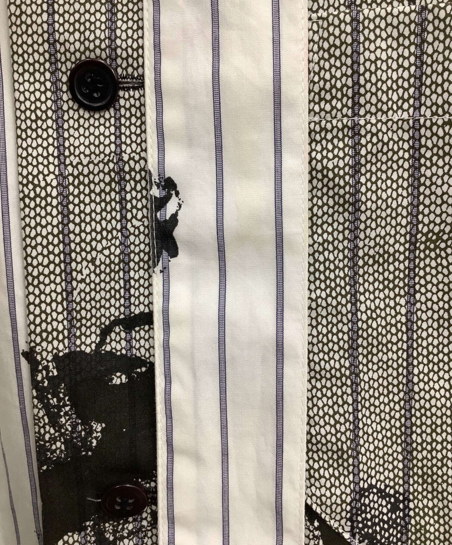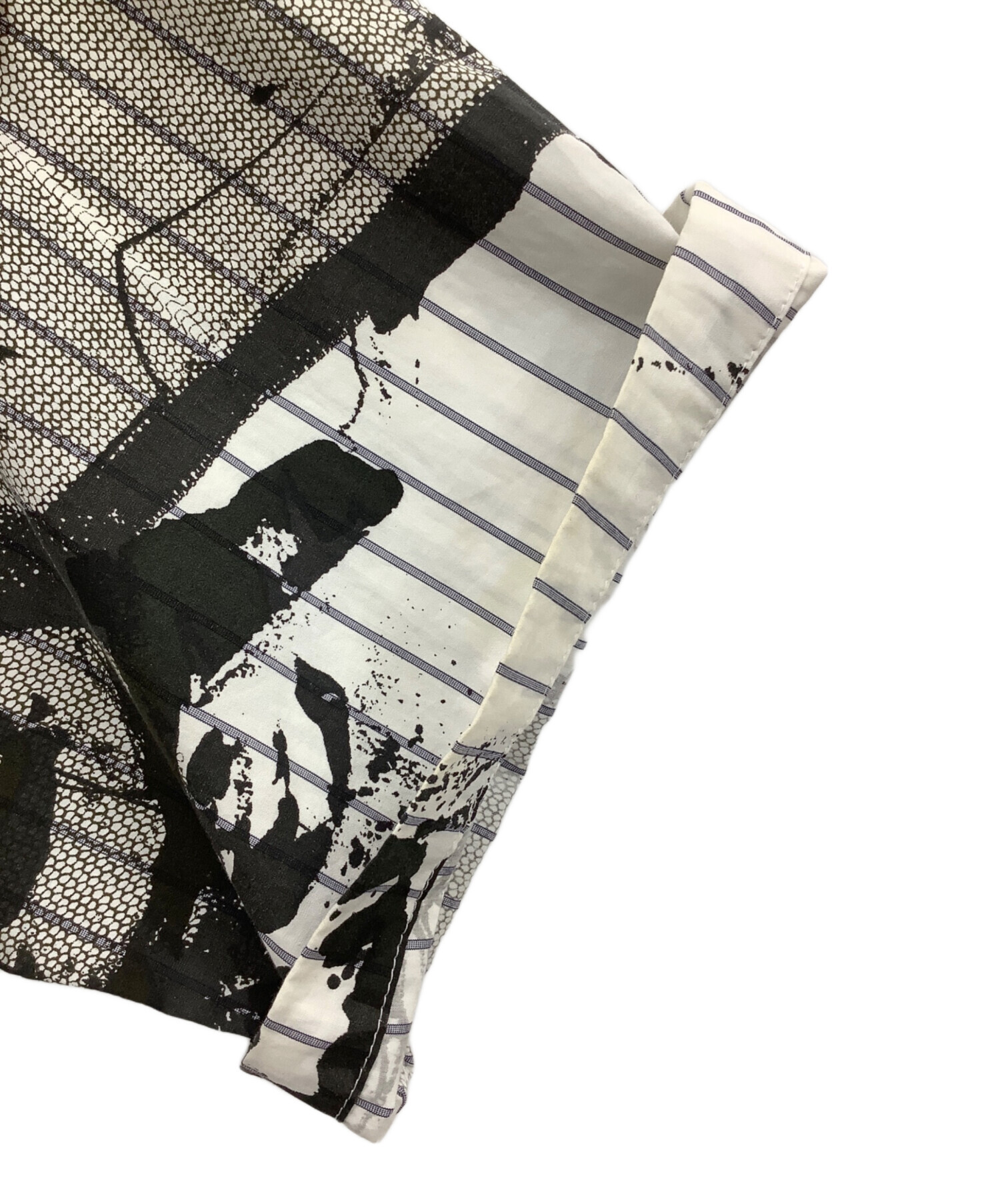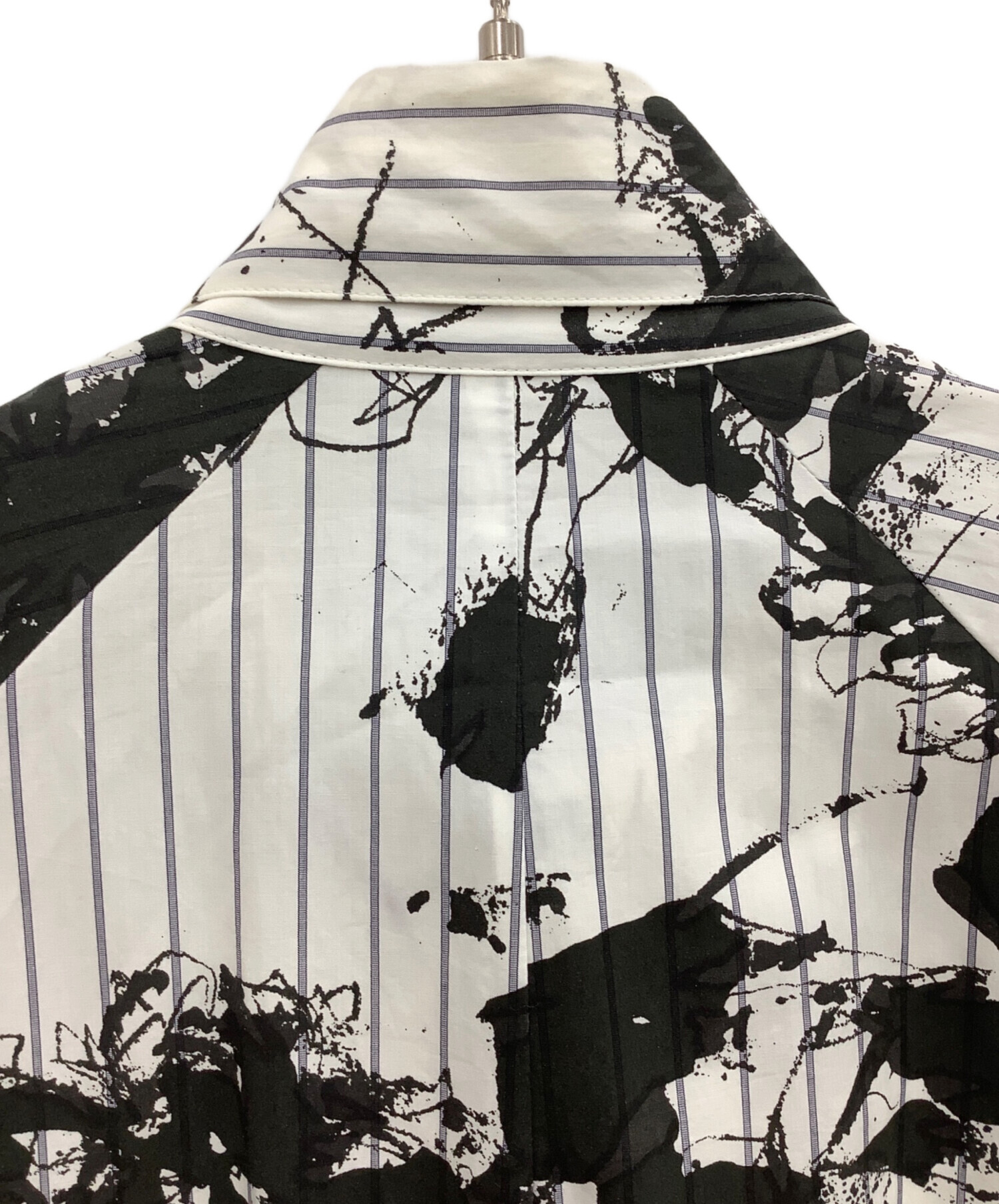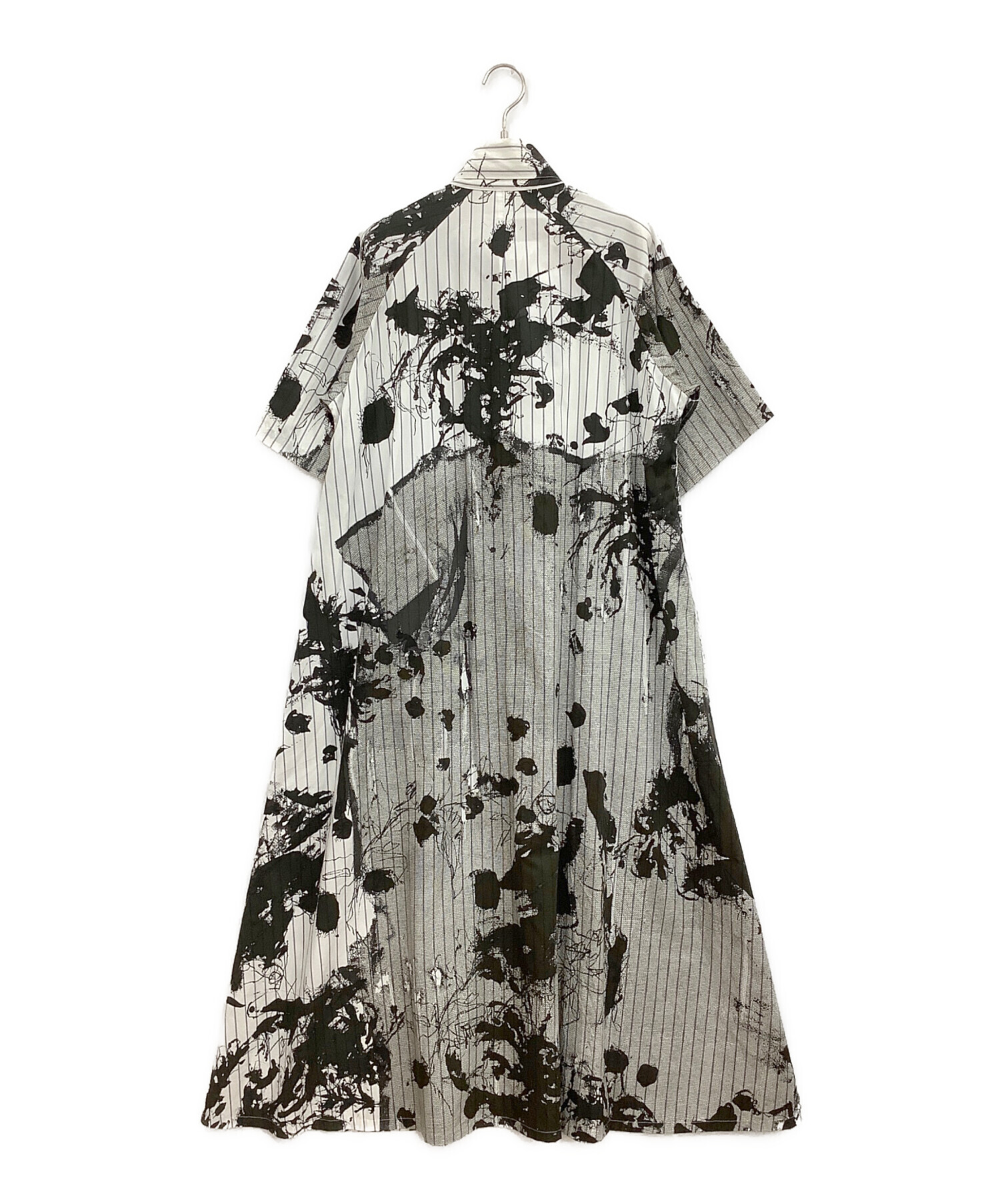 • Y's(ワイズ)Y's (ワイズ) シャツワンピース ホワイト×ブラック サイズ:2の古着・服飾アイテム 袖シミヨゴレ有り