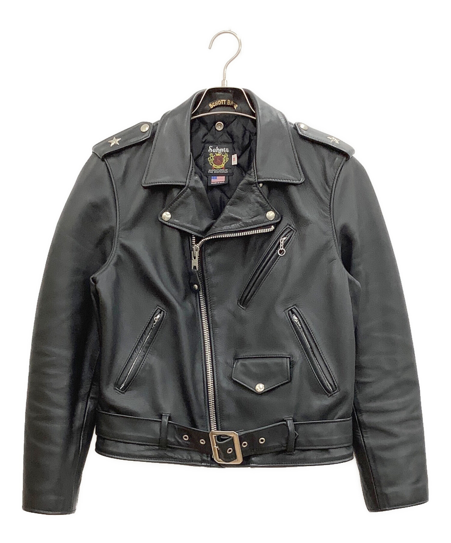 • SCHOTT BROS.(ショット)SCHOTT BROS. (ショットブロス) レザーライダースジャケット ブラック サイズ:38の古着・服飾アイテム ベルトスレ有り