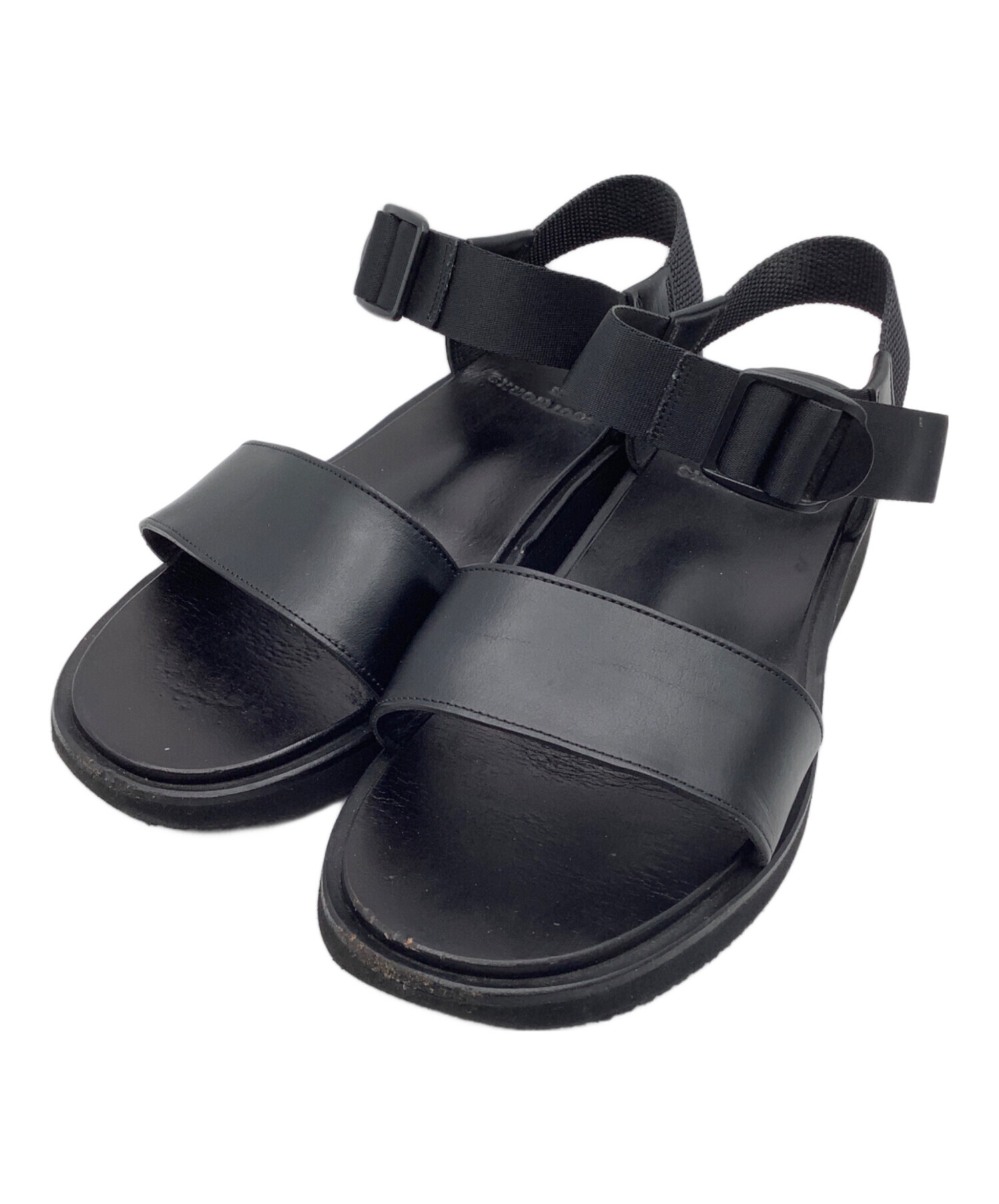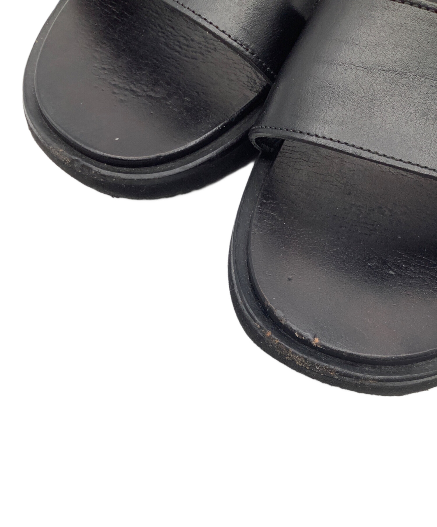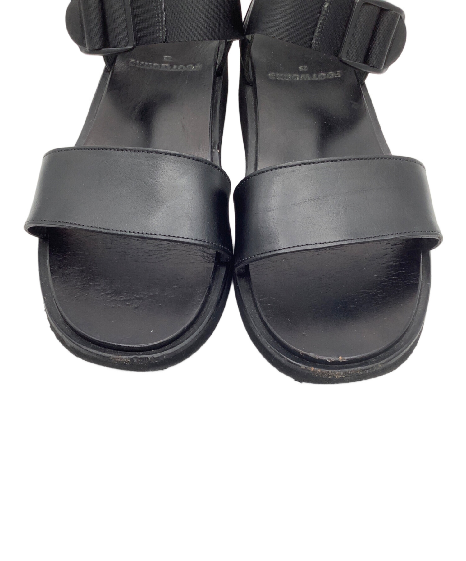 • FOOTWORKS(フットワークス)FOOTWORKS (フットワークス) レザーサンダル ブラック サイズ:25の古着・服飾アイテム ヨゴレ、ソール減り有り