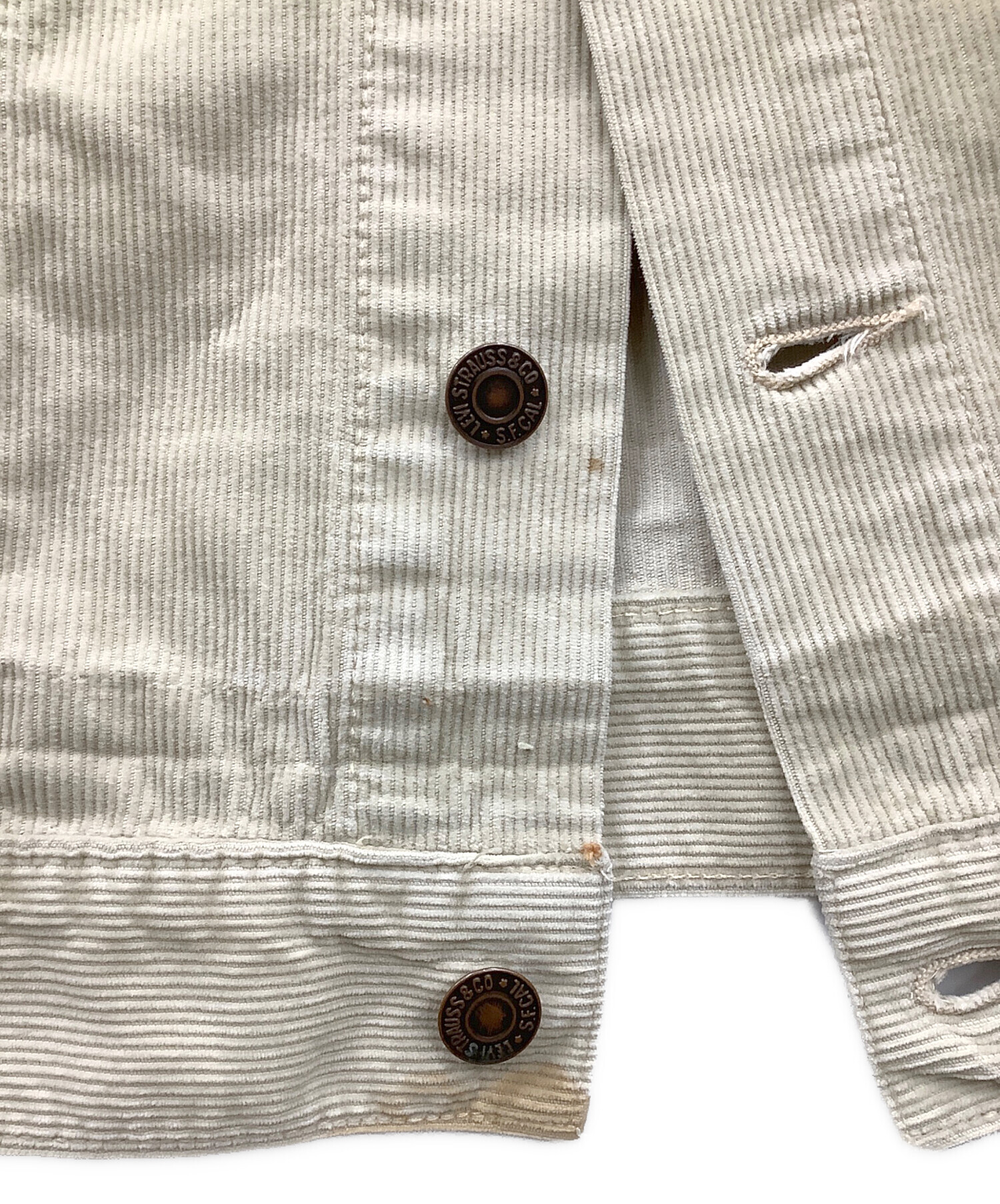 目立つシミや汚れ、におい等がある場合は商品画像や説明文にて極力表記させていただいておりますが、中古品という商品の特性上、全ての瑕疵や不備、洋服直し箇所を撮影・記載をすることは難しくなっております。また、ほとんどのアイテムは店頭と併売しておりますため、出品掲載時からコンディションが変動している場合もございます。あらかじめご了承くださいませ。