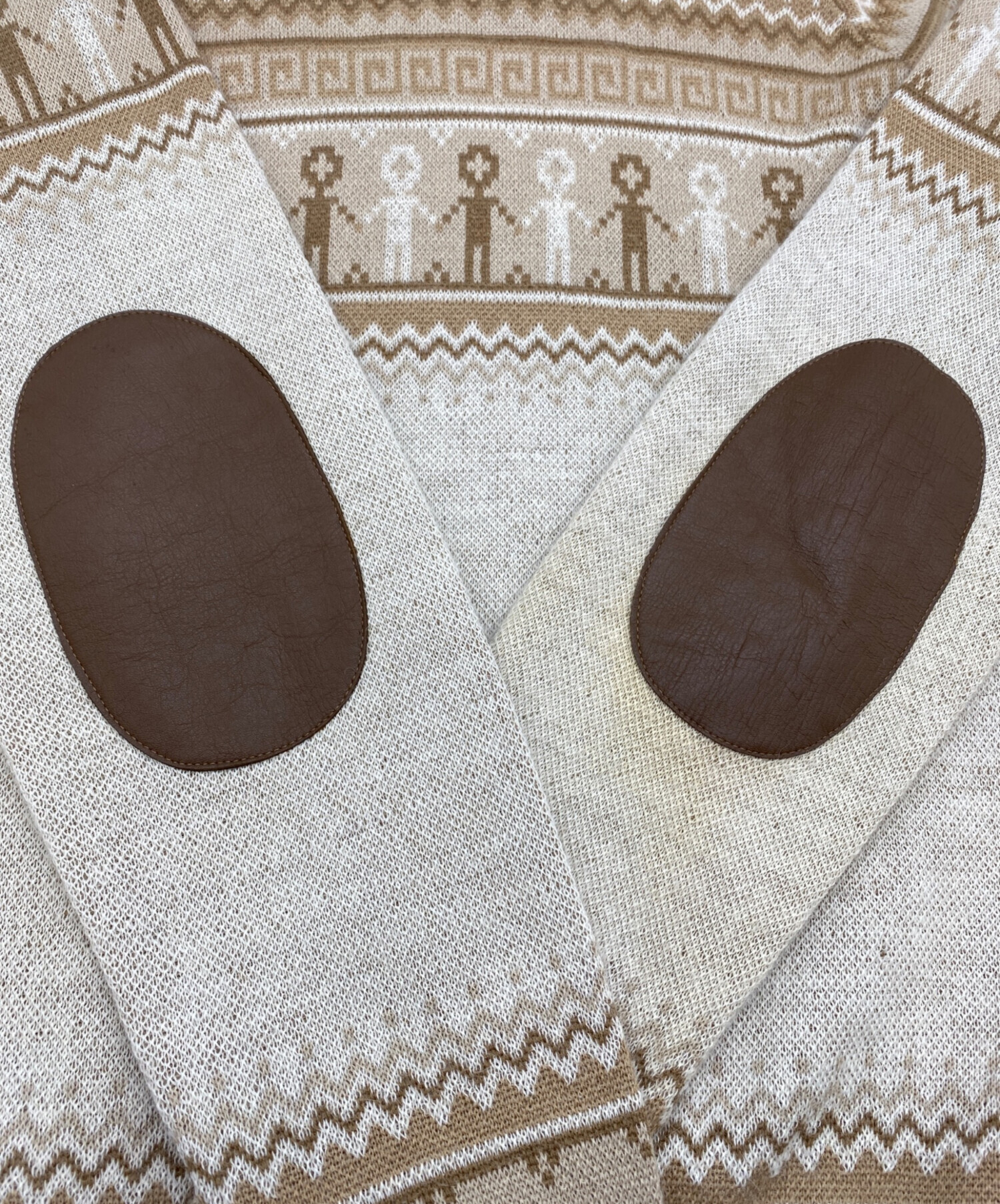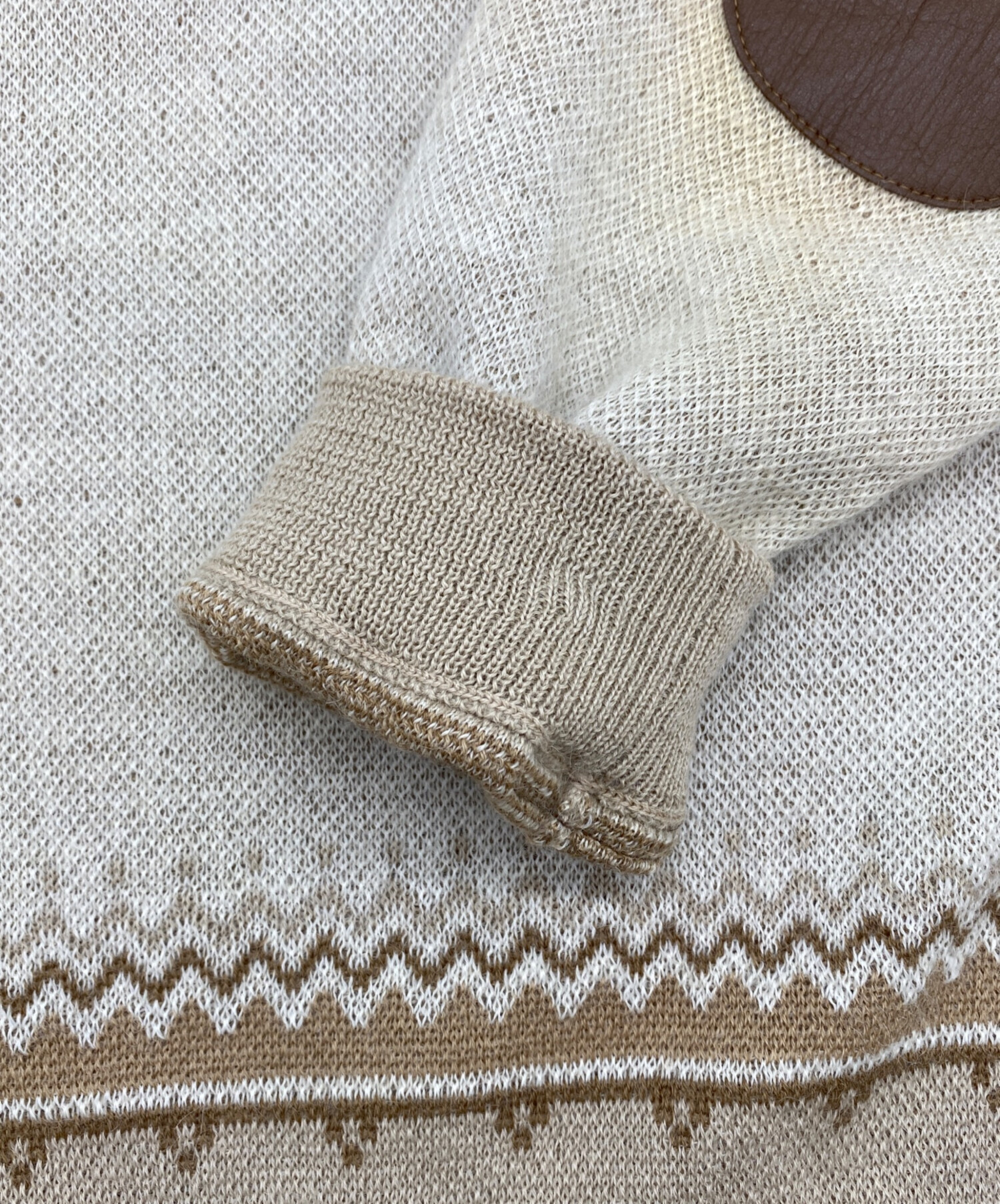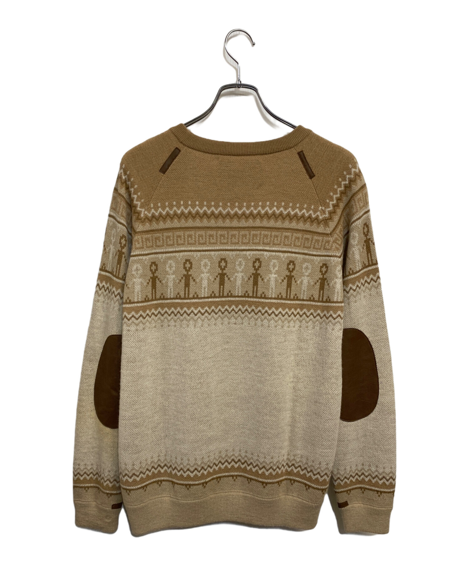 • THE INOUE BROTHERS(イノウエブラザーズ)THE INOUE BROTHERS (イノウエブラザーズ) edition (エディション) アルパカ ジャカードニット ライトブラウン サイズ:SIZE Mの古着・服飾アイテム 左エルボーパッチ周辺変色有