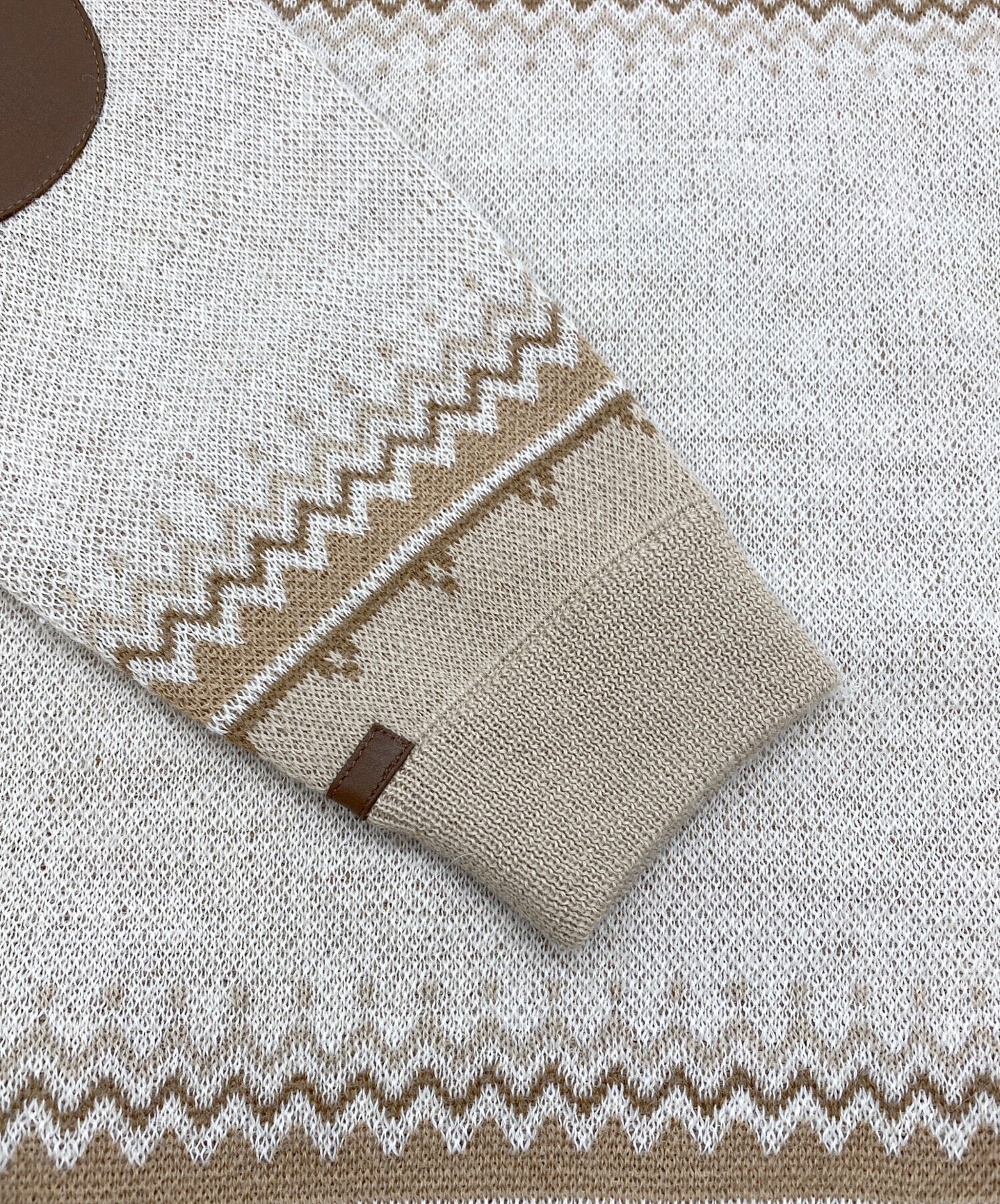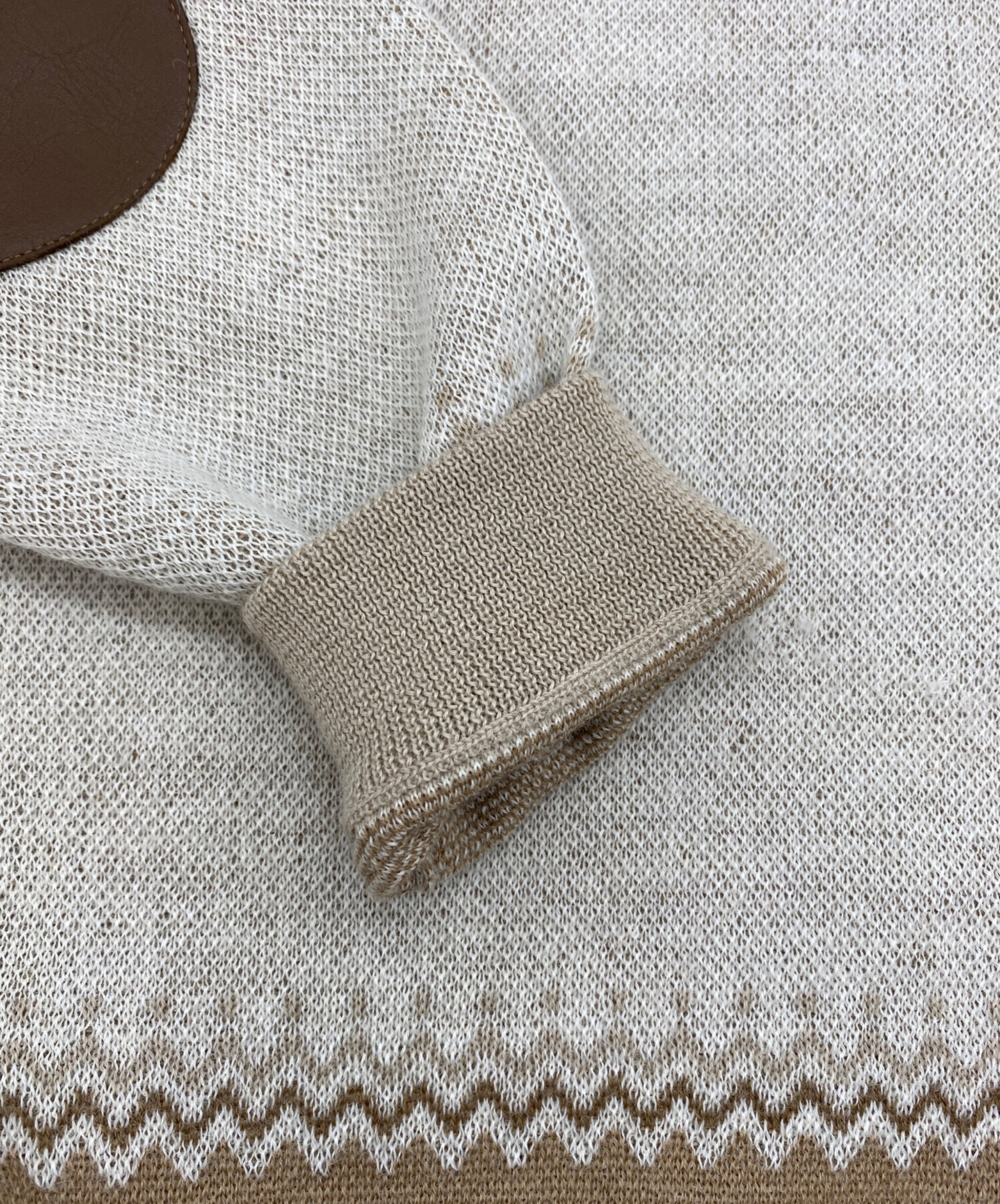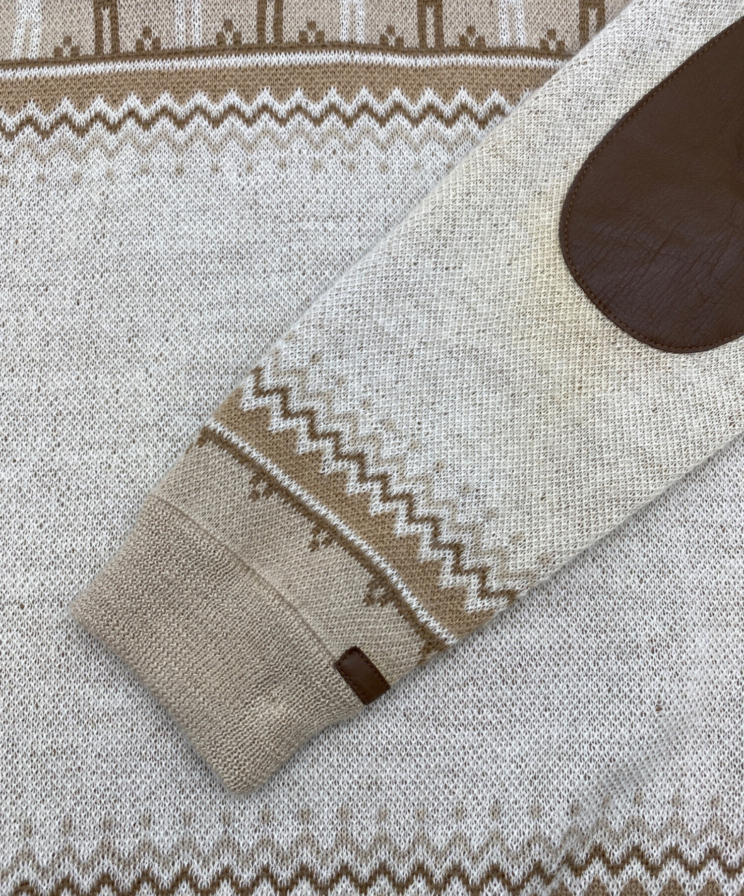 • THE INOUE BROTHERS(イノウエブラザーズ)THE INOUE BROTHERS (イノウエブラザーズ) edition (エディション) アルパカ ジャカードニット ライトブラウン サイズ:SIZE Mの古着・服飾アイテム 左エルボーパッチ周辺変色有