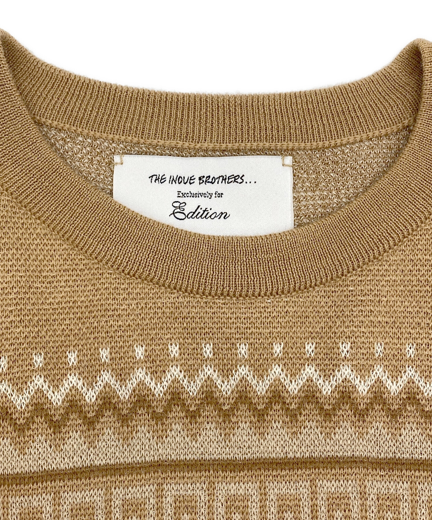 • THE INOUE BROTHERS(イノウエブラザーズ)THE INOUE BROTHERS (イノウエブラザーズ) edition (エディション) アルパカ ジャカードニット ライトブラウン サイズ:SIZE Mの古着・服飾アイテム