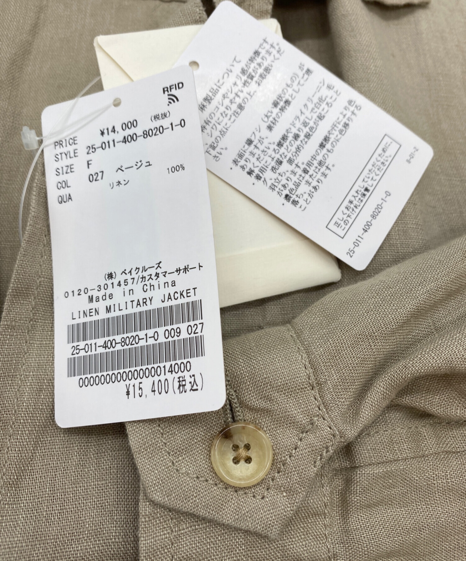 | アイテム名 | リネンミリタリージャケット |